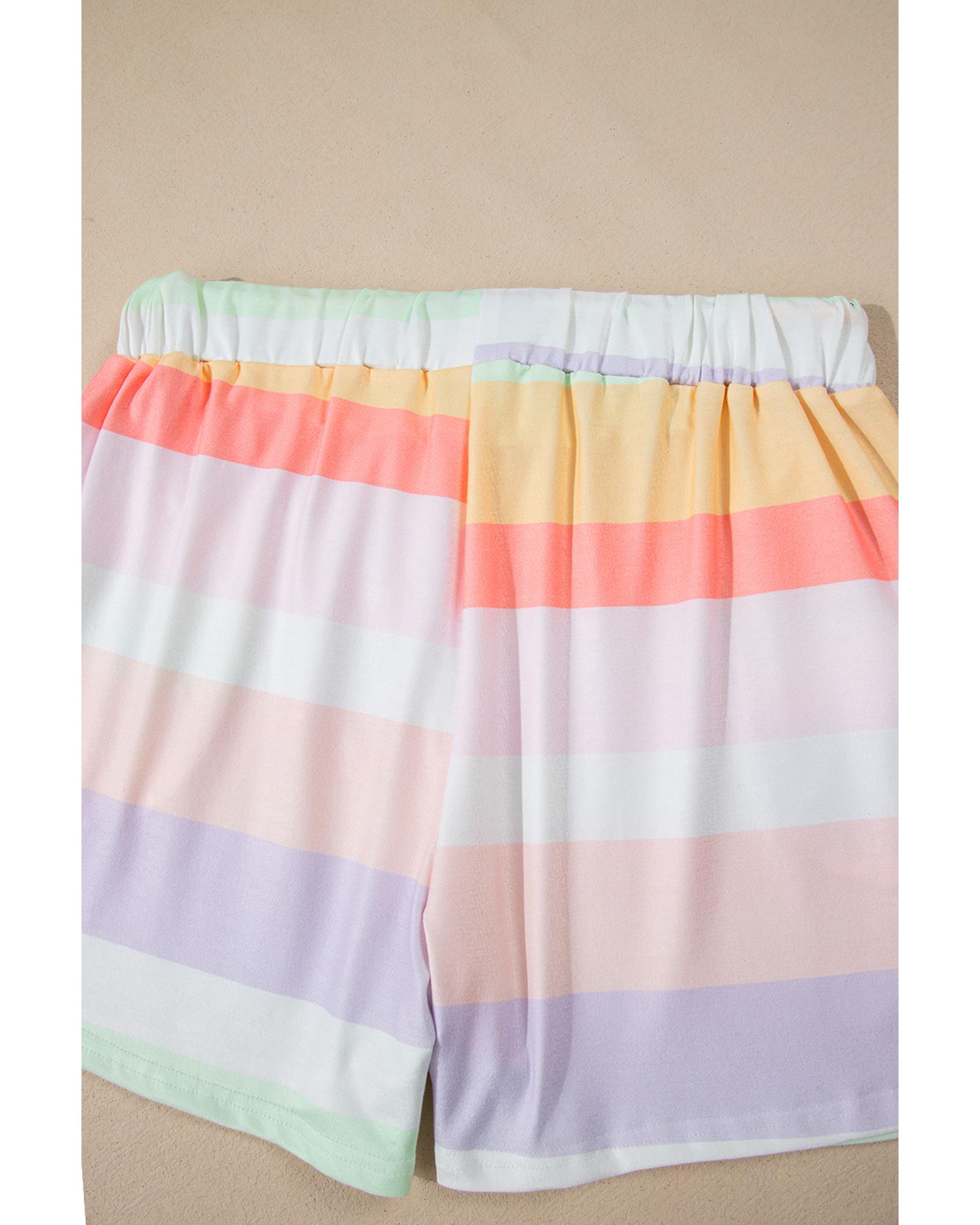 White Rainbow Striped T Shirt and Shorts Set – L