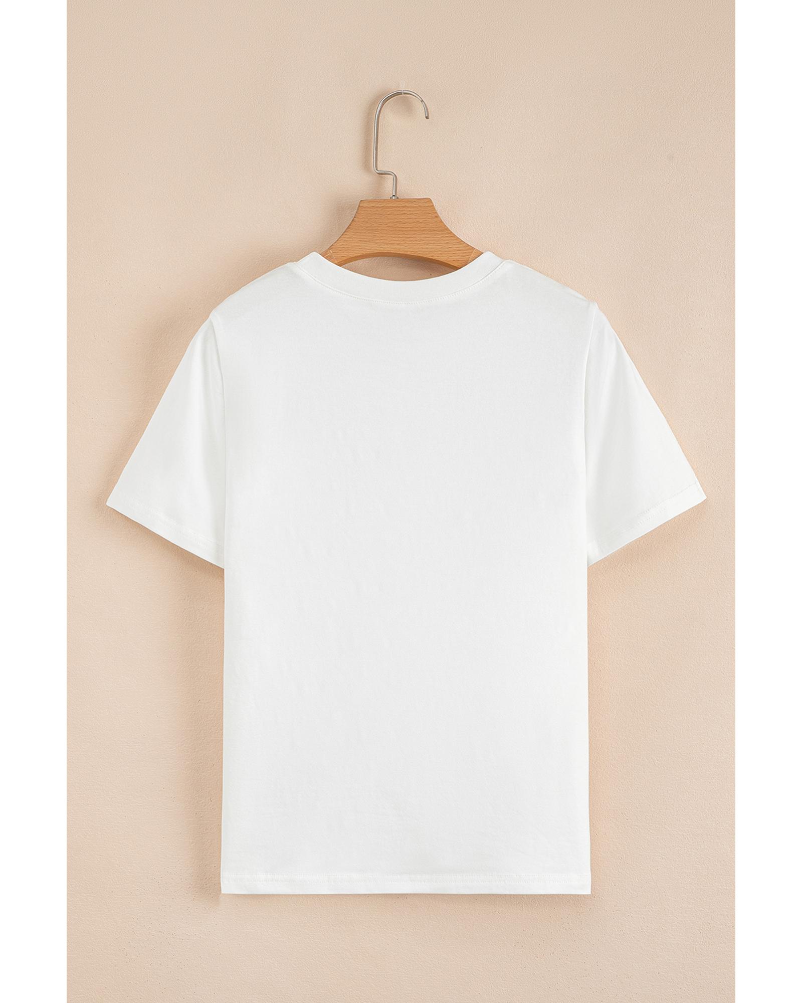 White Rhinestone Bow Embellished Round Neck Tee – S