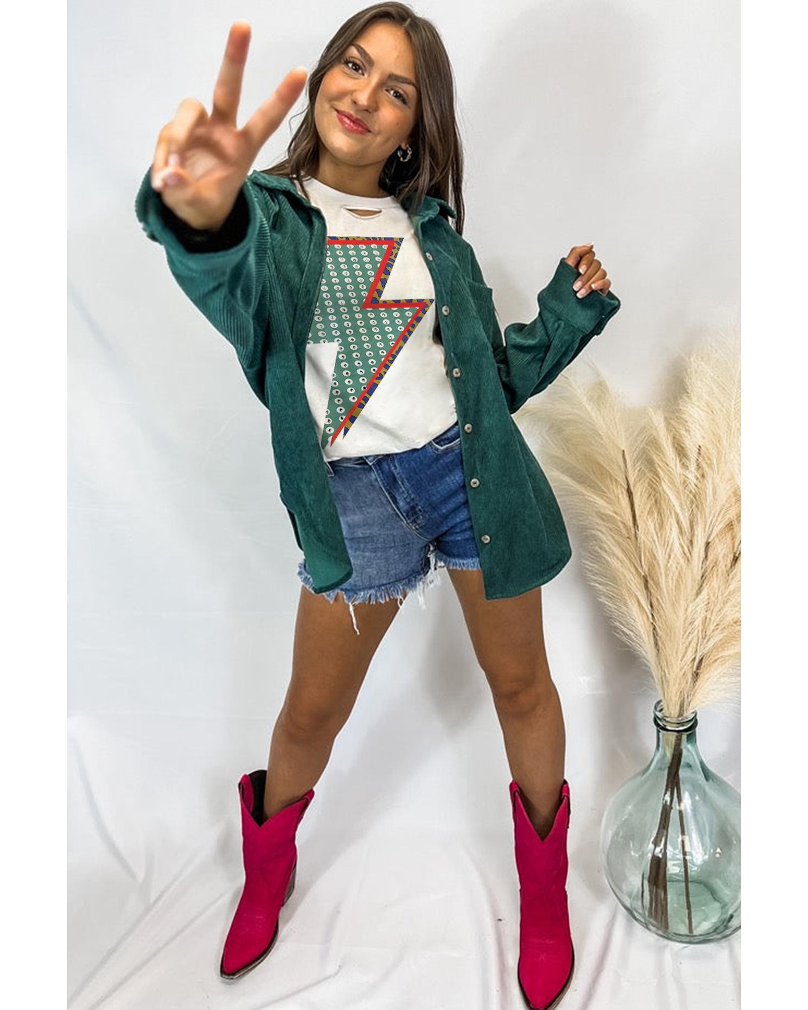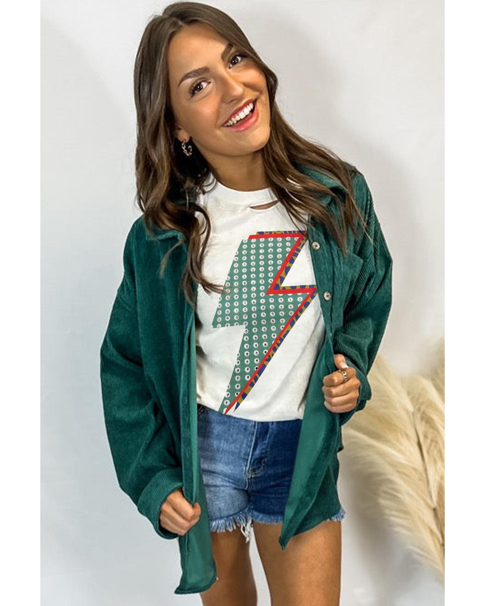 White Rhinestone Decor Bolt Graphic Ripped Western Tee – XL