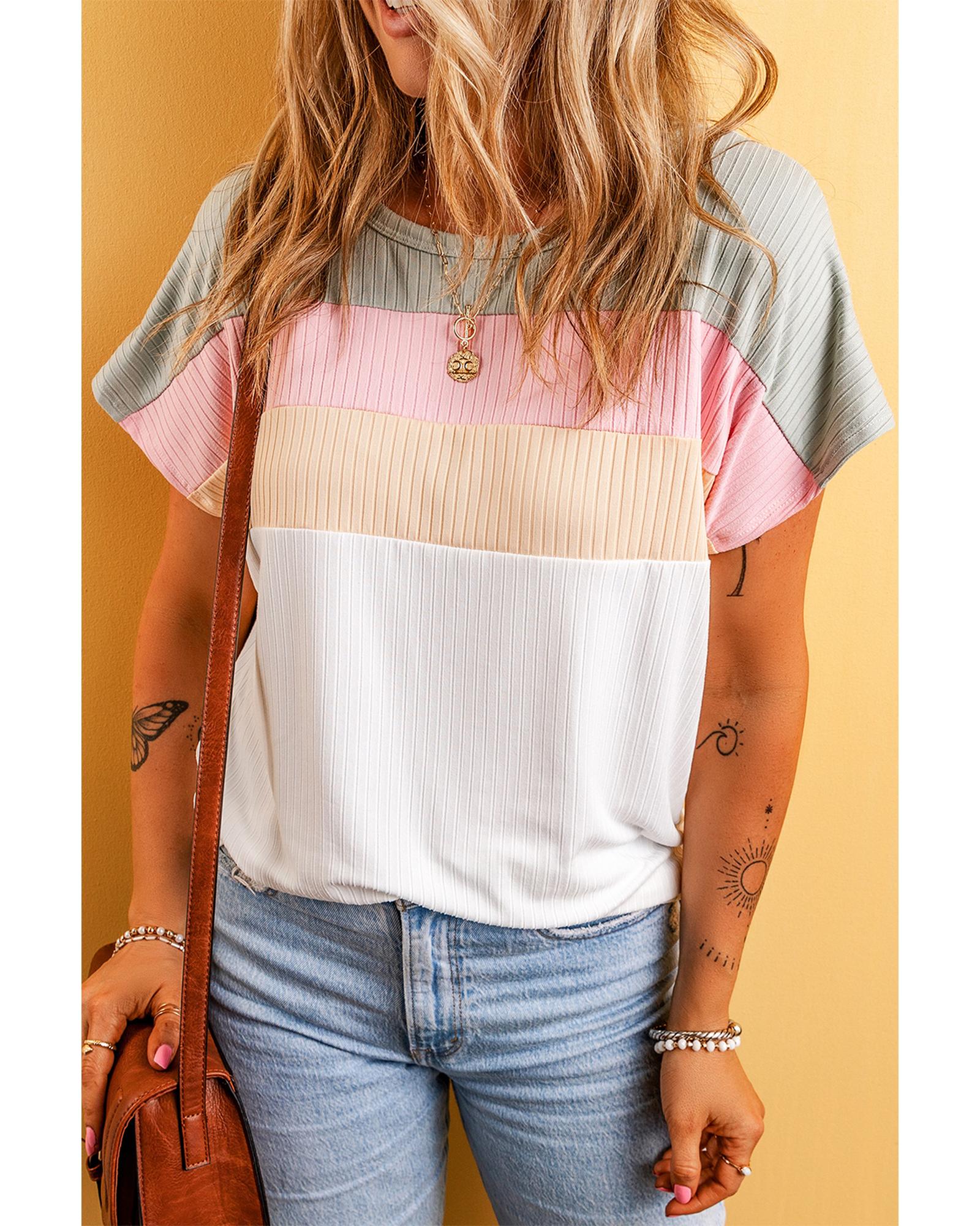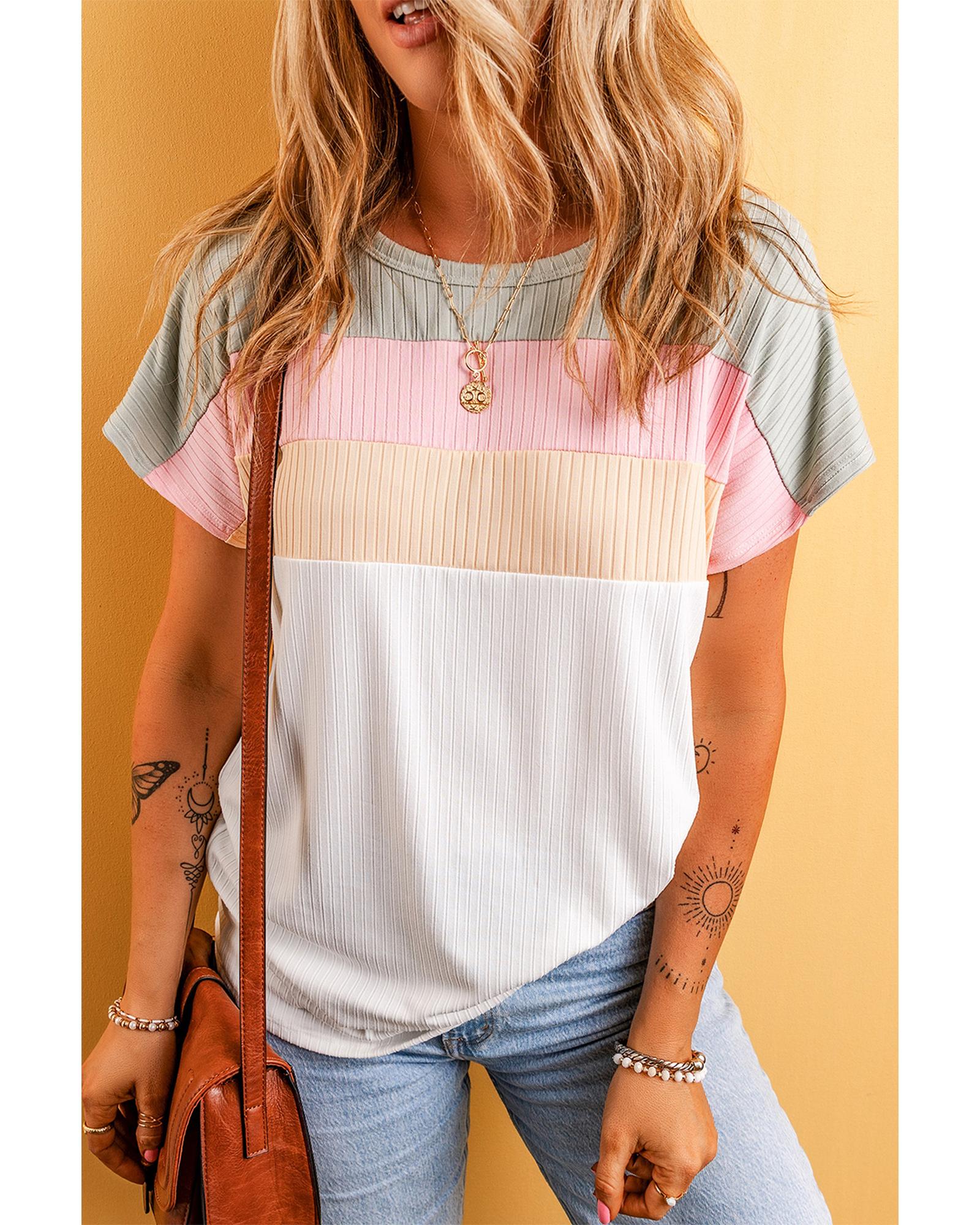White Hollow Knit Splicing Keyhole Back Tunic Top - L