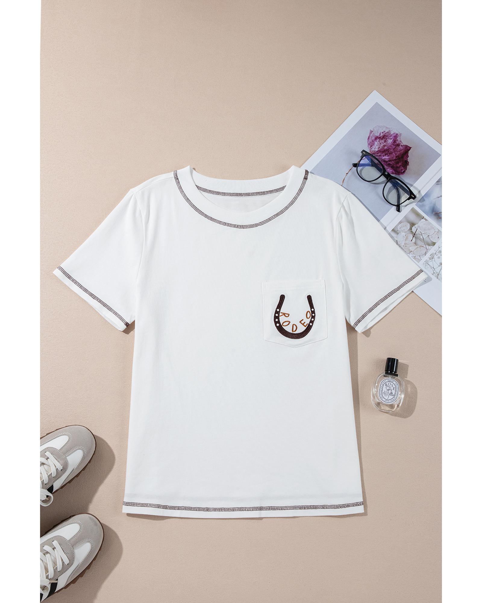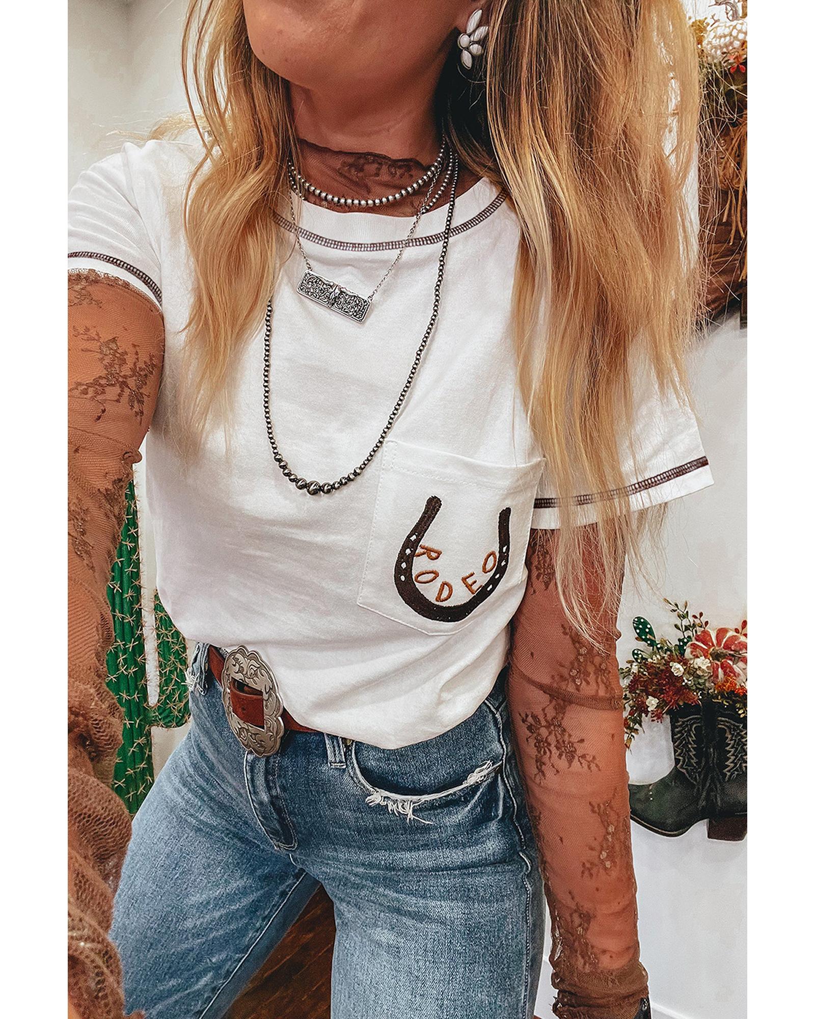 White RODEO Horseshoe Embroidered Patch Pocket T Shirt – XL