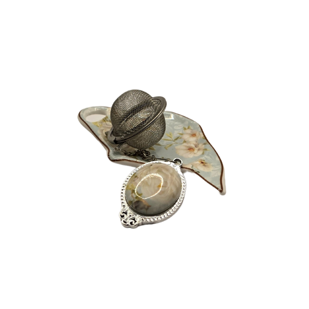 Bring elegance to your tea time with this fine bone china mug, featuring a delicate white rose pattern with soft green accents. Designed for comfort and beauty, the mug includes a matching strainer, making it a practical and refined choice for loose-leaf tea lovers.