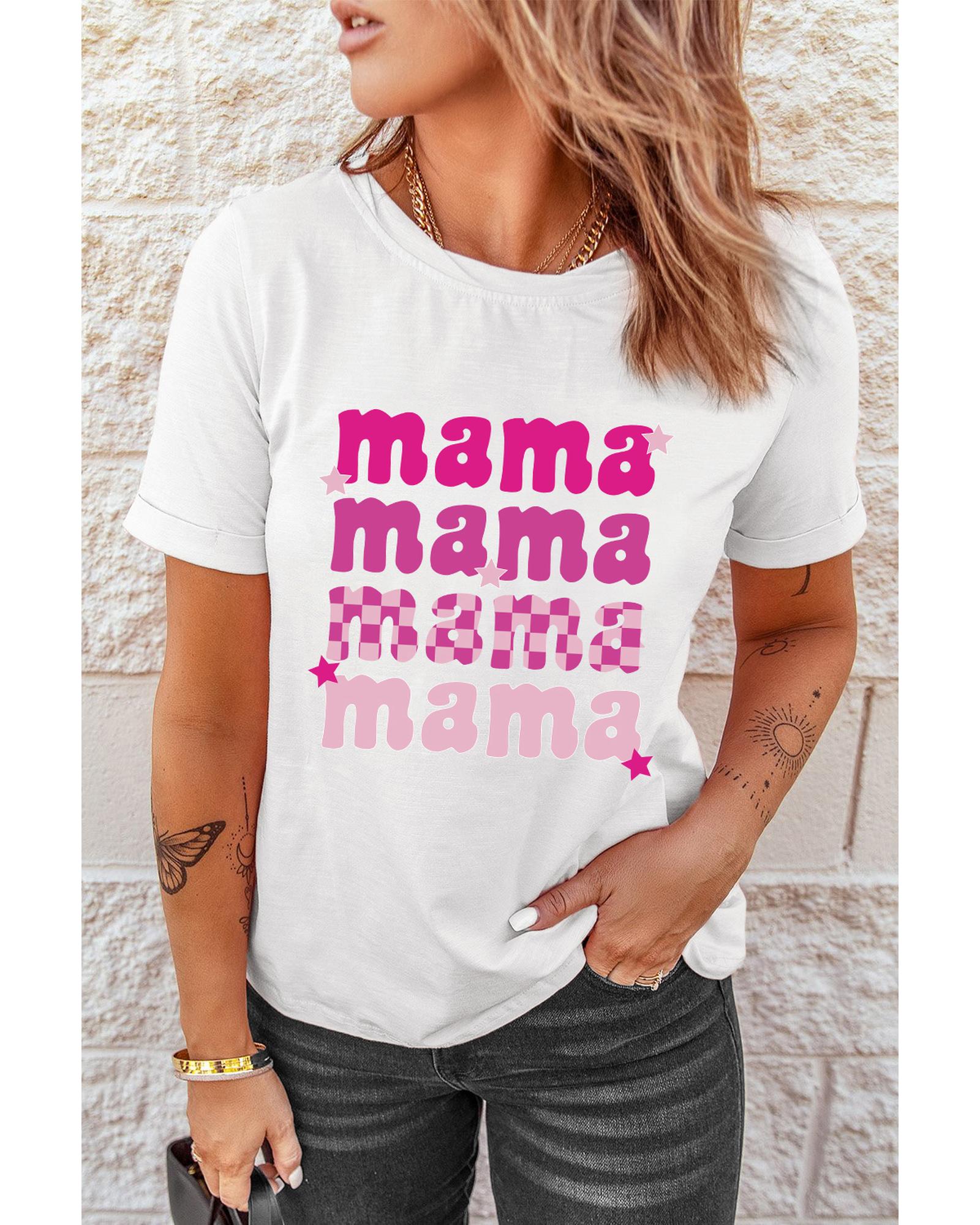 White Round Neck mama Graphic Casual Tee Round neck design for a trendy look Stylish mama graphic adds a unique touch Made from high