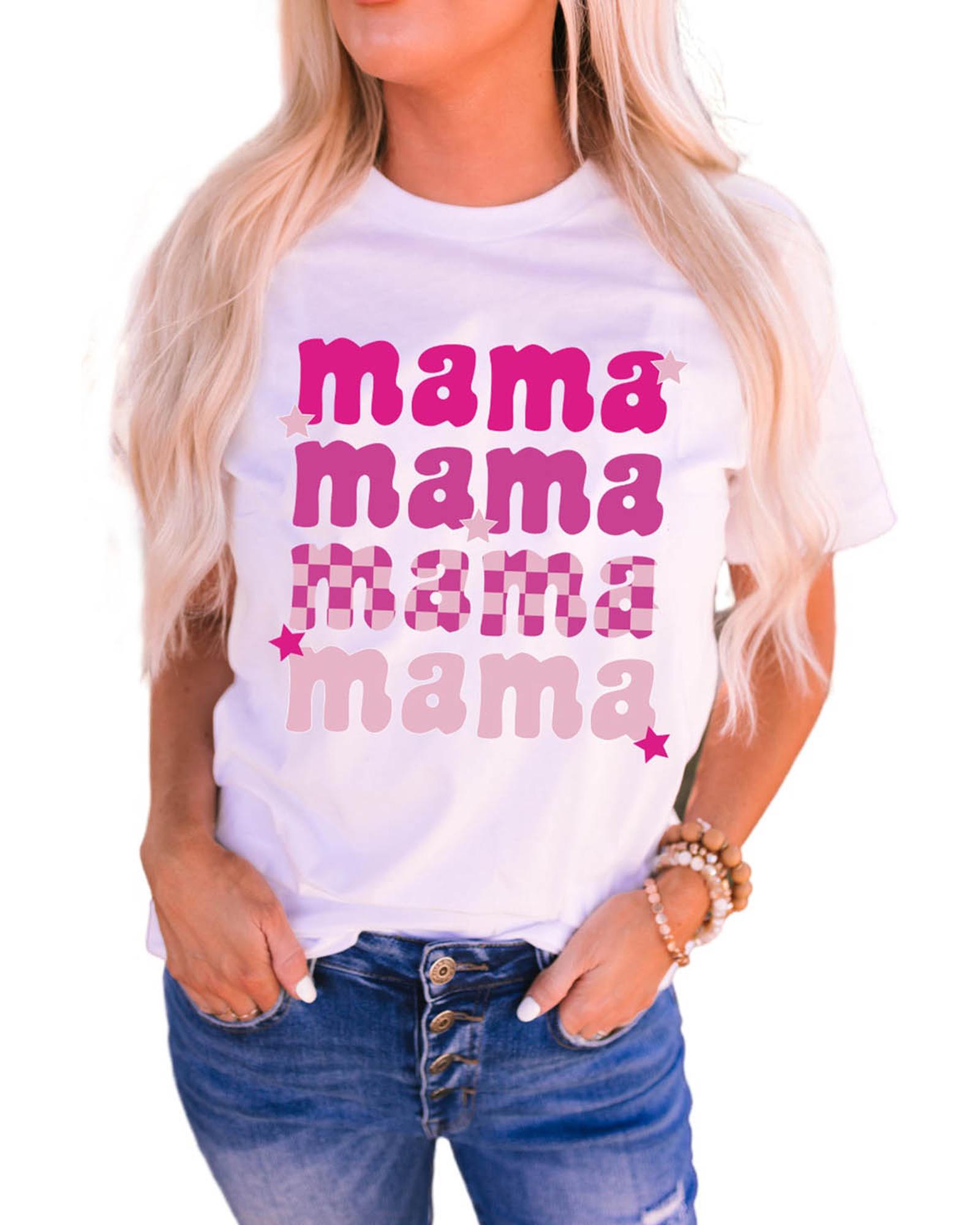 White Round Neck mama Graphic Casual Tee Round neck design for a trendy look Stylish mama graphic adds a unique touch Made from high - quality materials for comfort Available in various sizes with a size chart Perfect for everyday wear and casual occasions