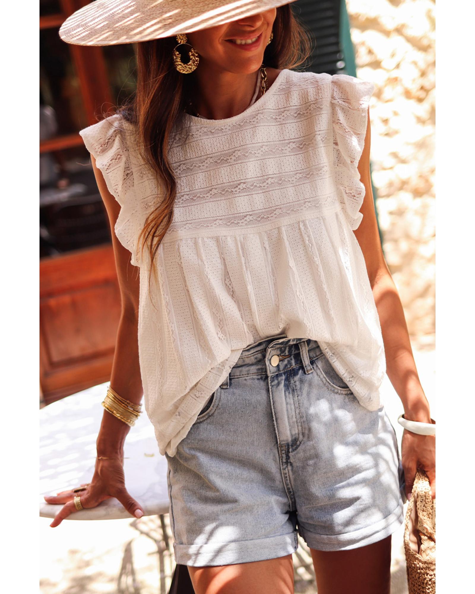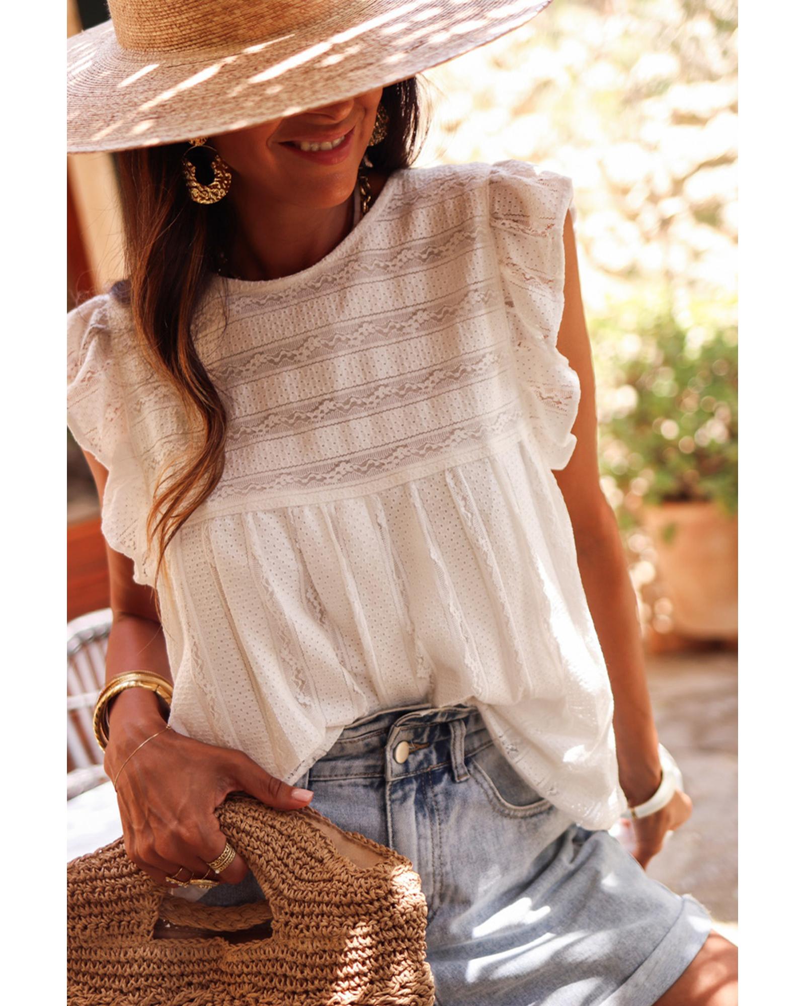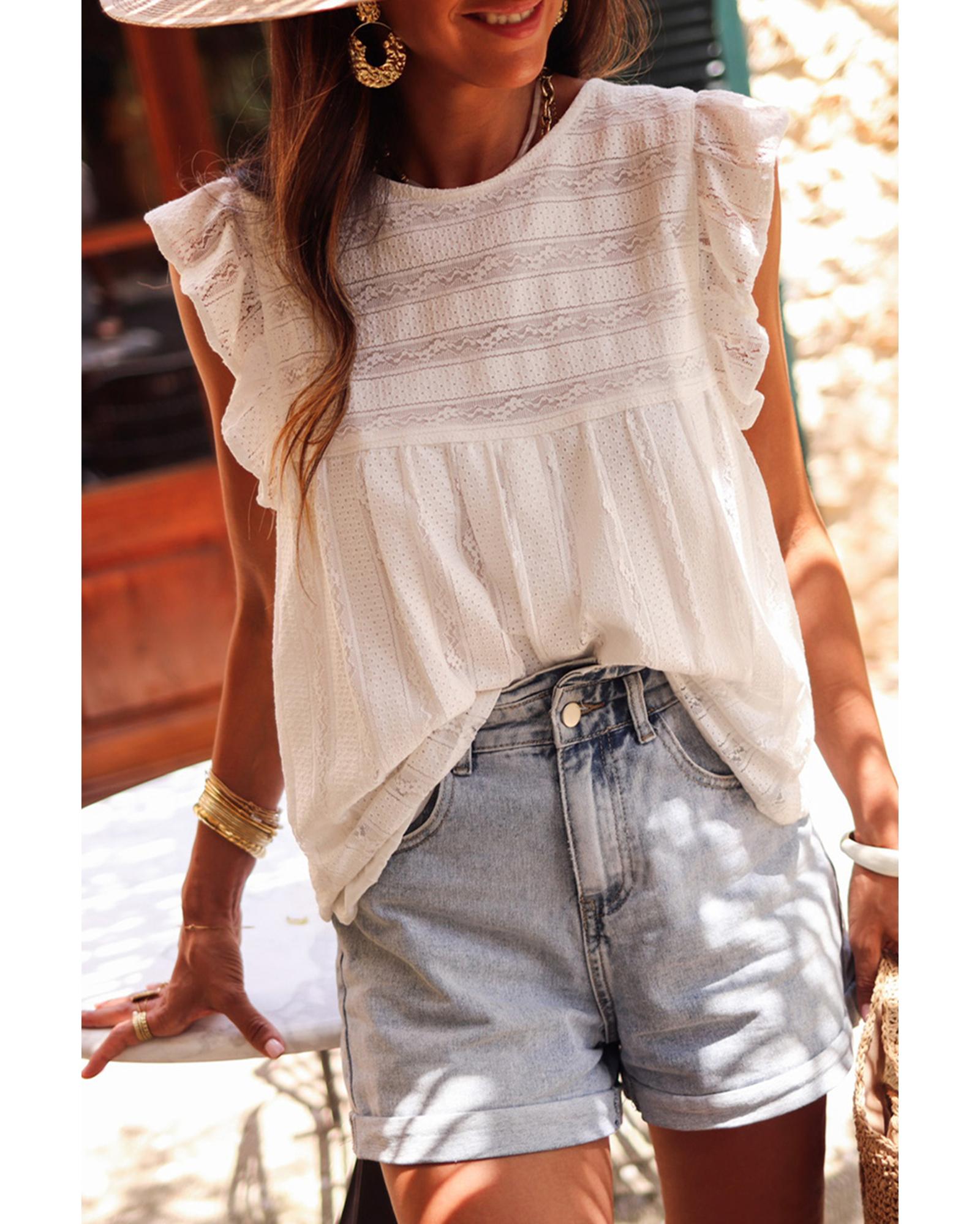 - White ruffled lace flowy tank top