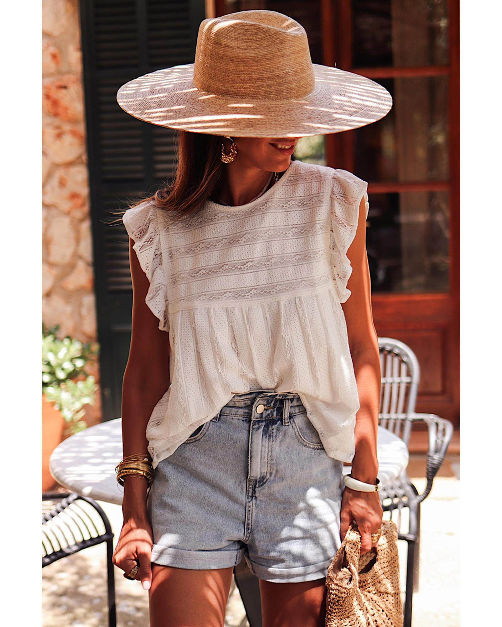 - White ruffled lace flowy tank top