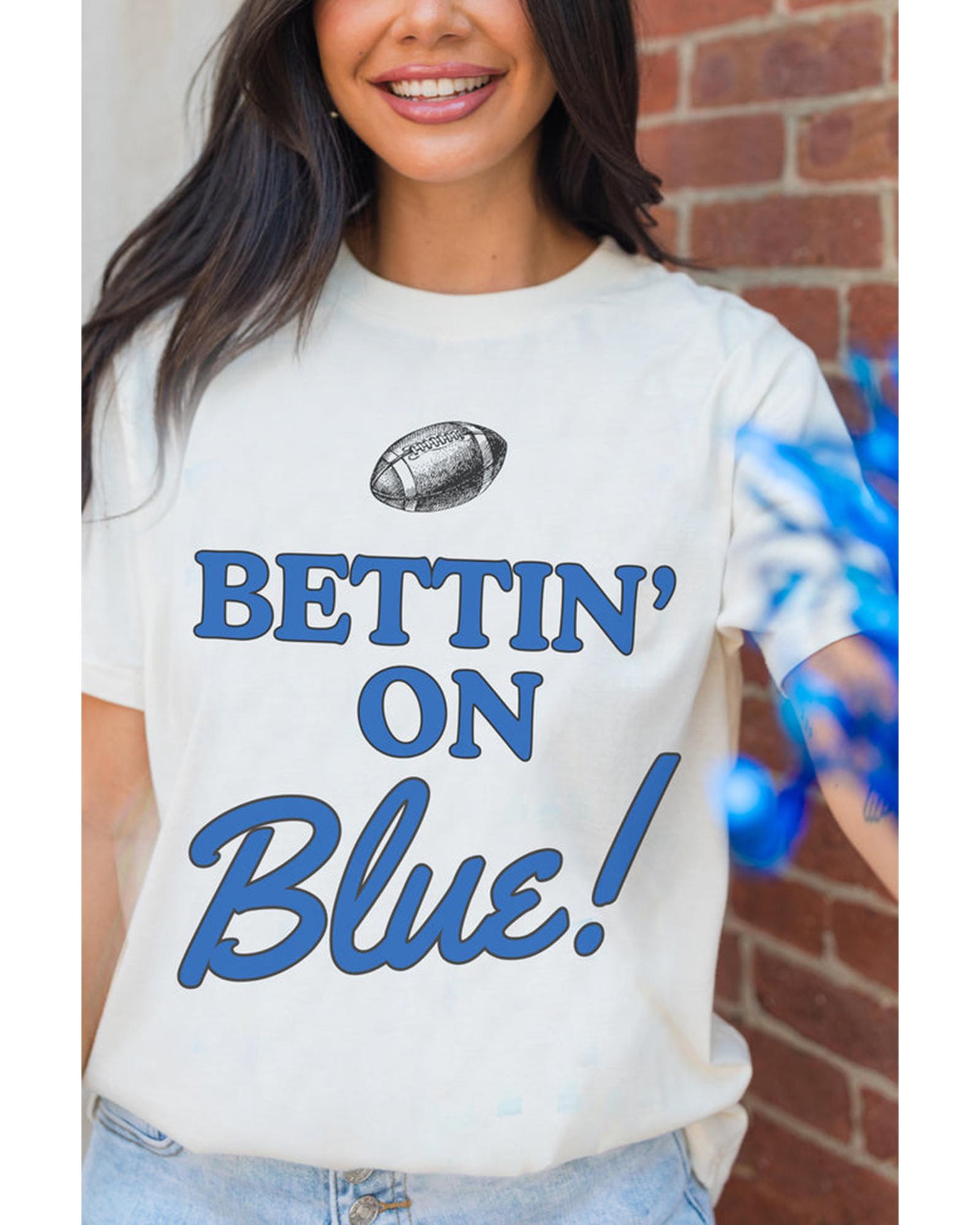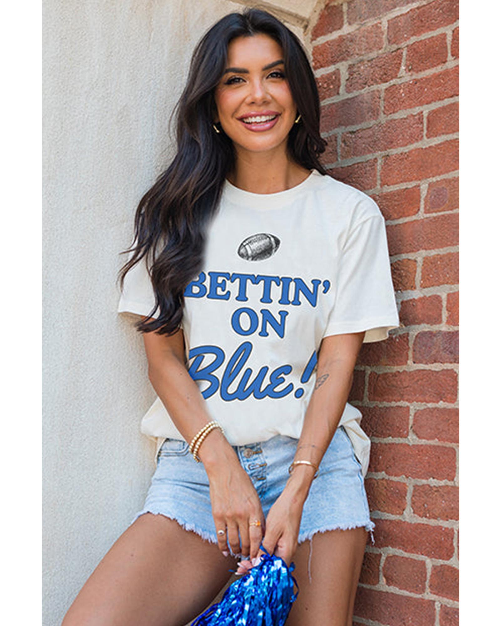 - White Rugby Football BETTIN ON Blue Graphic Crewneck T Shirt