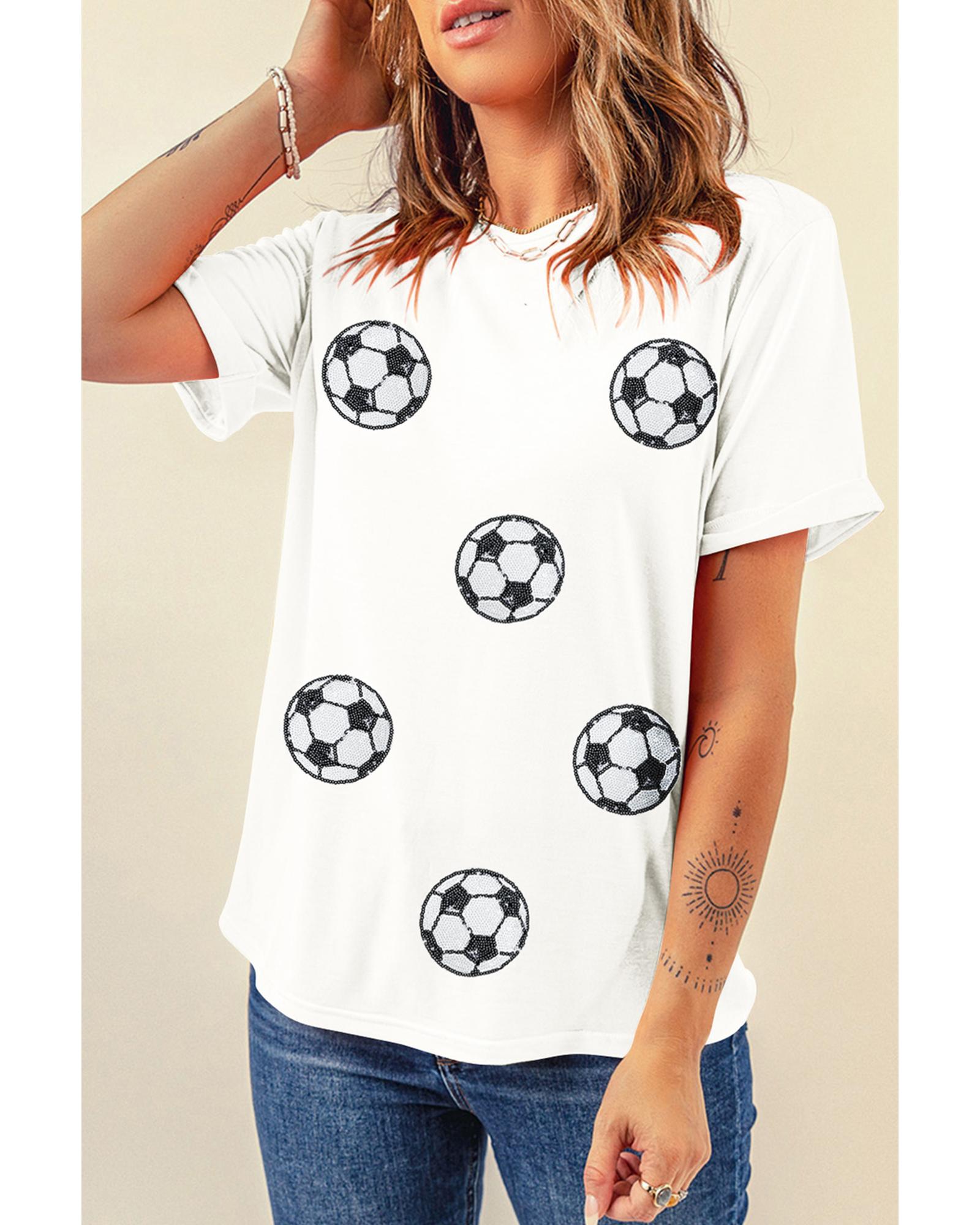 White Sequin Football Patched Graphic Game Day T Shirt – 3XL