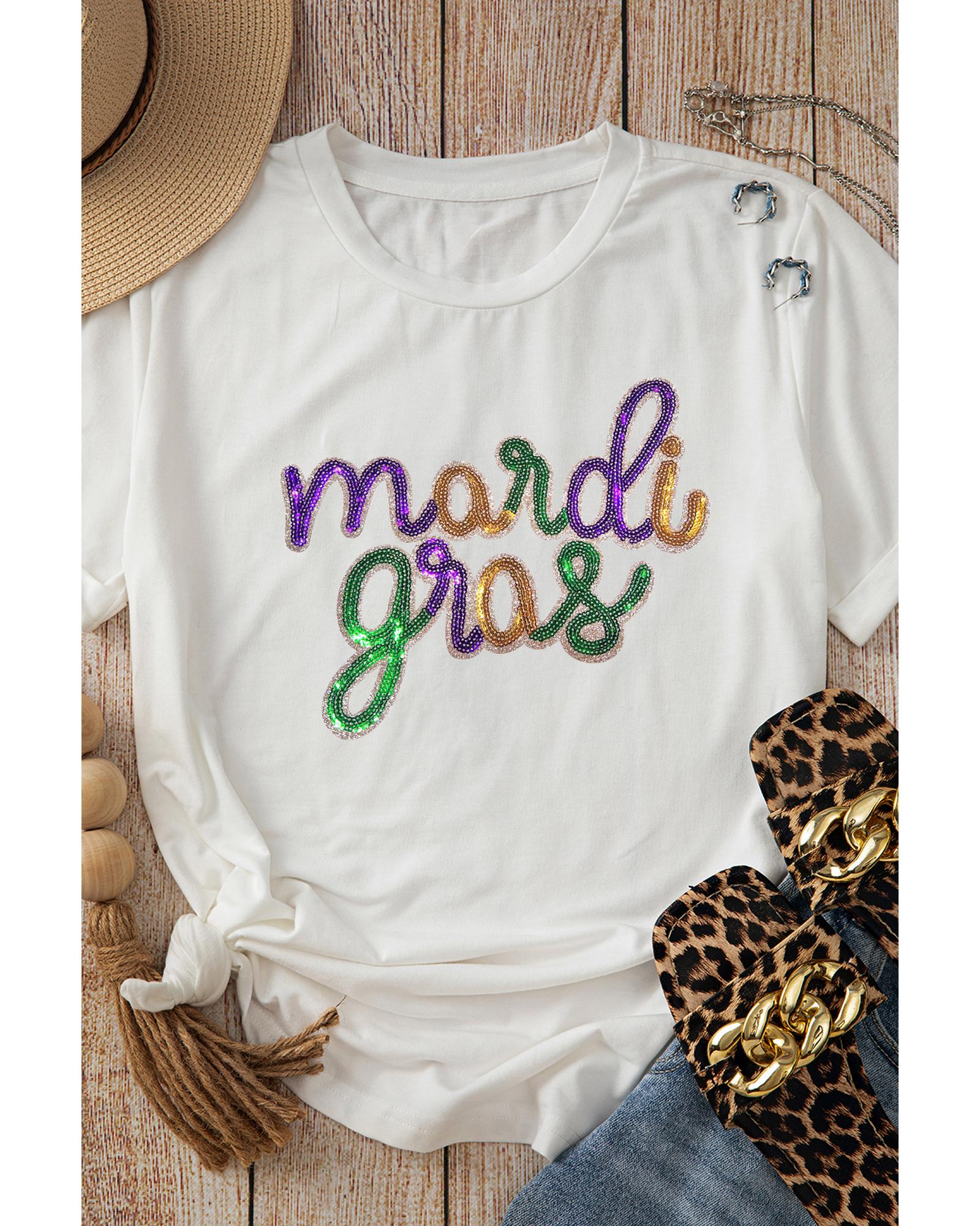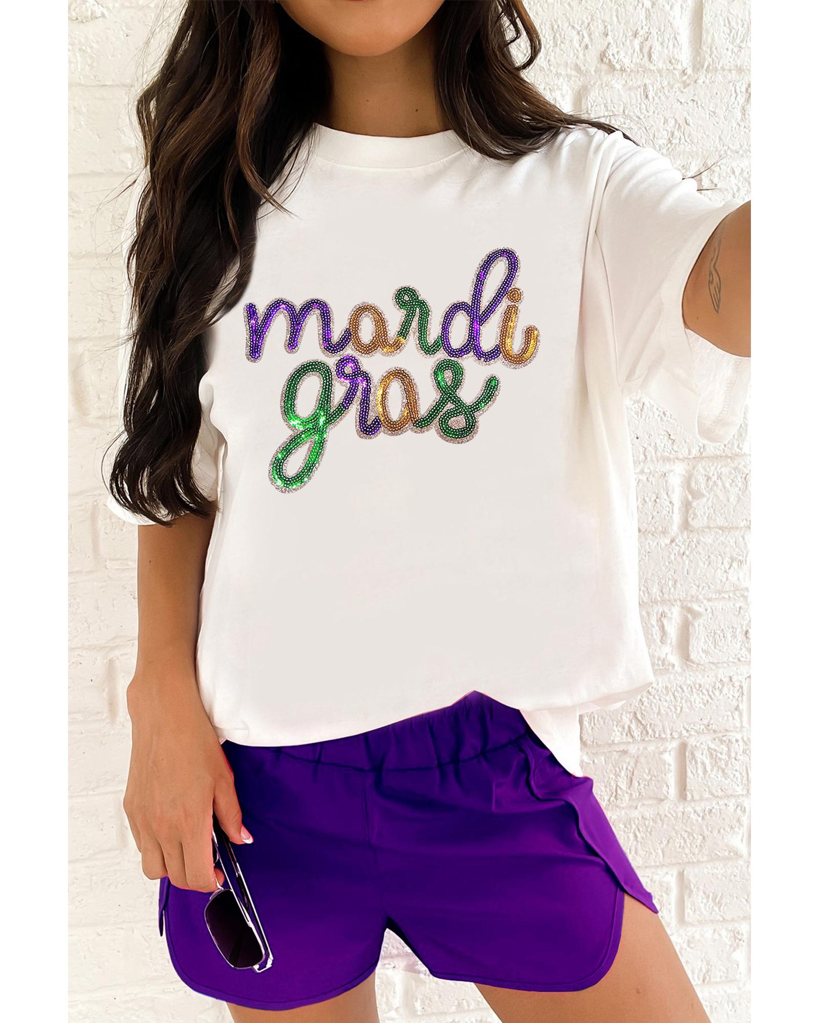• White Sequin Mardi Gras Graphic T