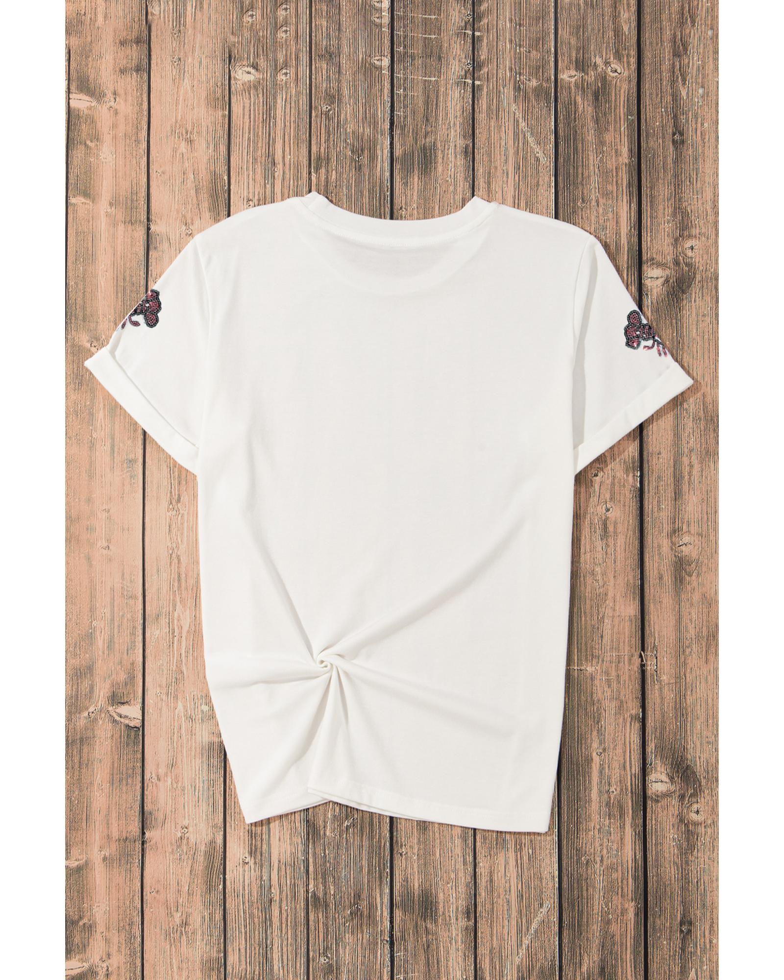 White Sequined Mardi Gras Pattern Crew Neck Short Sleeve Top - S
