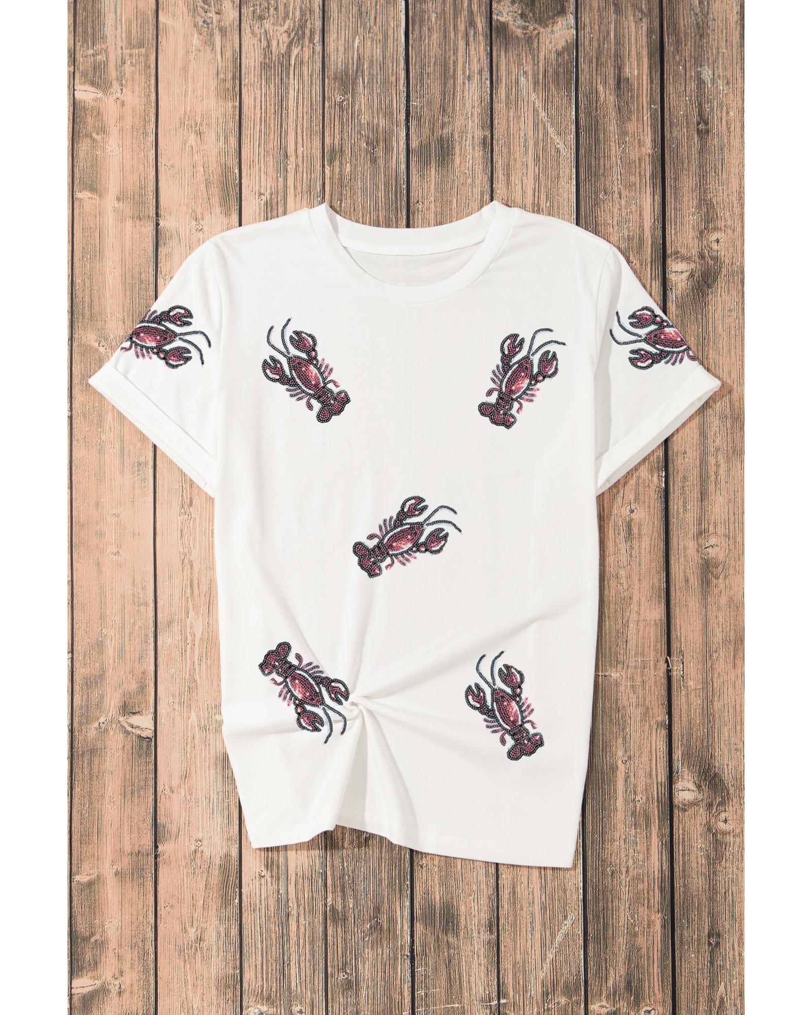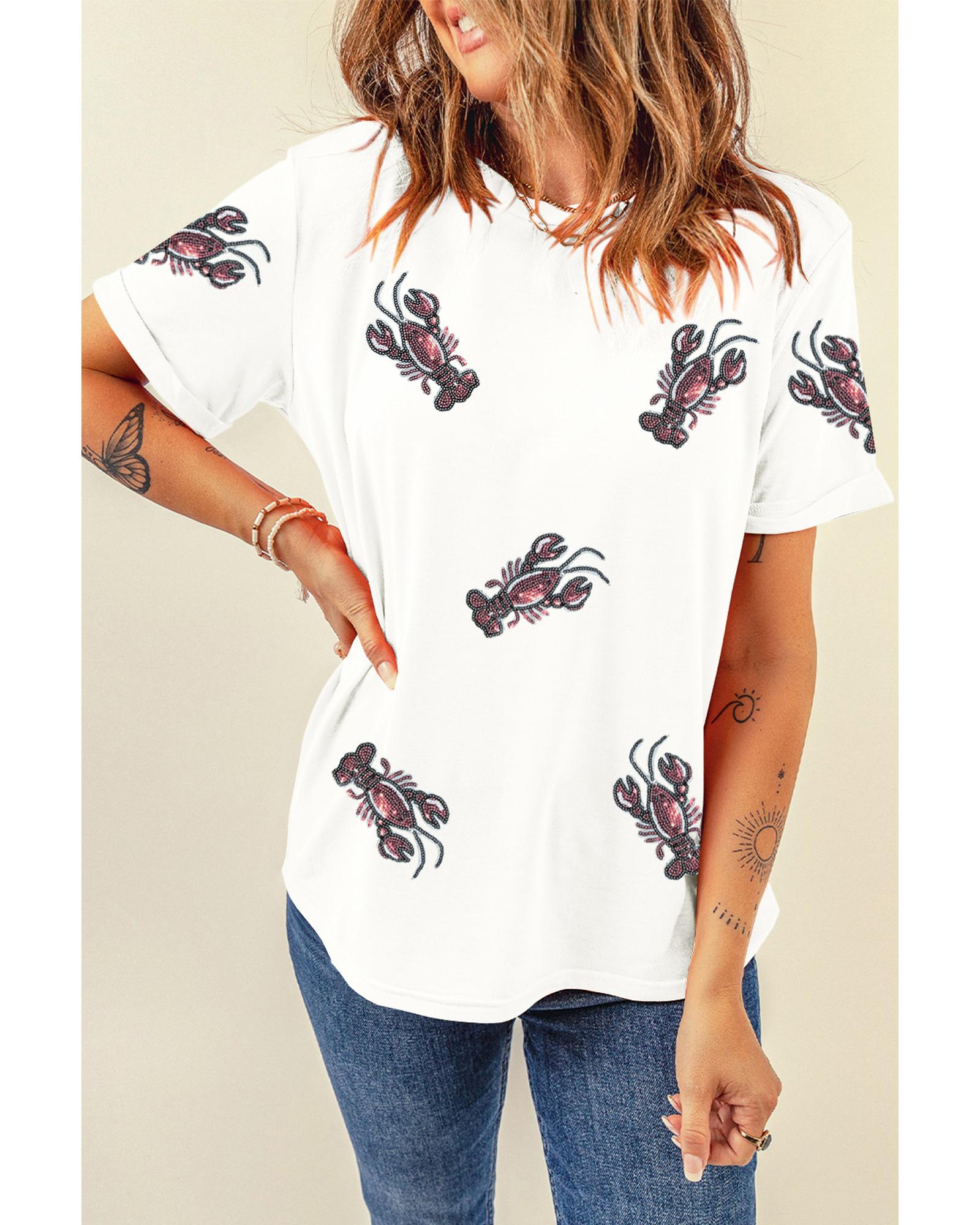 White Sequined Lobster Crewneck Tee – M