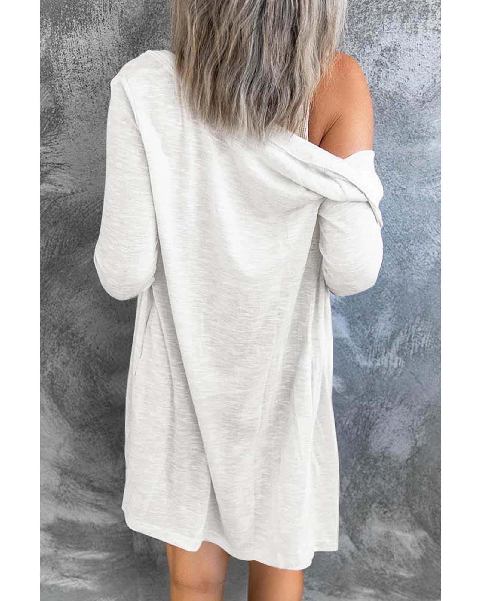 White Solid Color Open-Front Buttons Cardigan – 2XL