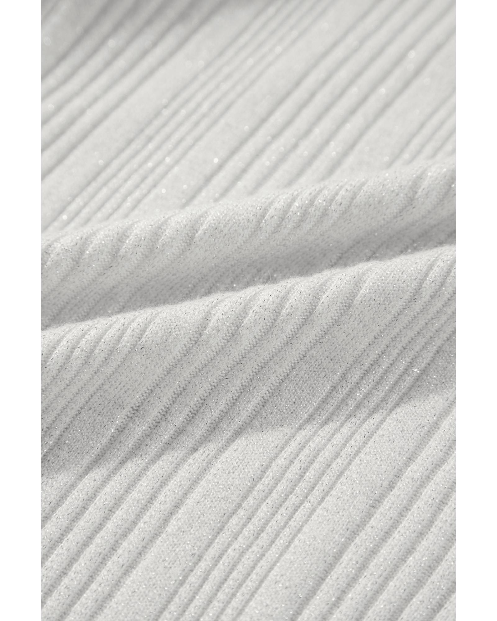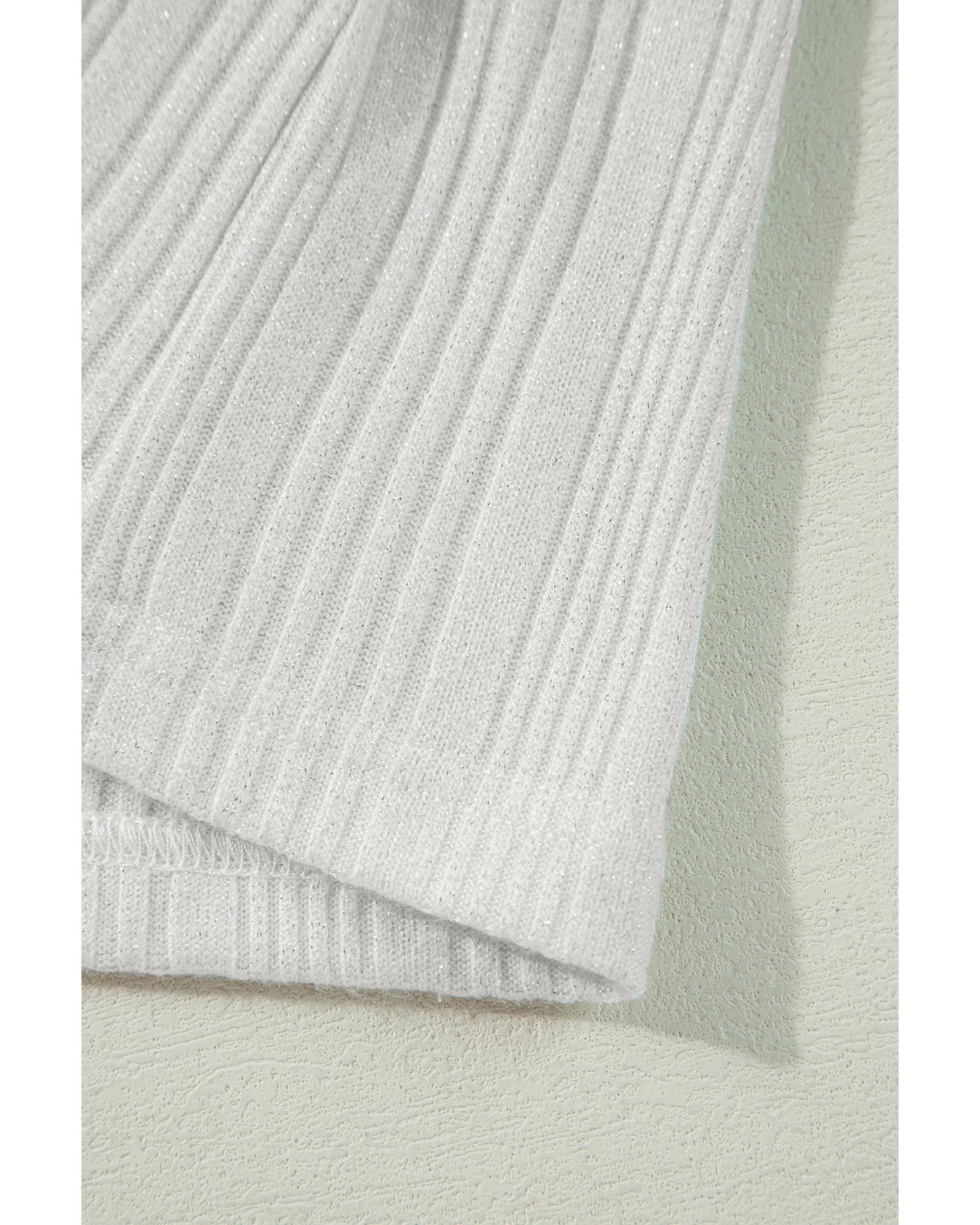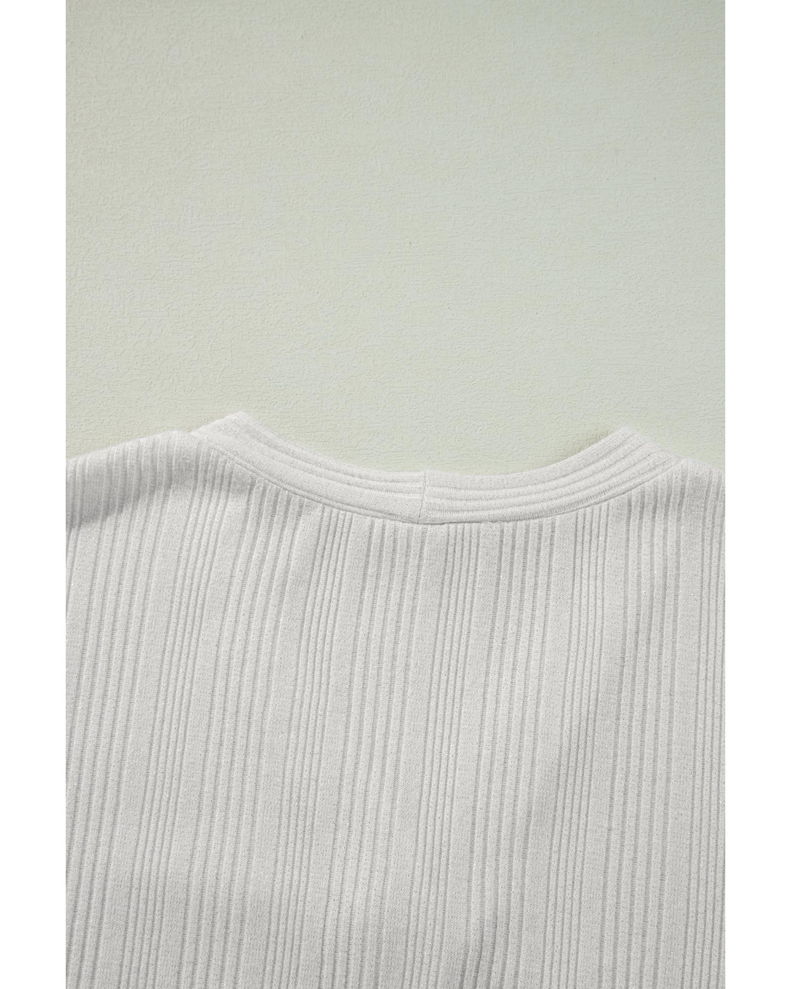- White solid color ribbed button up tunic cardigan