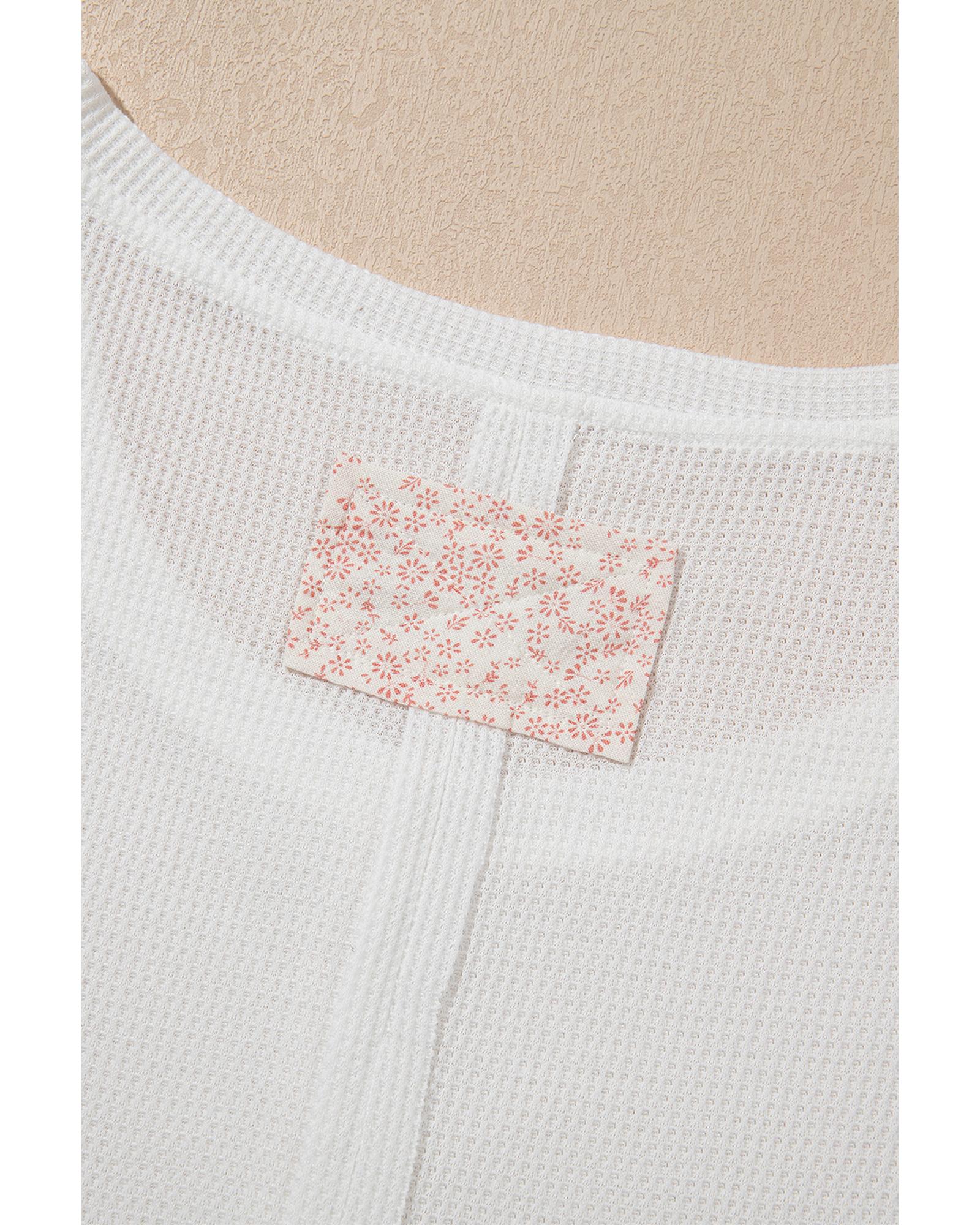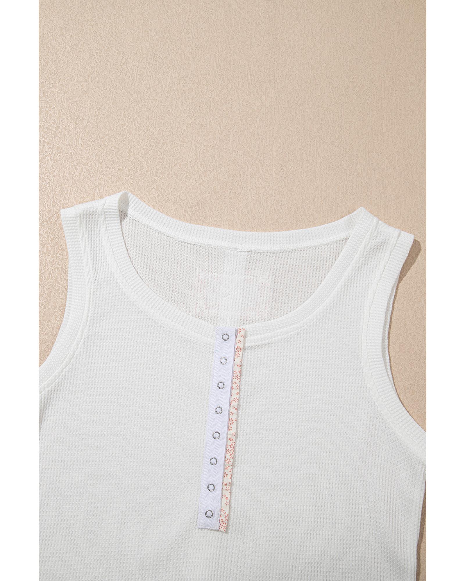 White Solid Color Waffle Knit Half Buttons Tank Top – S