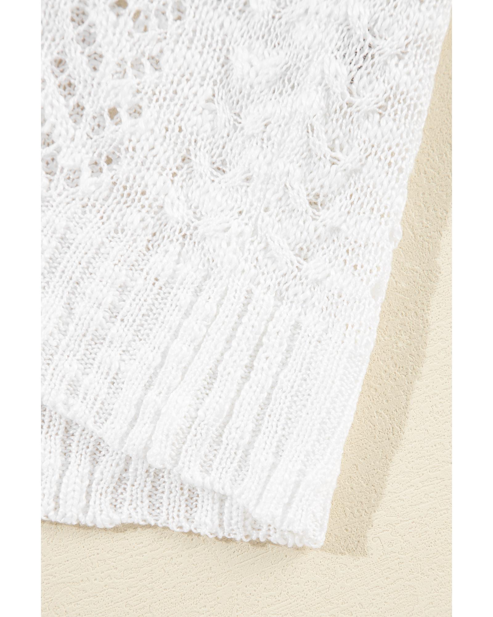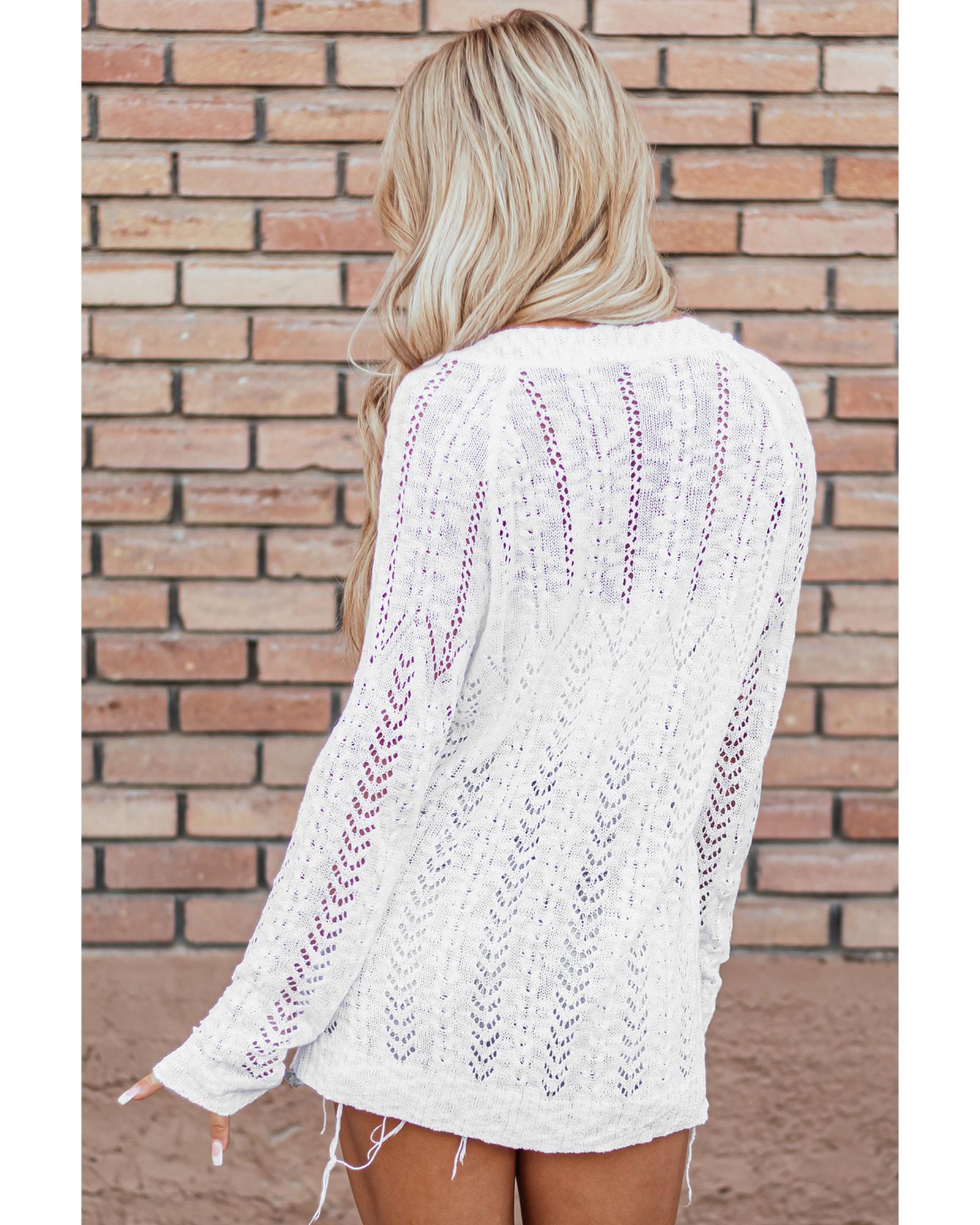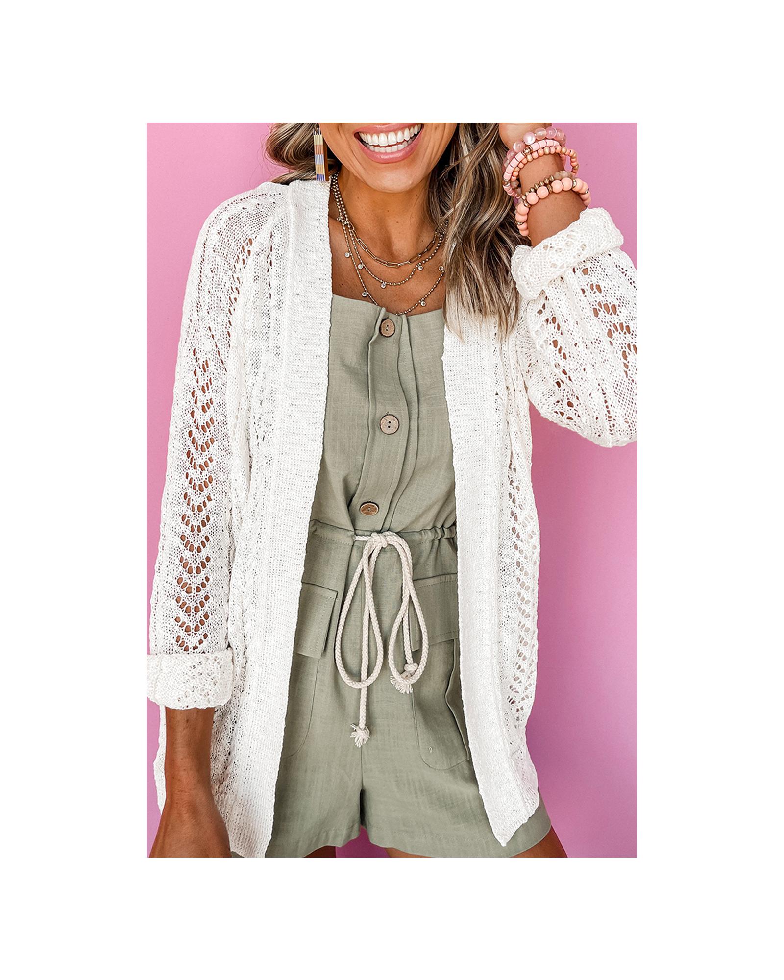 White Solid Open Knit Cardigan – XL