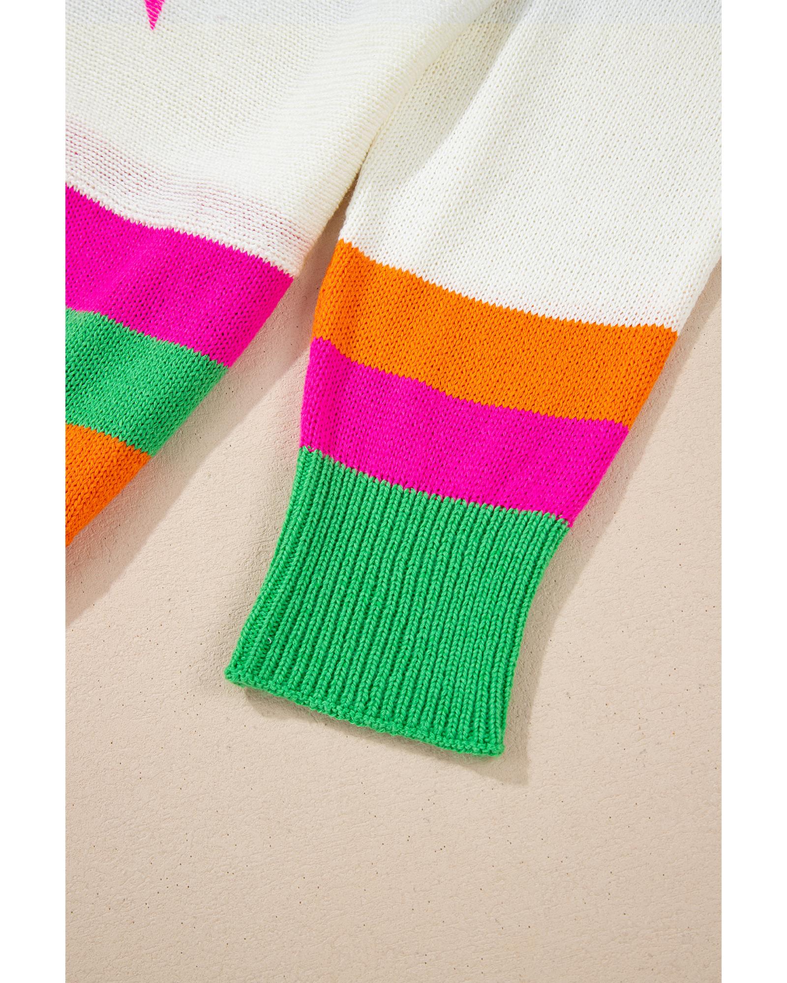 White Star Pattern Colorblock Striped Edge Drop Shoulder Sweater – L