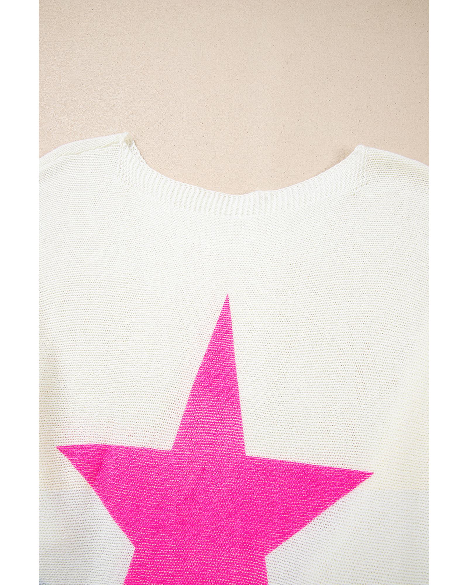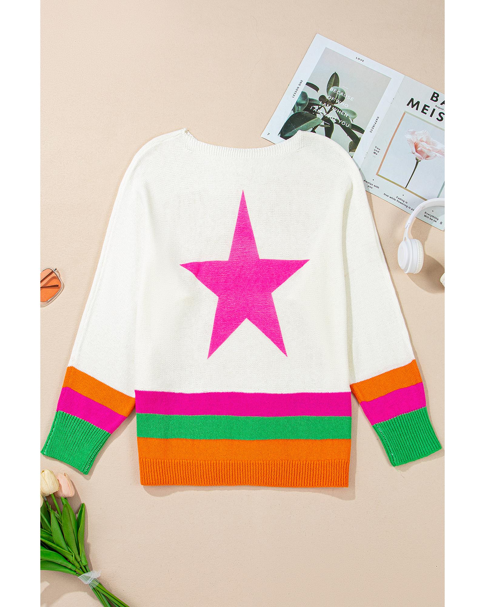 White Star Pattern Colorblock Striped Edge Drop Shoulder Sweater - S