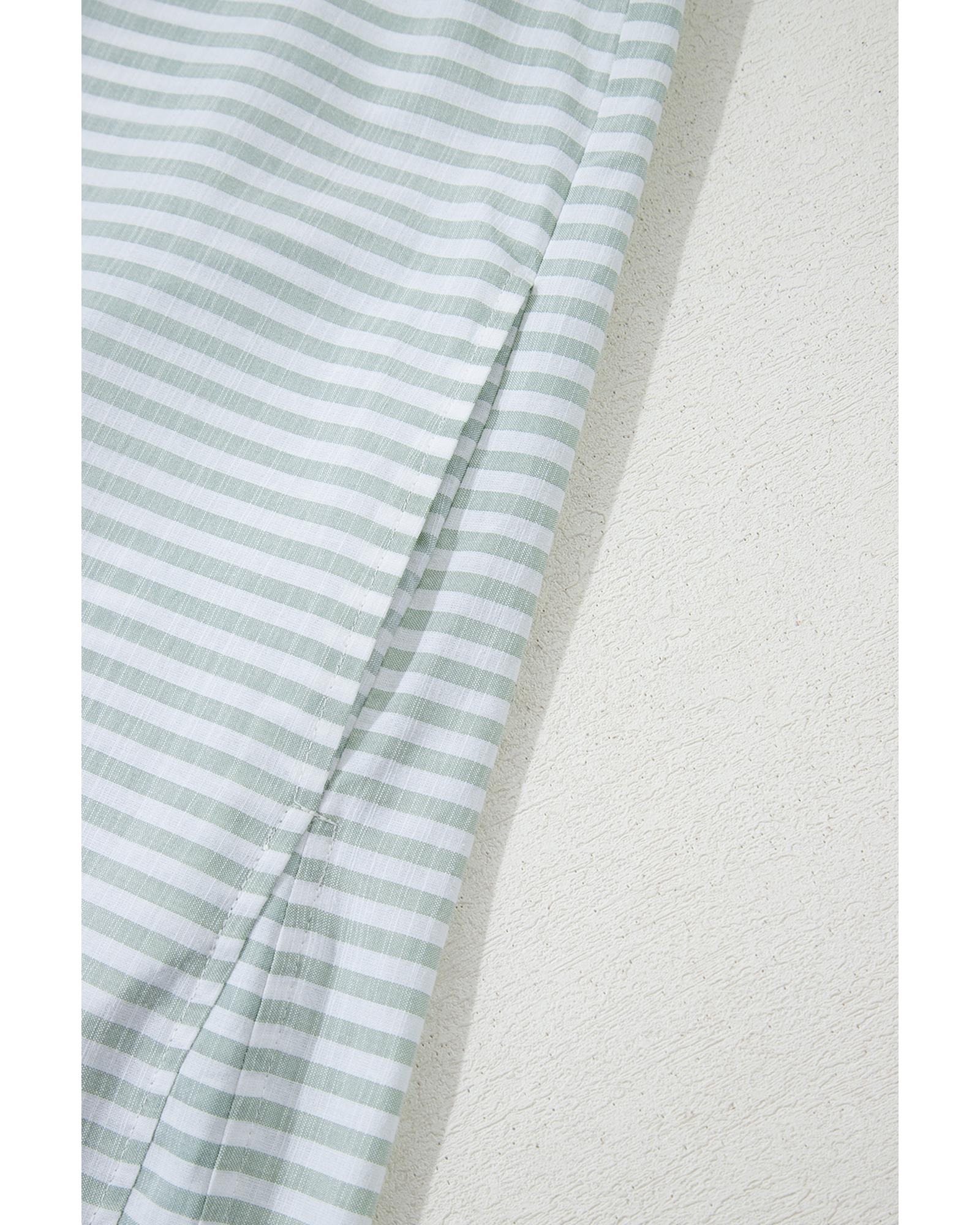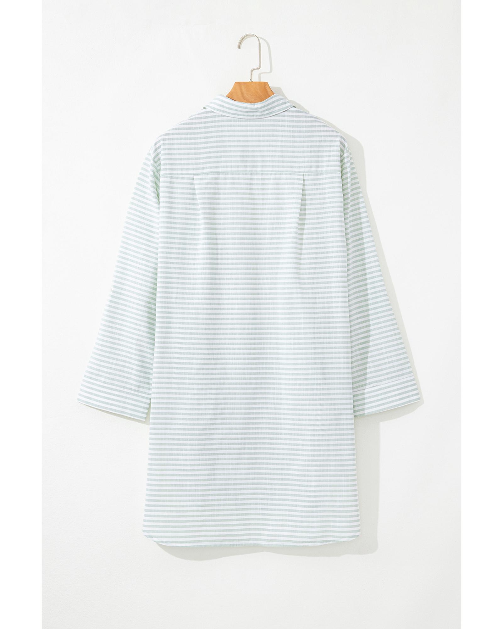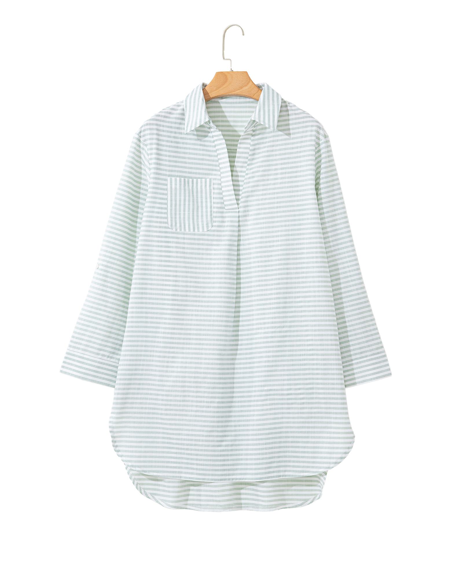 White Stripe Collared V Neck Chest Pocket Long Sleeve Beach Cover up – XL