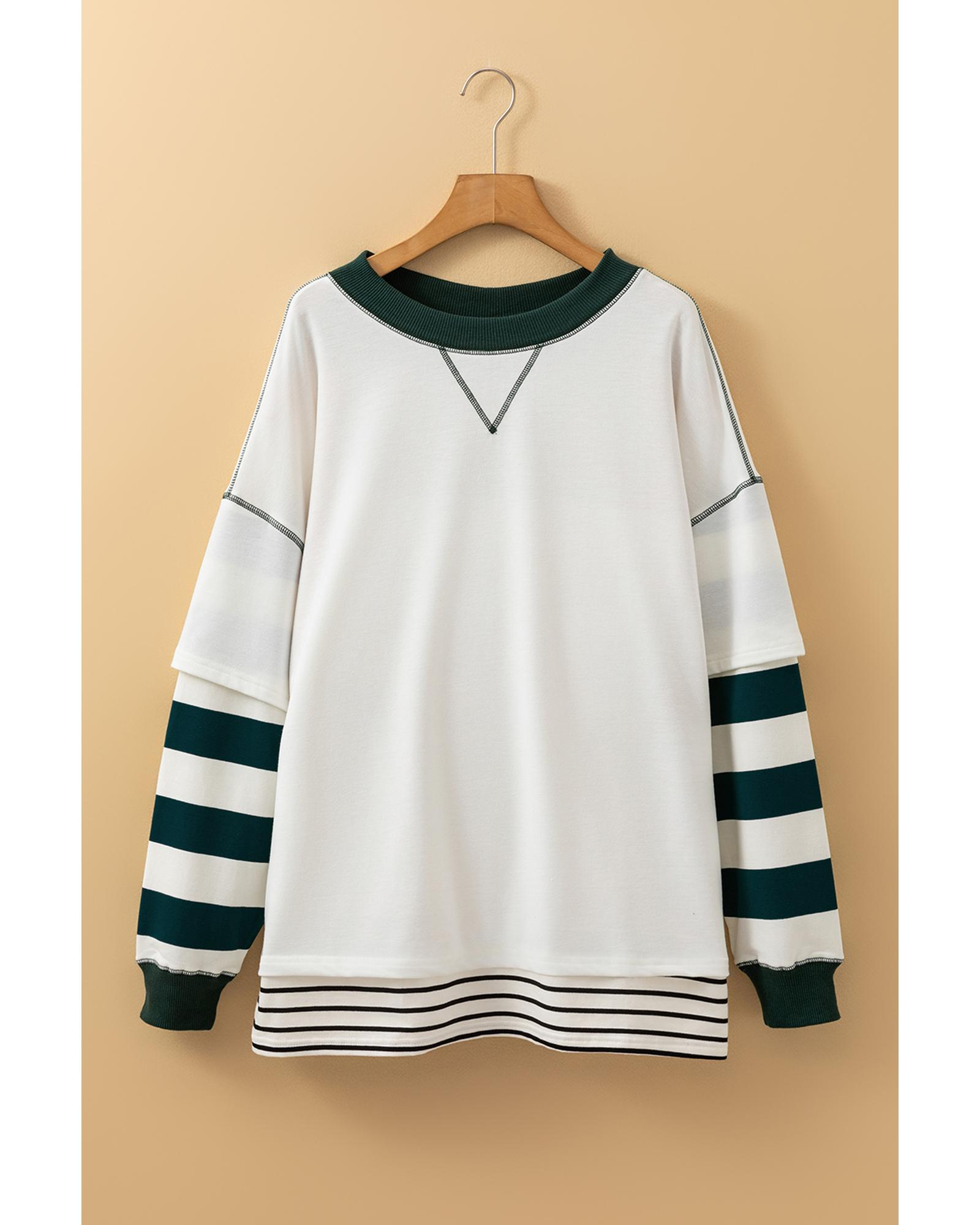 White Stripe Colorblock Sleeve Exposed Seam Fake-2-Piece Sweatshirt – M