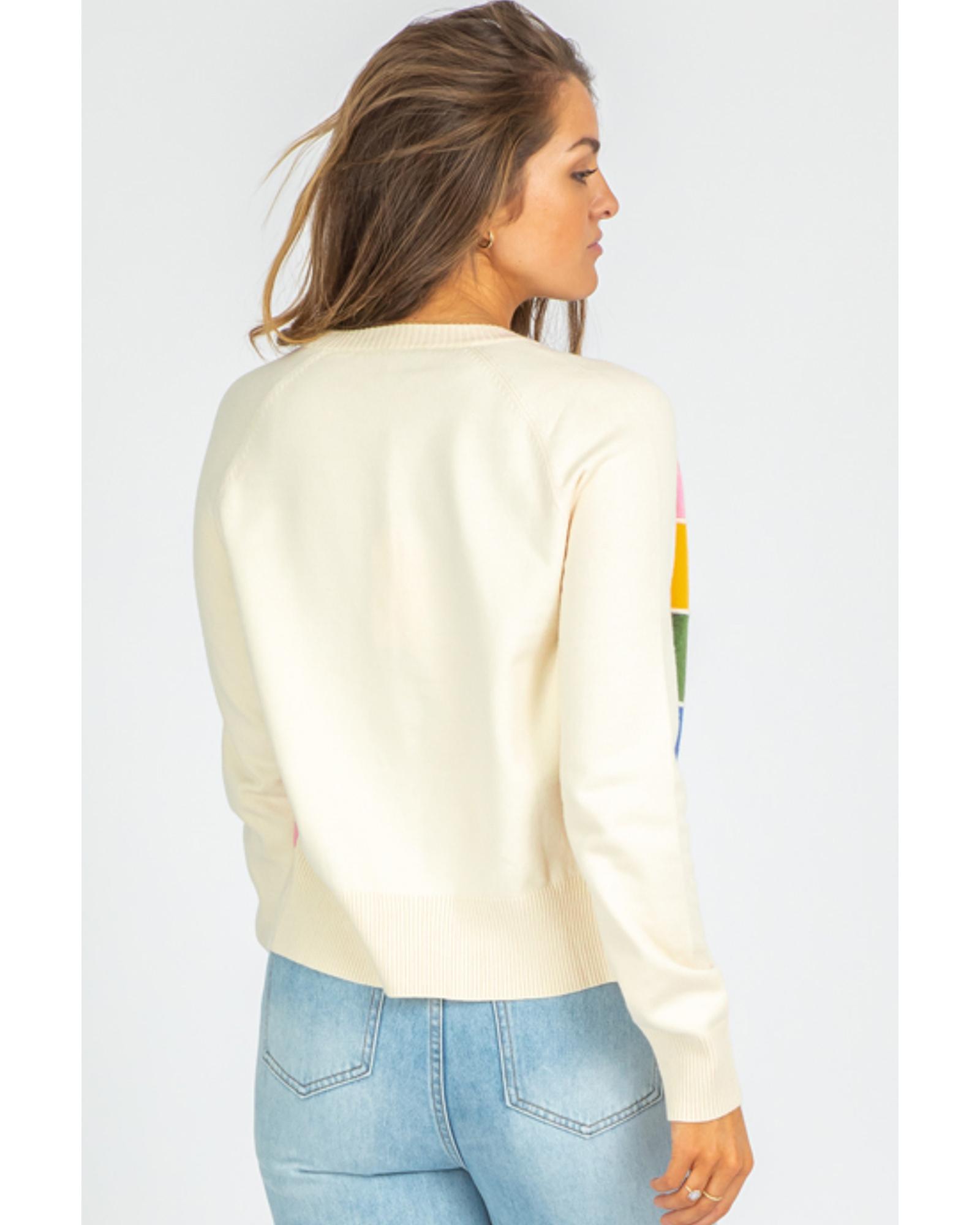 White Stripe Colorful Pattern Button Front Sweater Cardigan – S