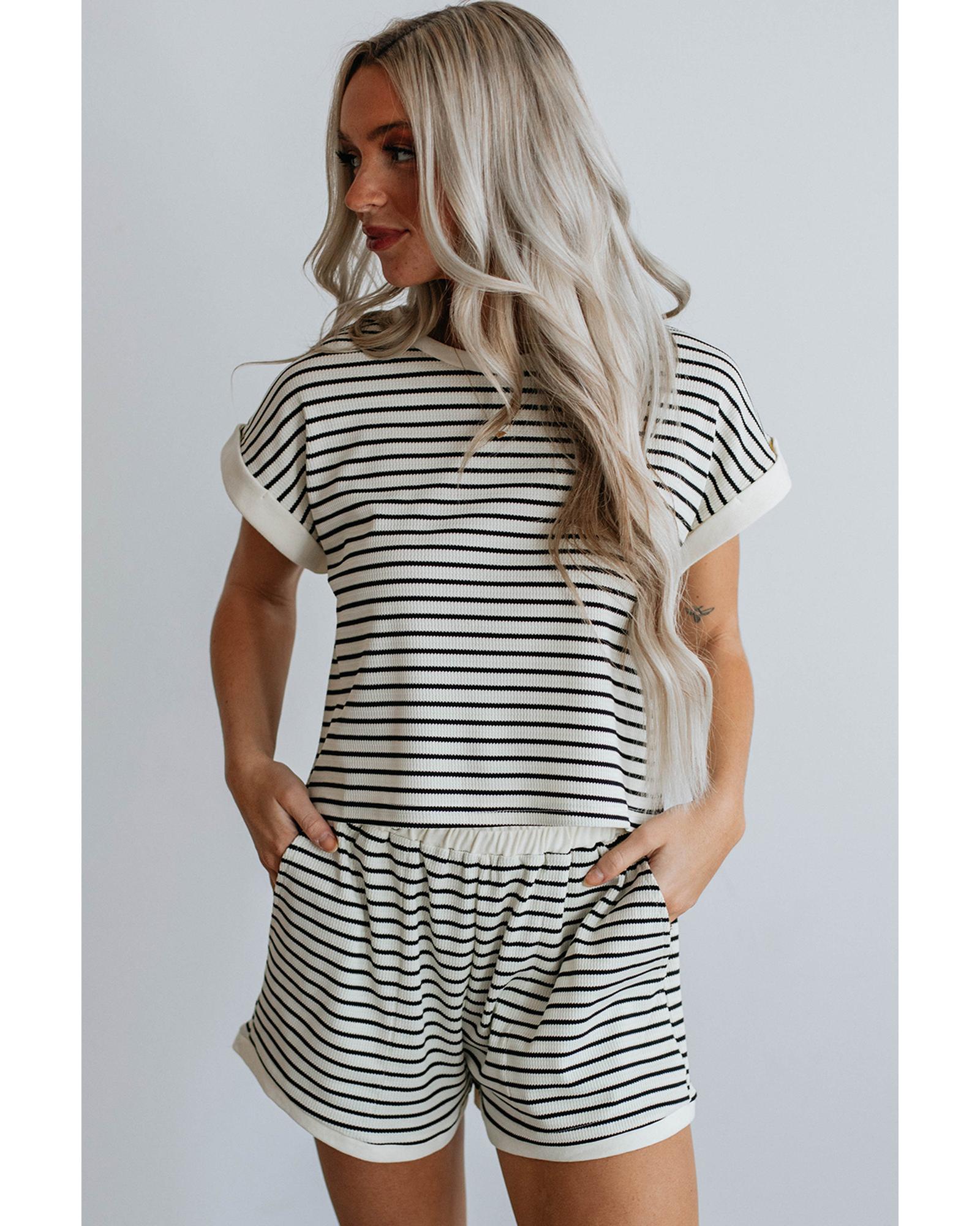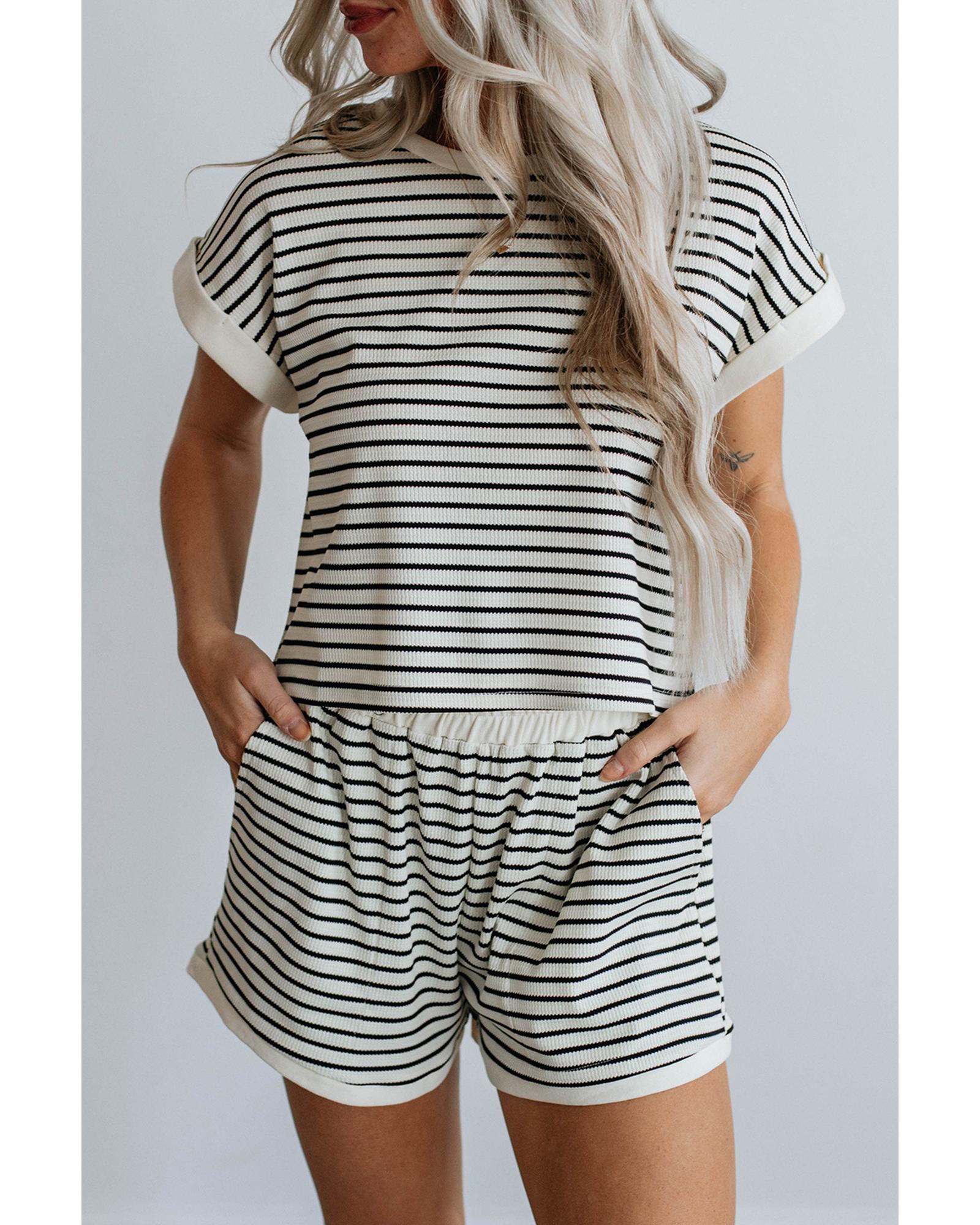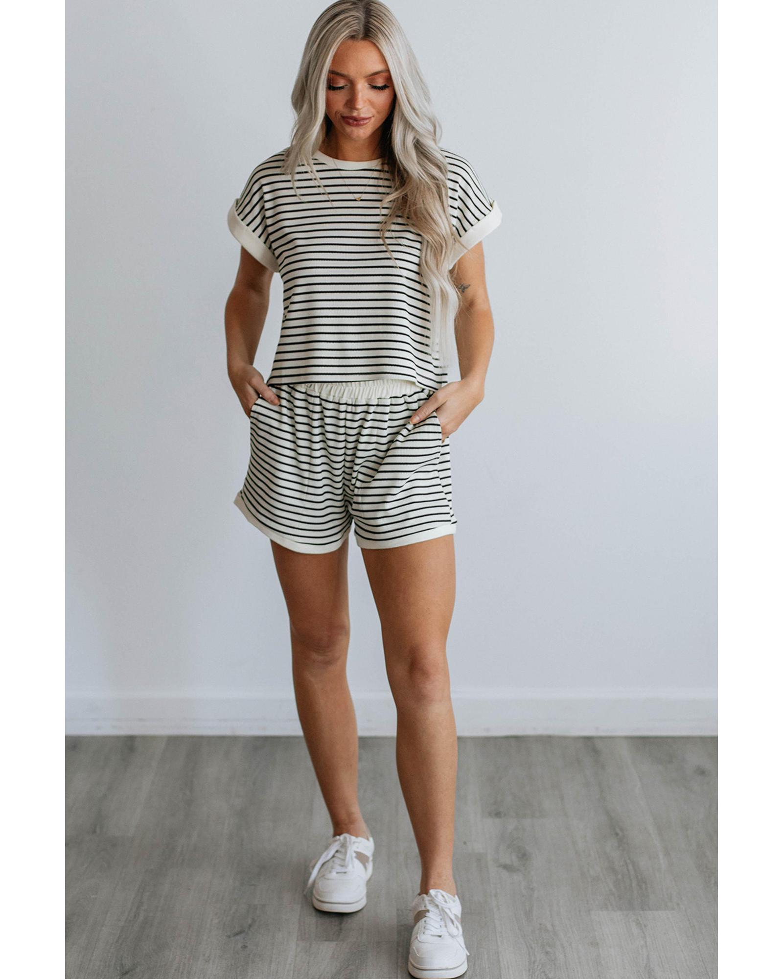 - Striped tee and shorts set for a casual and fashionable look