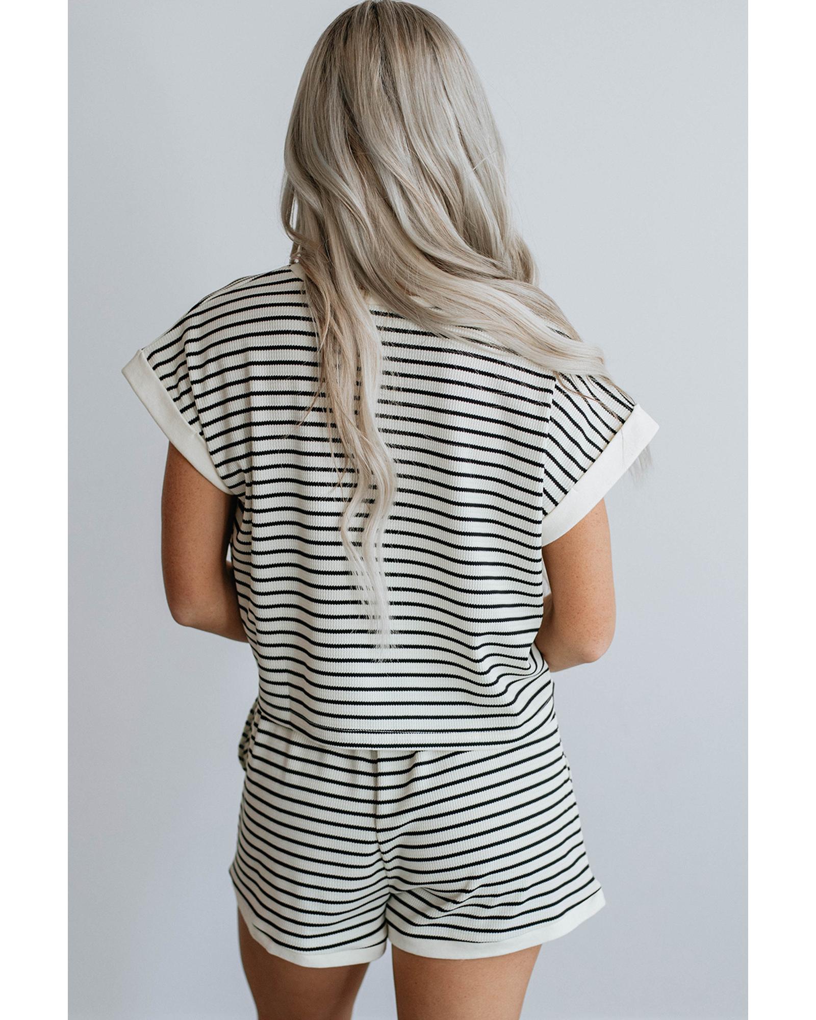 White Stripe Contrast Edge Tee and Shorts Set – M