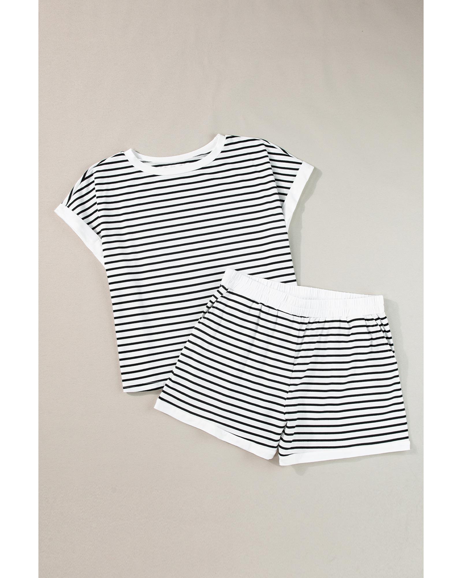 - Striped tee and shorts set for a casual and fashionable look