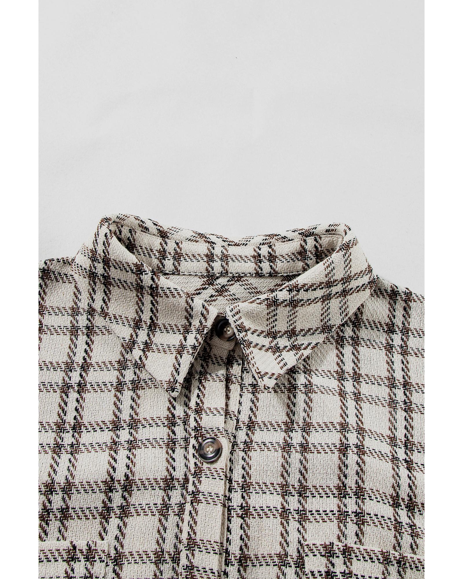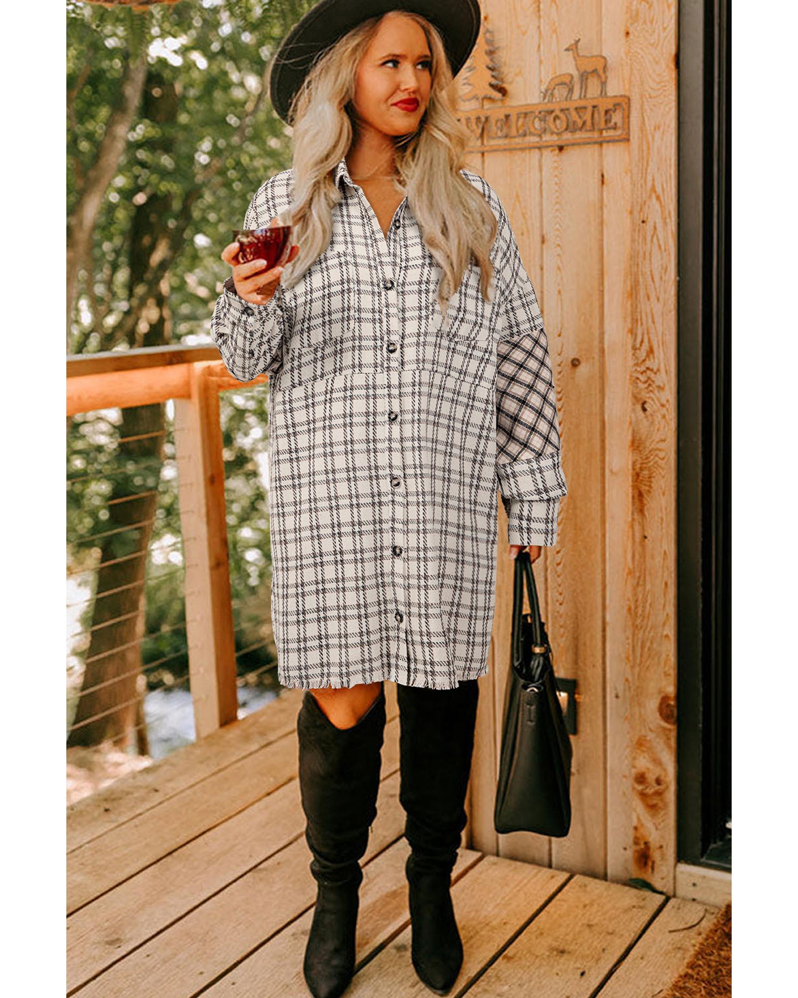 White Stripe Plus Size Plaid Buttoned Raw Hem Tunic Shirt Dress – 4X