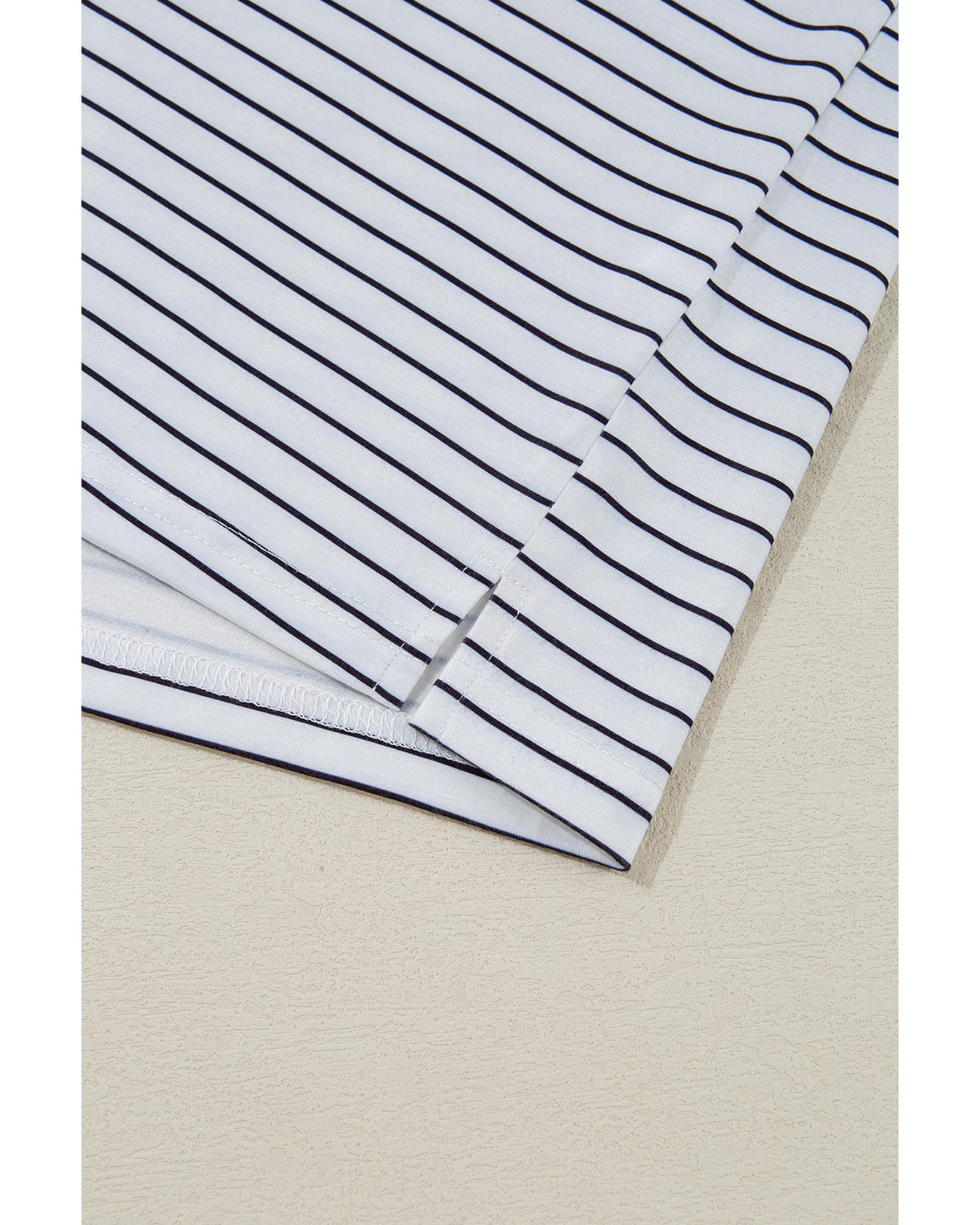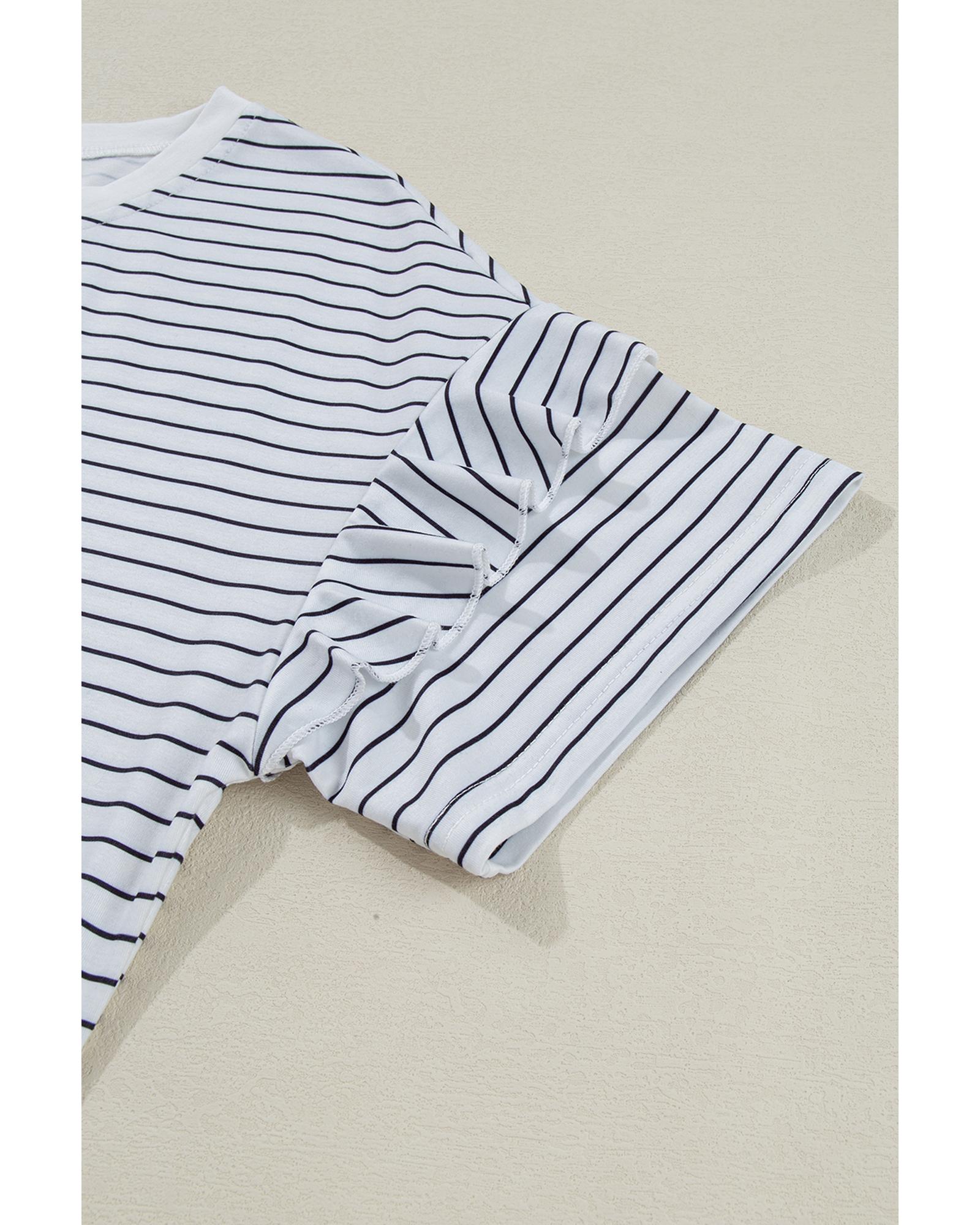 White Stripe Ruffled Short Sleeve Crew Neck T Shirt Shift Mini Dress – L