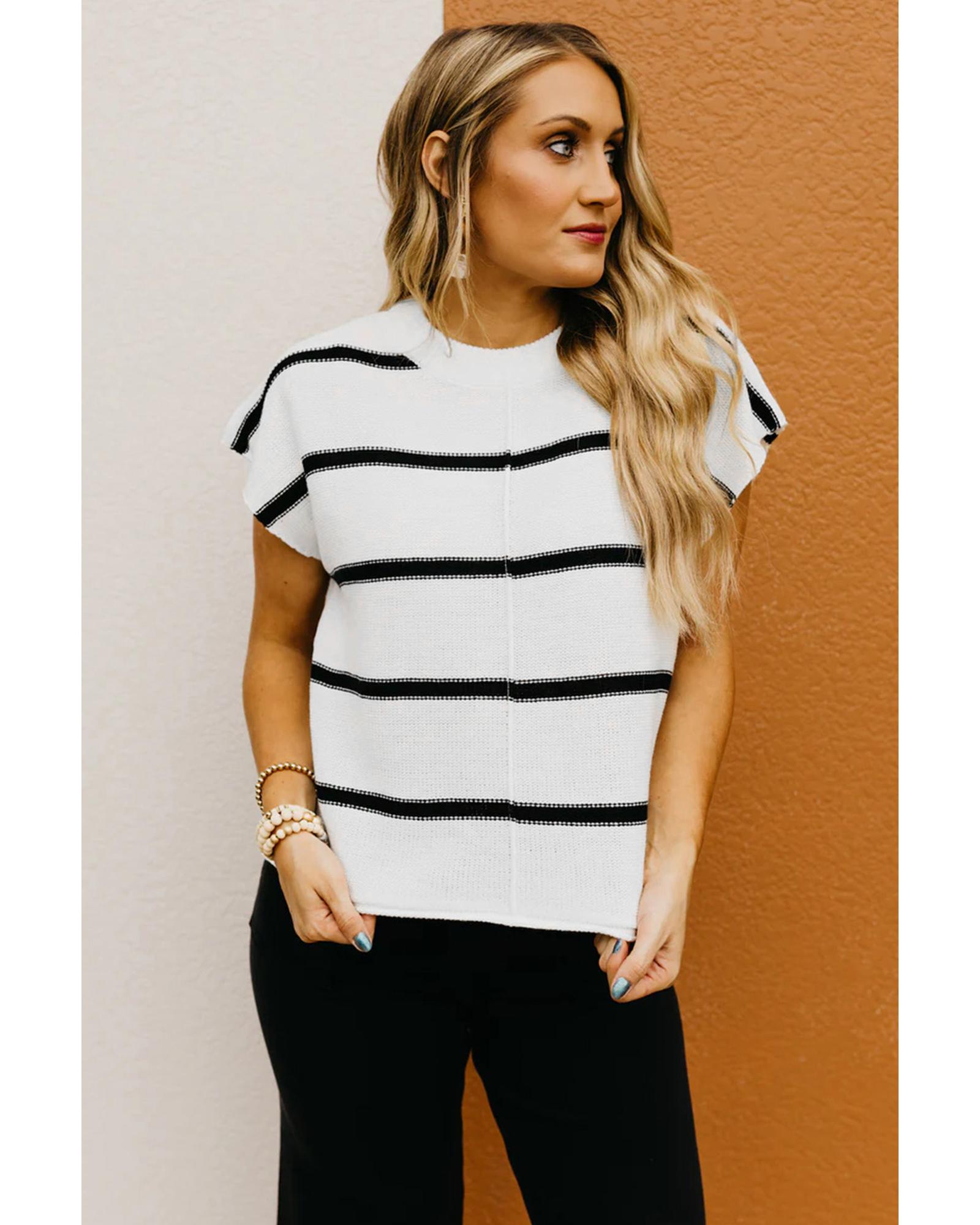White Striped Batwing Sleeve Sweater Tee – M