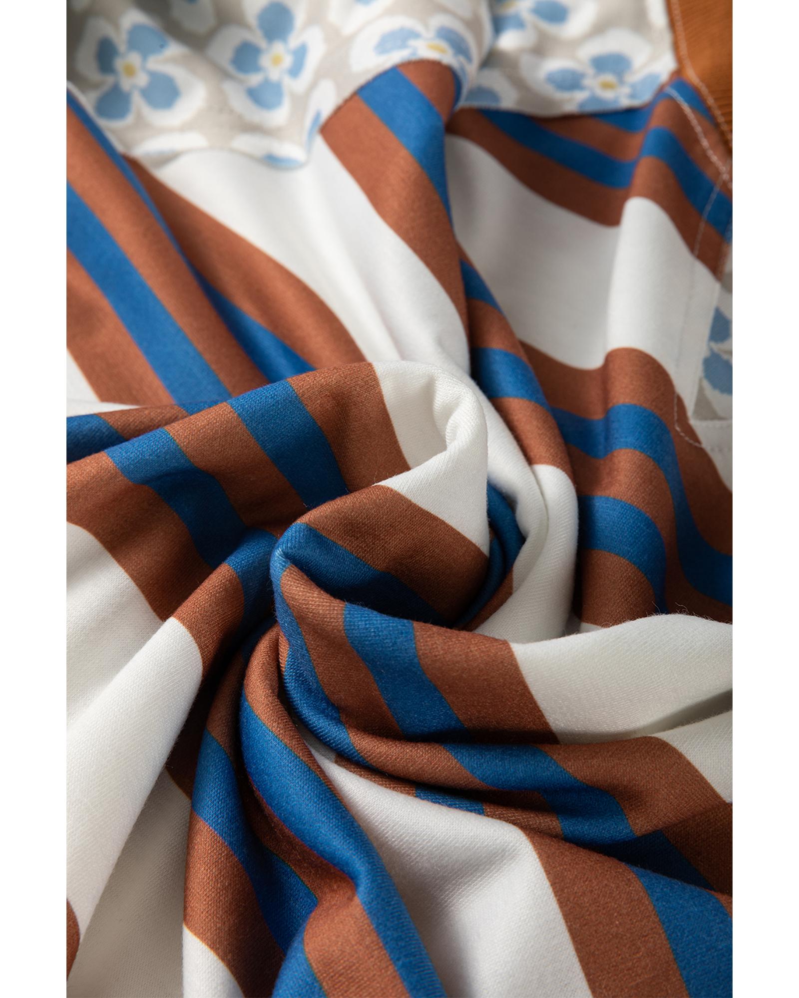 White Striped Floral Printed Patchwork Lantern Sleeve Blouse – XL