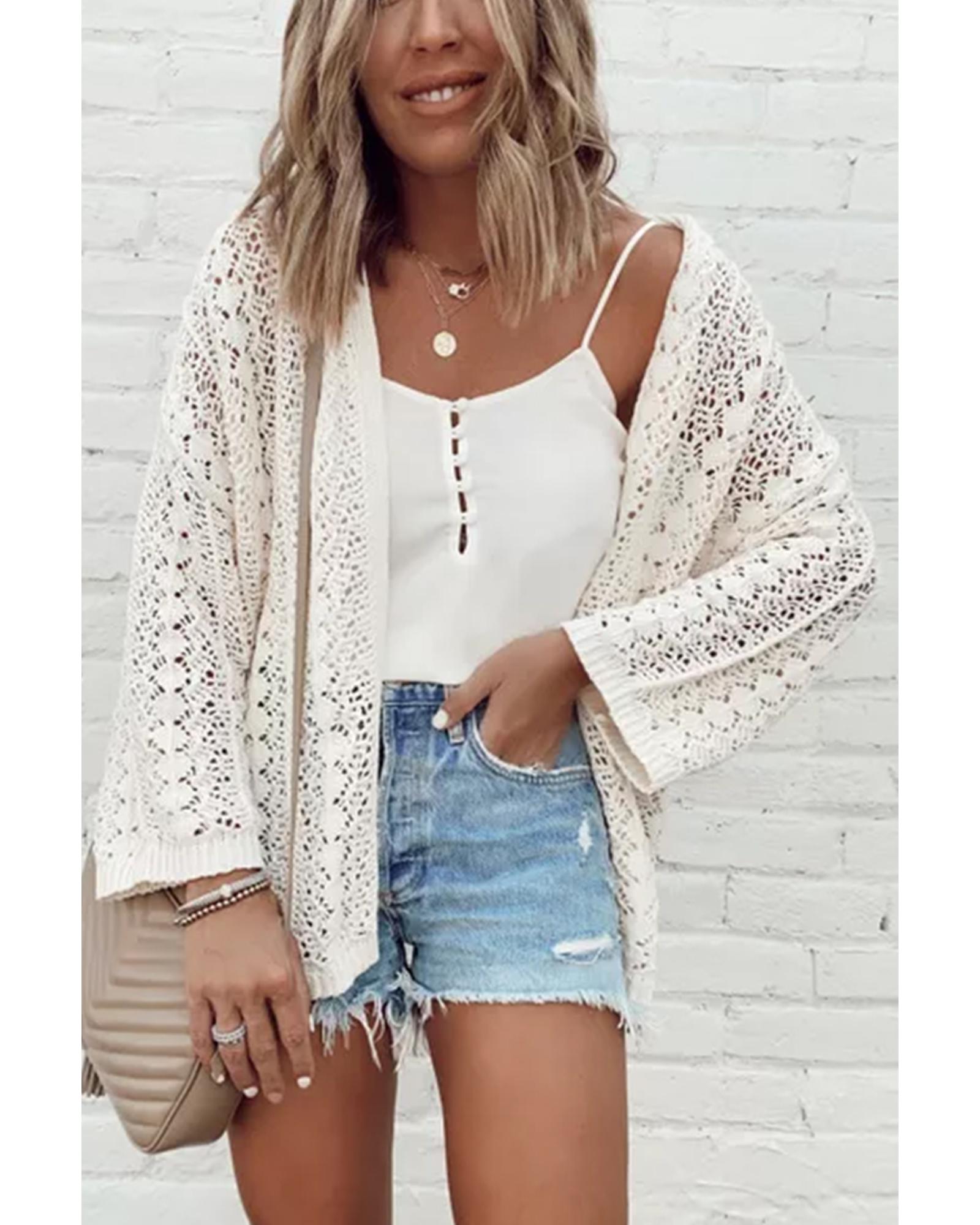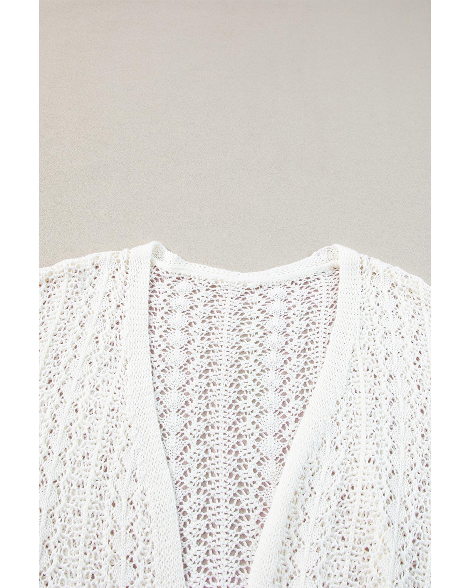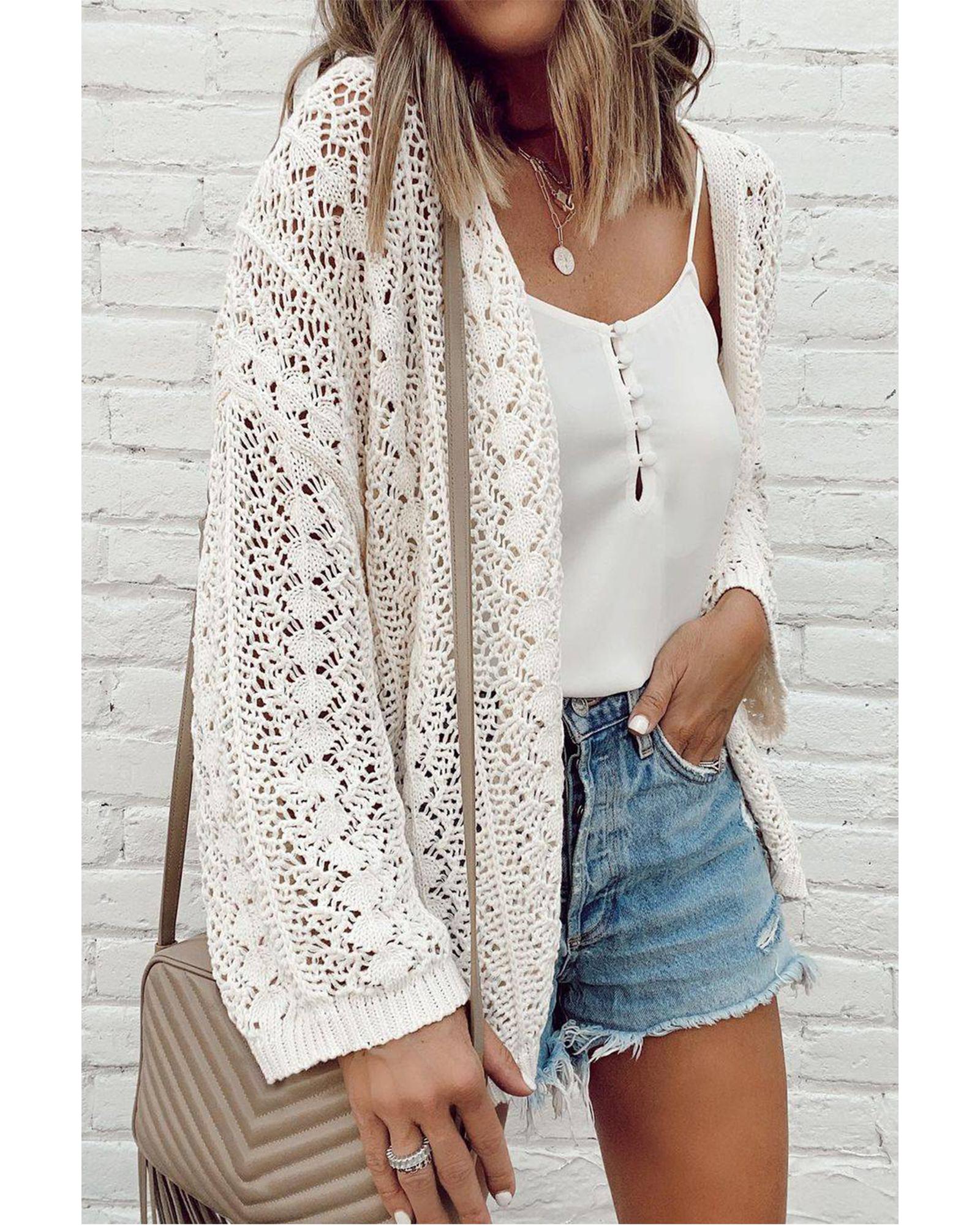 - White Stylish Hollow Out Knit Drop Shoulder Cardigan