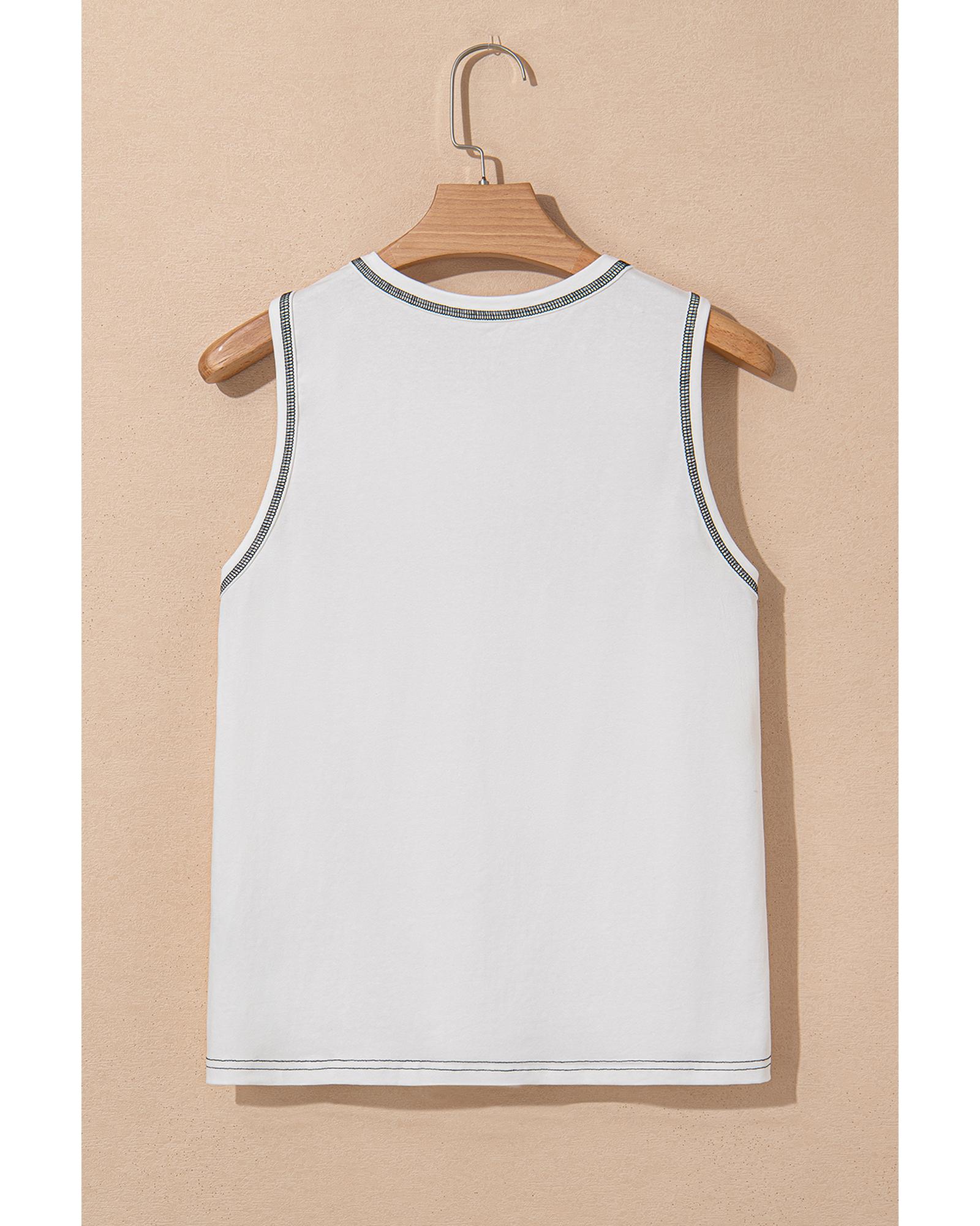 White Sweet Bow Stitching Trim Sleeveless Top – L