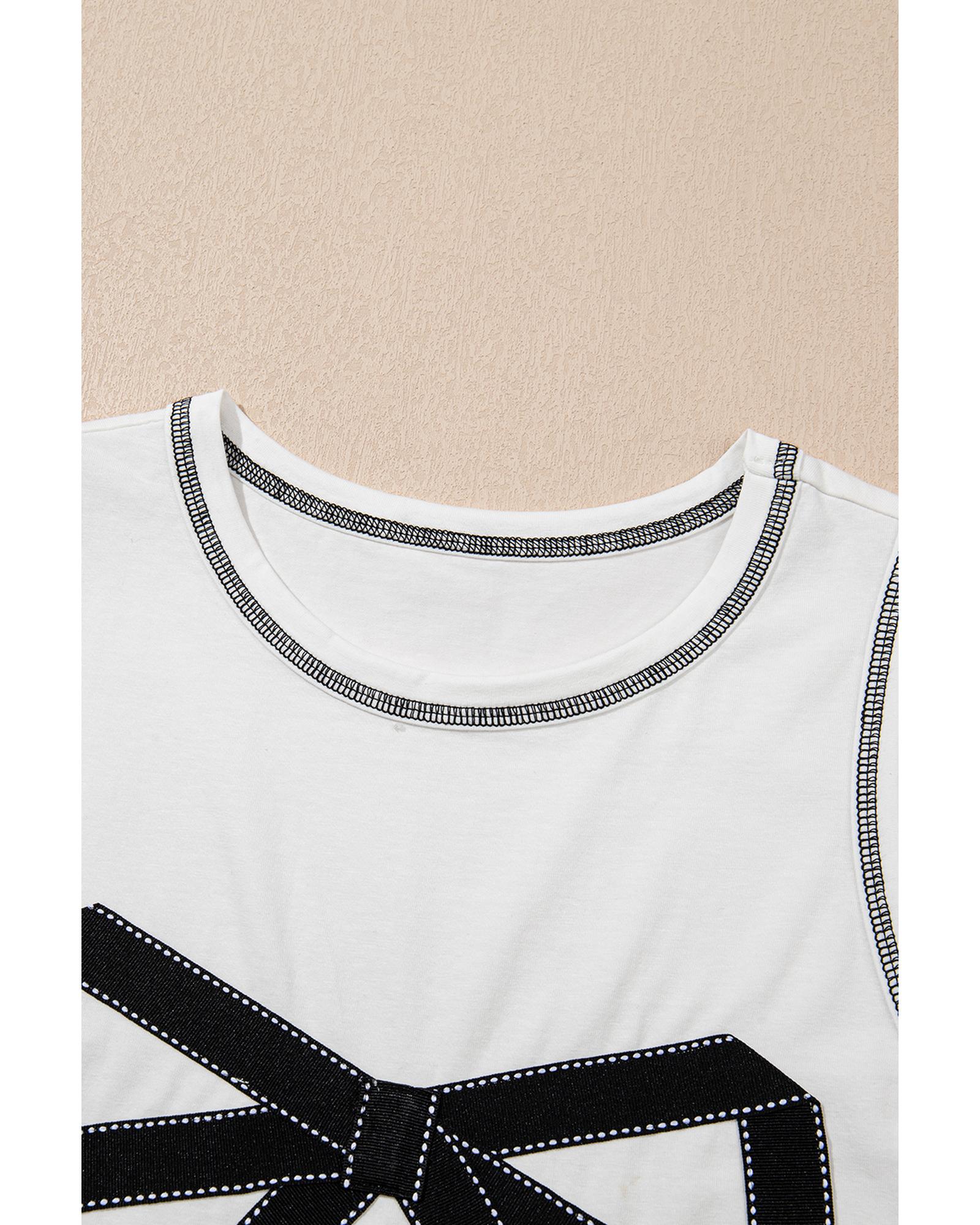 White Sweet Bow Stitching Trim Sleeveless Top – M
