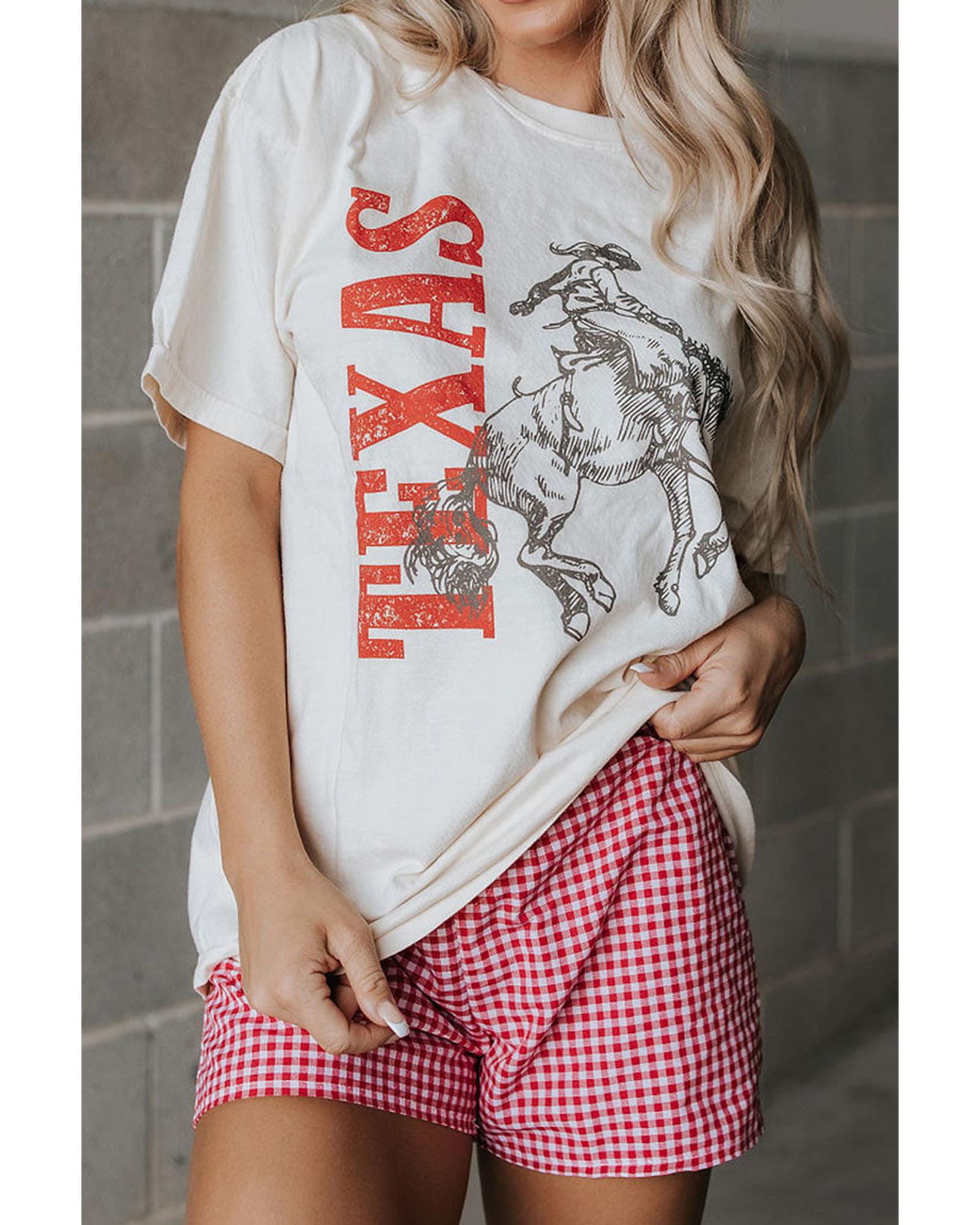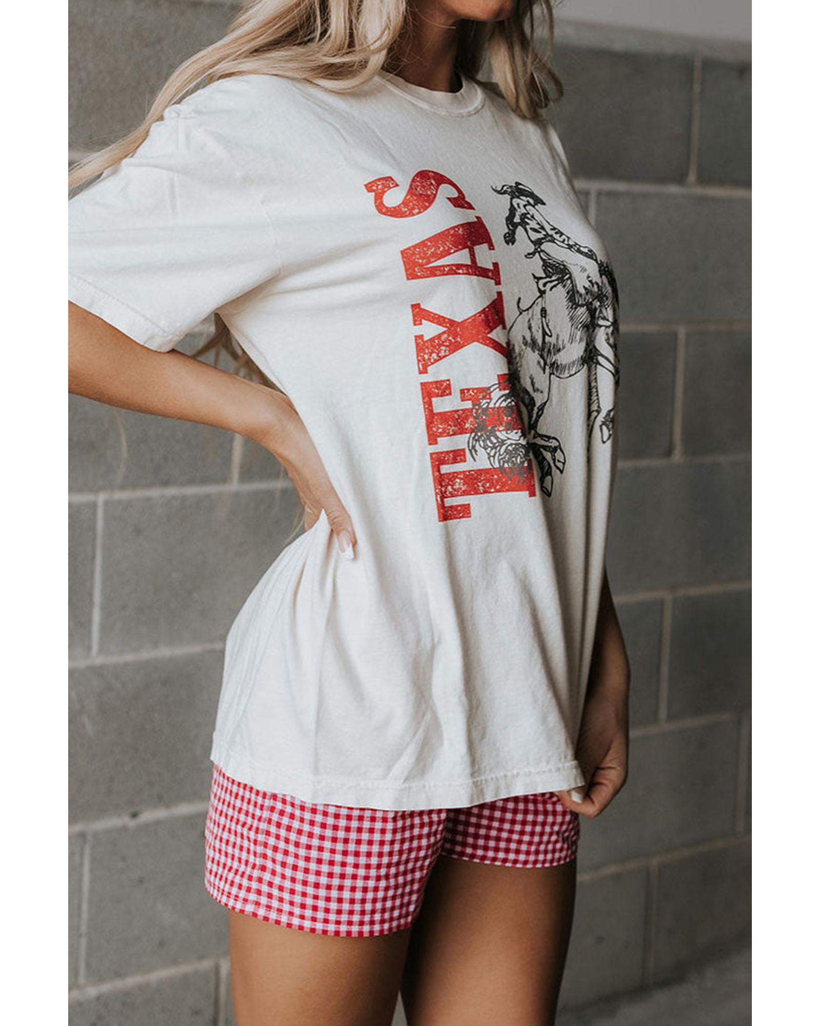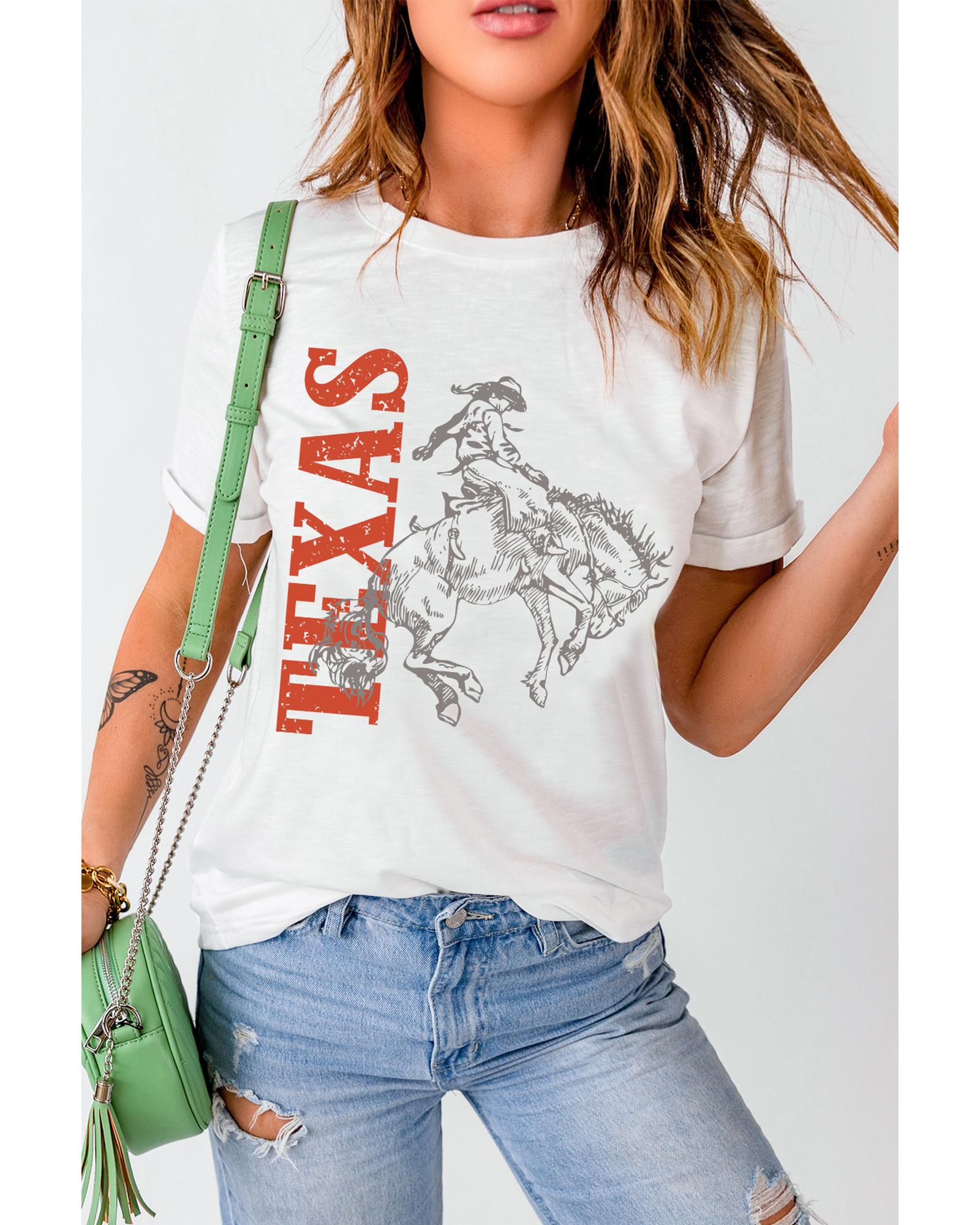 White TEXAS Cowboy Printed Western Fashion T Shirt – XL