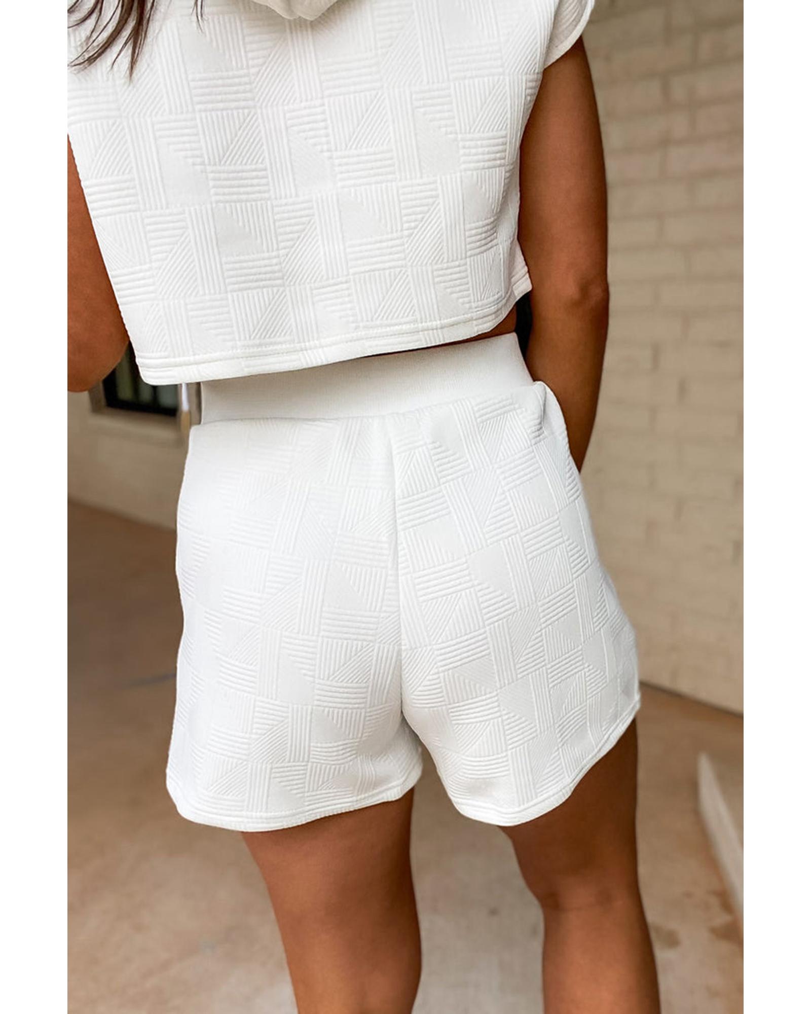 Bright White Textured Loose Fit T Shirt and Drawstring Pants Set - S