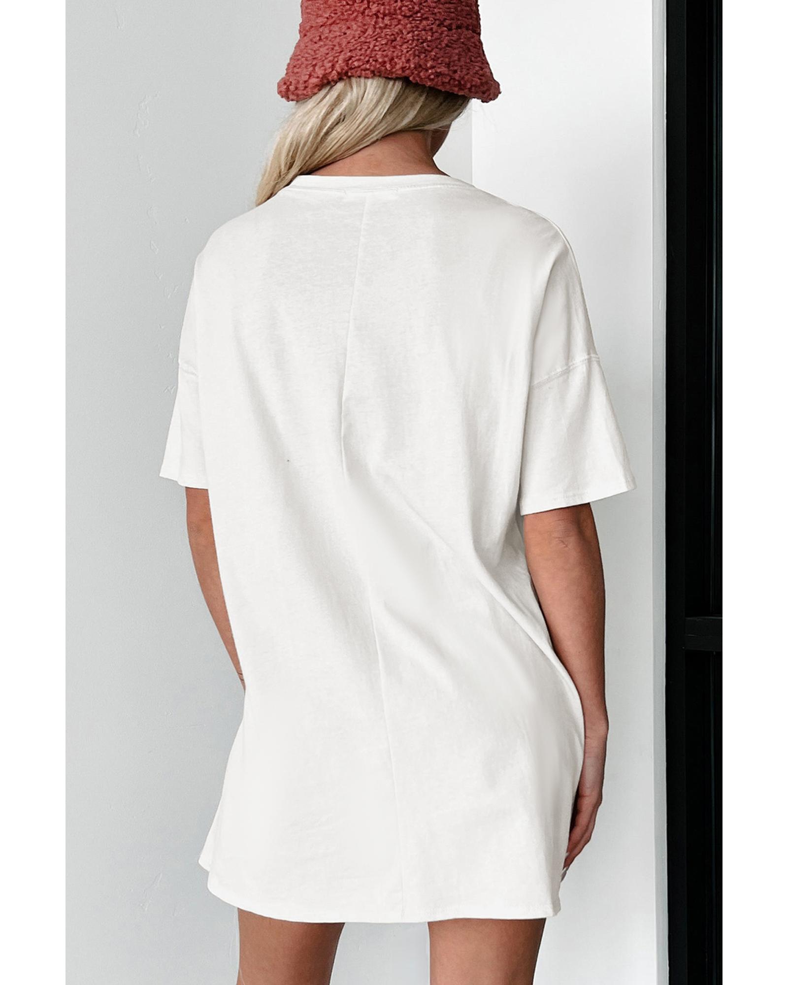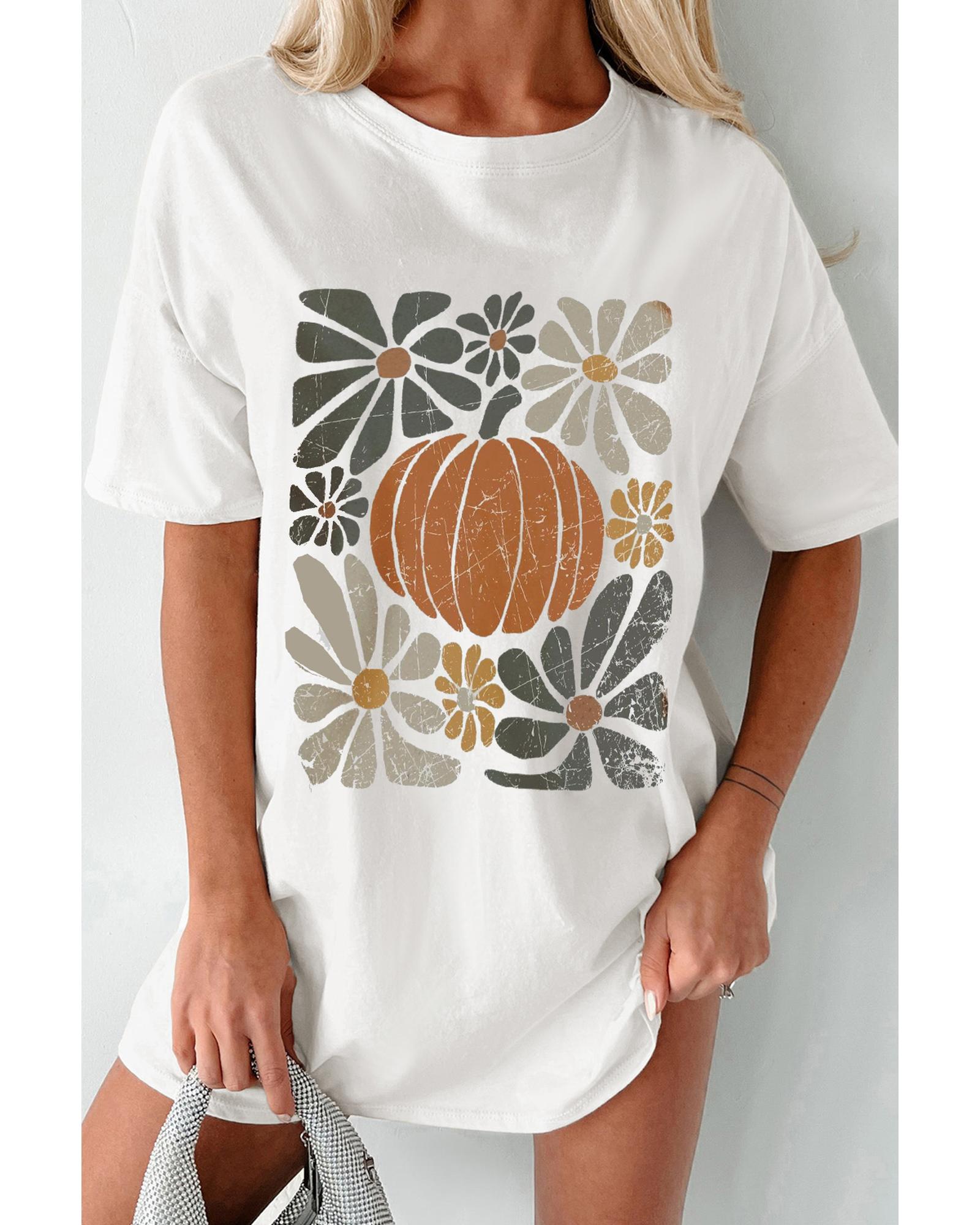 - White Thanksgiving Pumpkin Print Loose Crewneck Tunic T