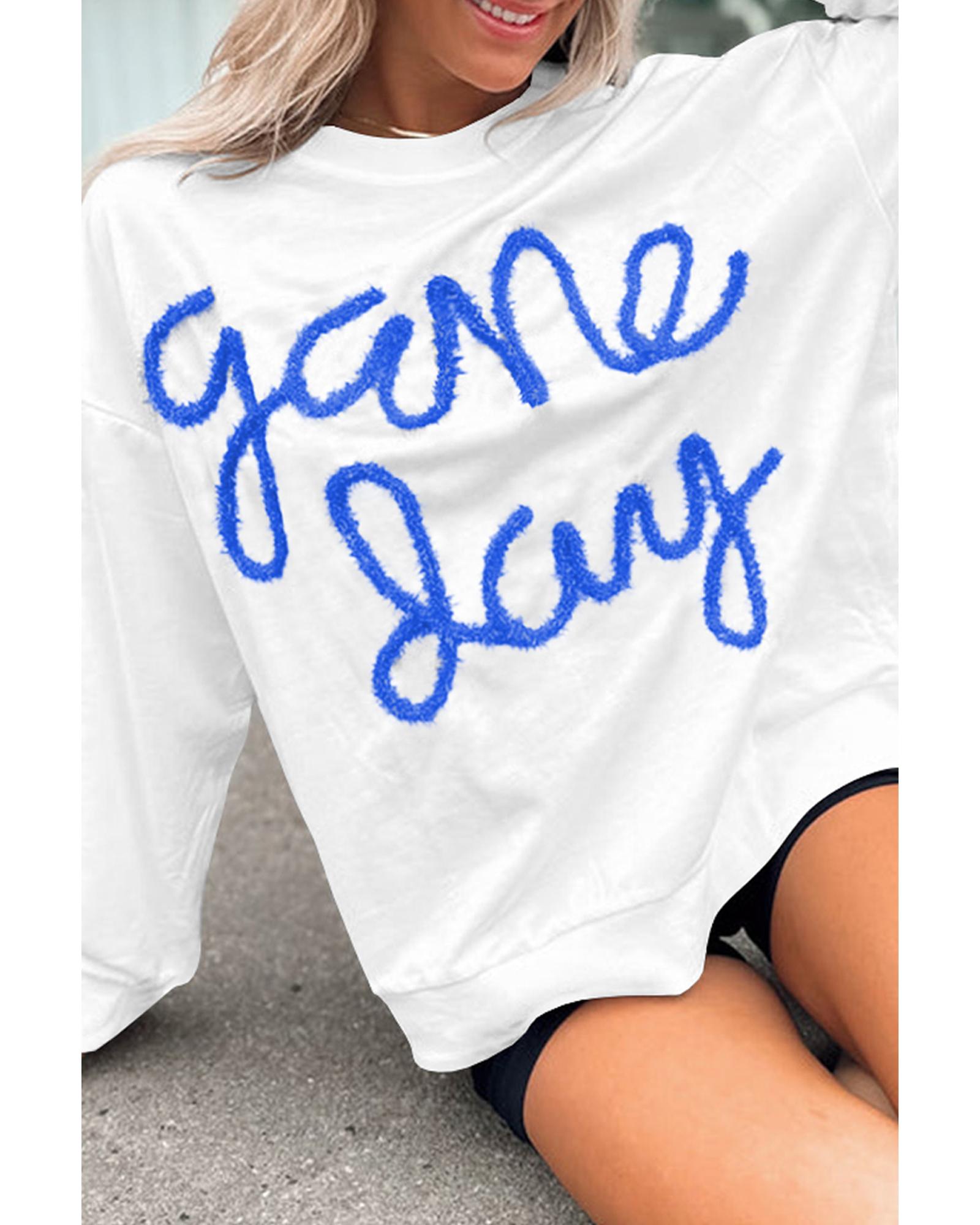 • White Tinsel Game Day Drop Shoulder Graphic Sweatshirt