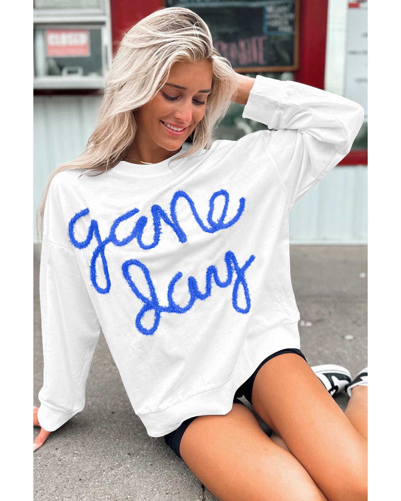 - White Tinsel Game Day Drop Shoulder Graphic Sweatshirt