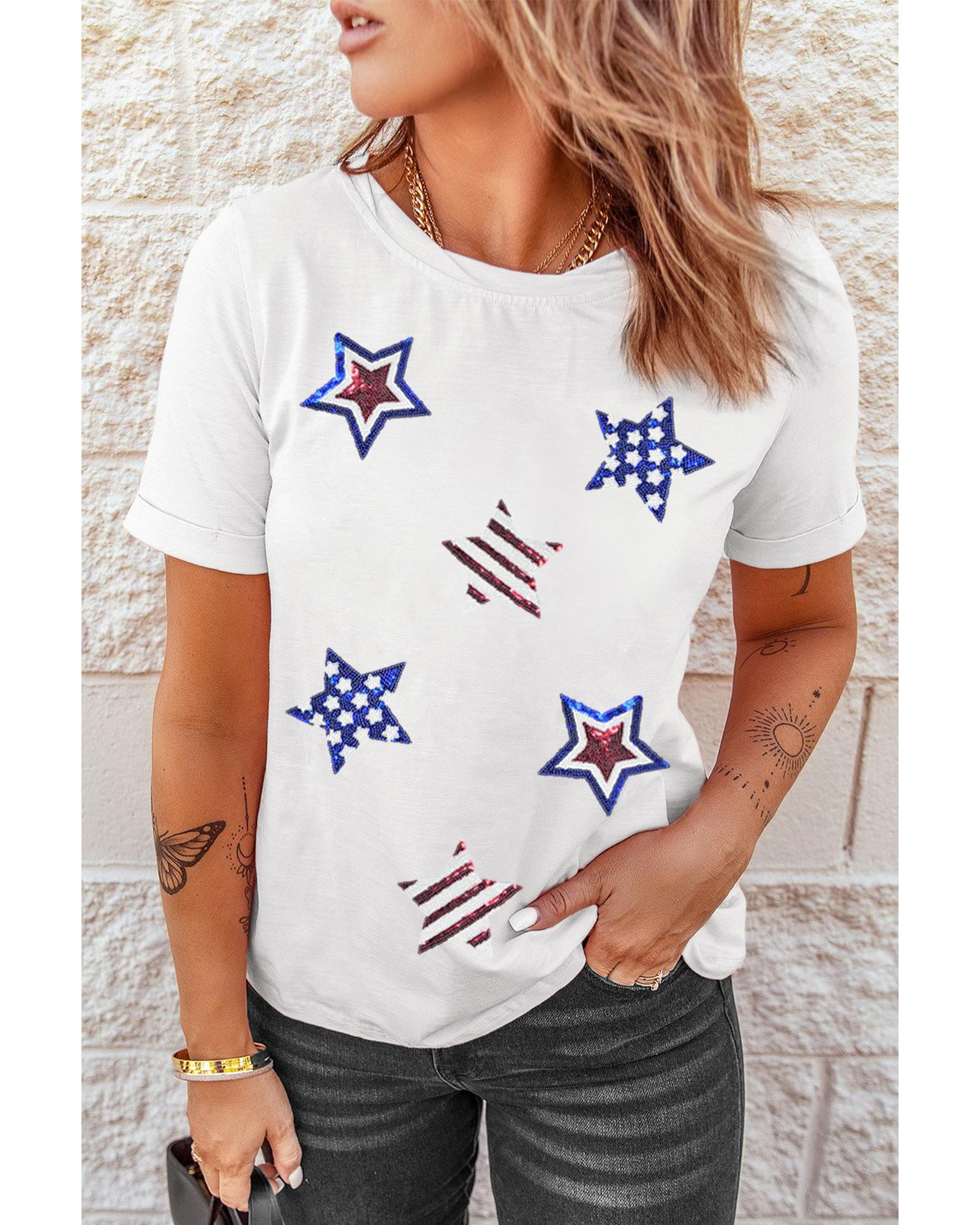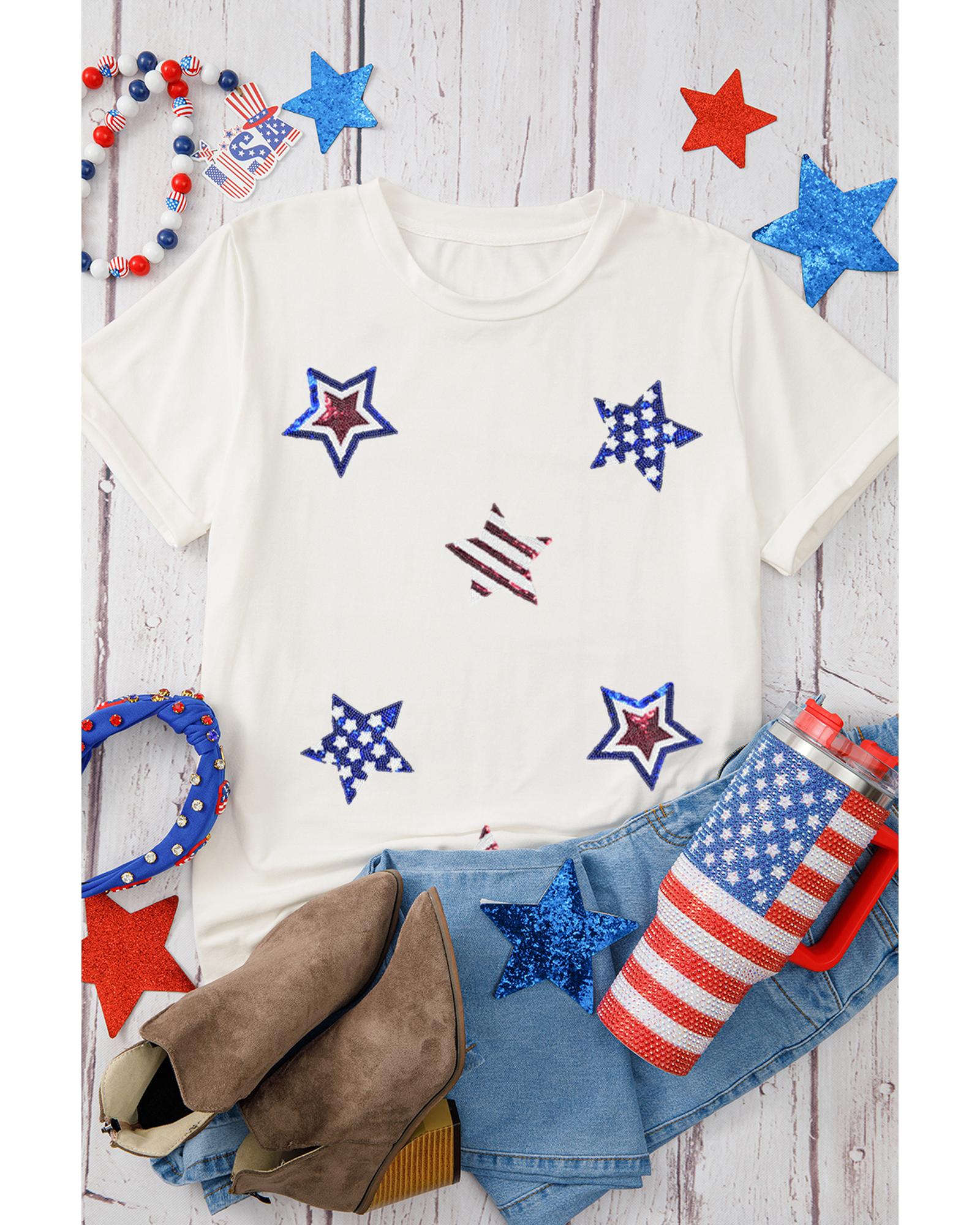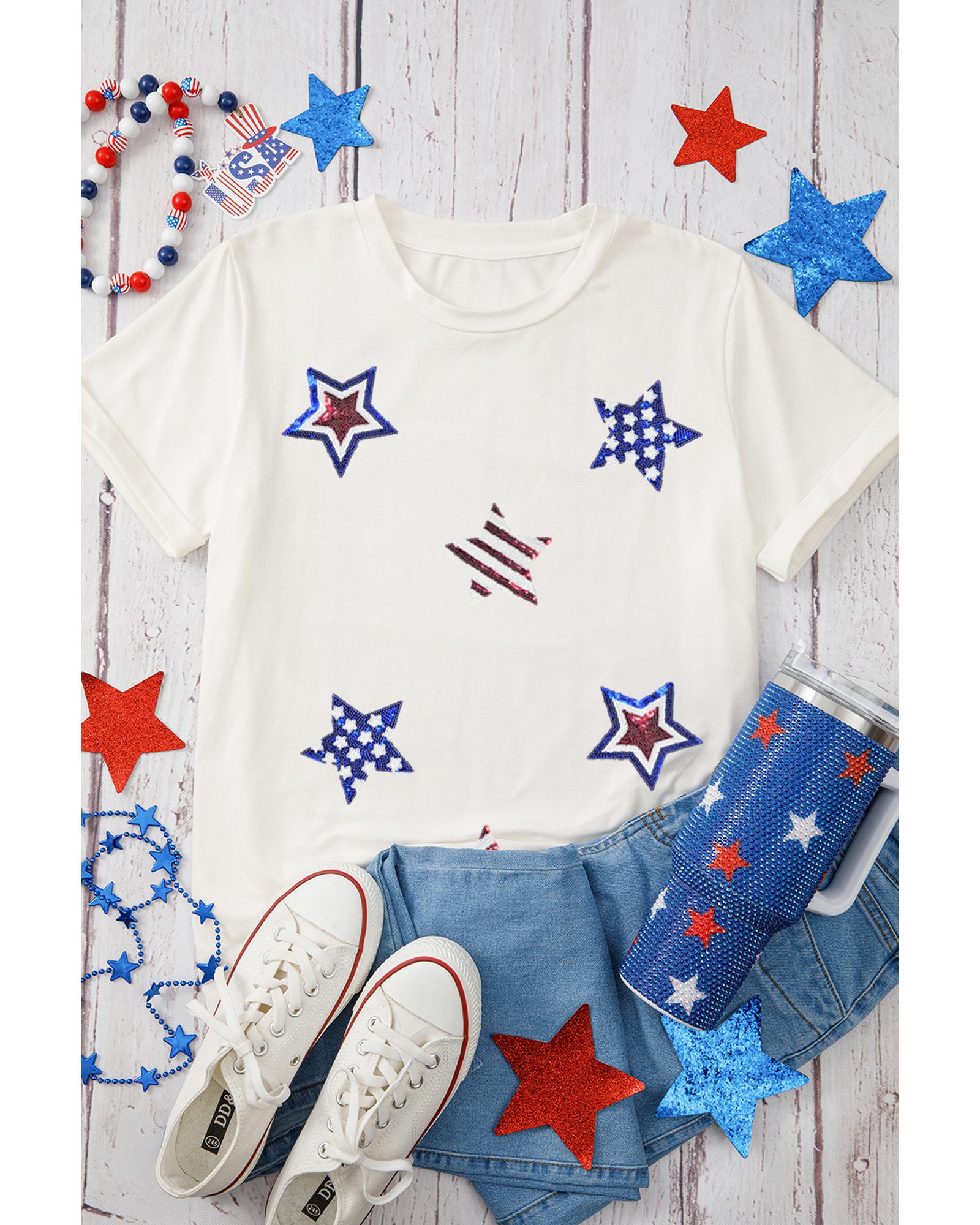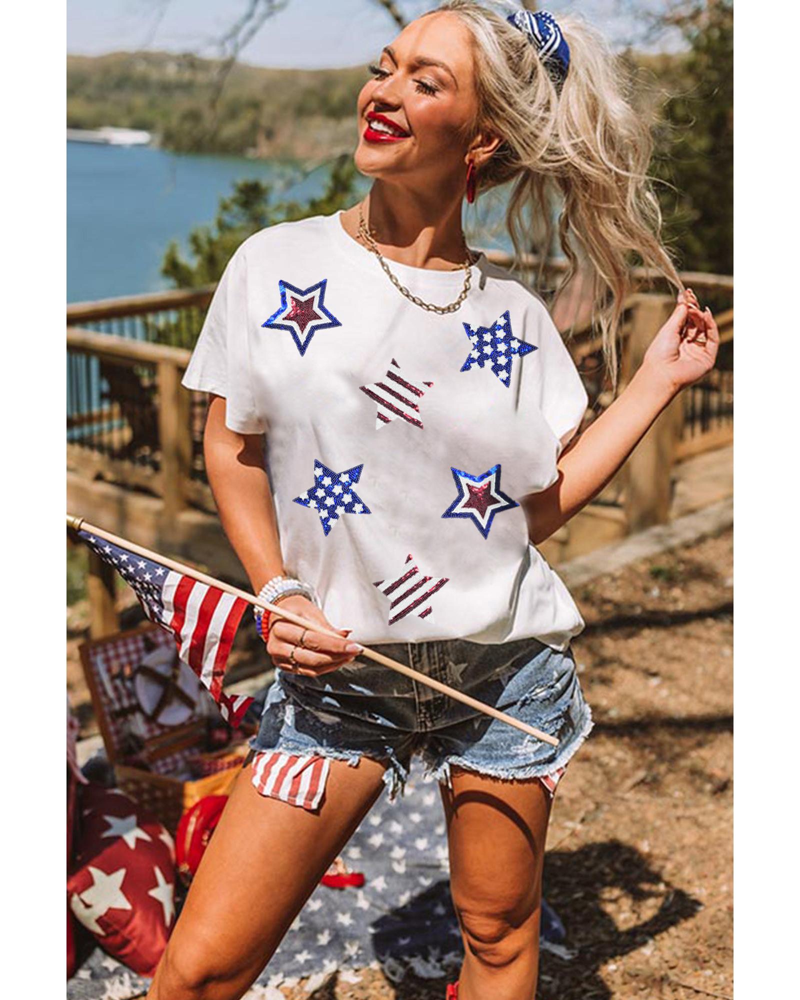 White USA Sequin Stars Patched Casual T Shirt – 3XL