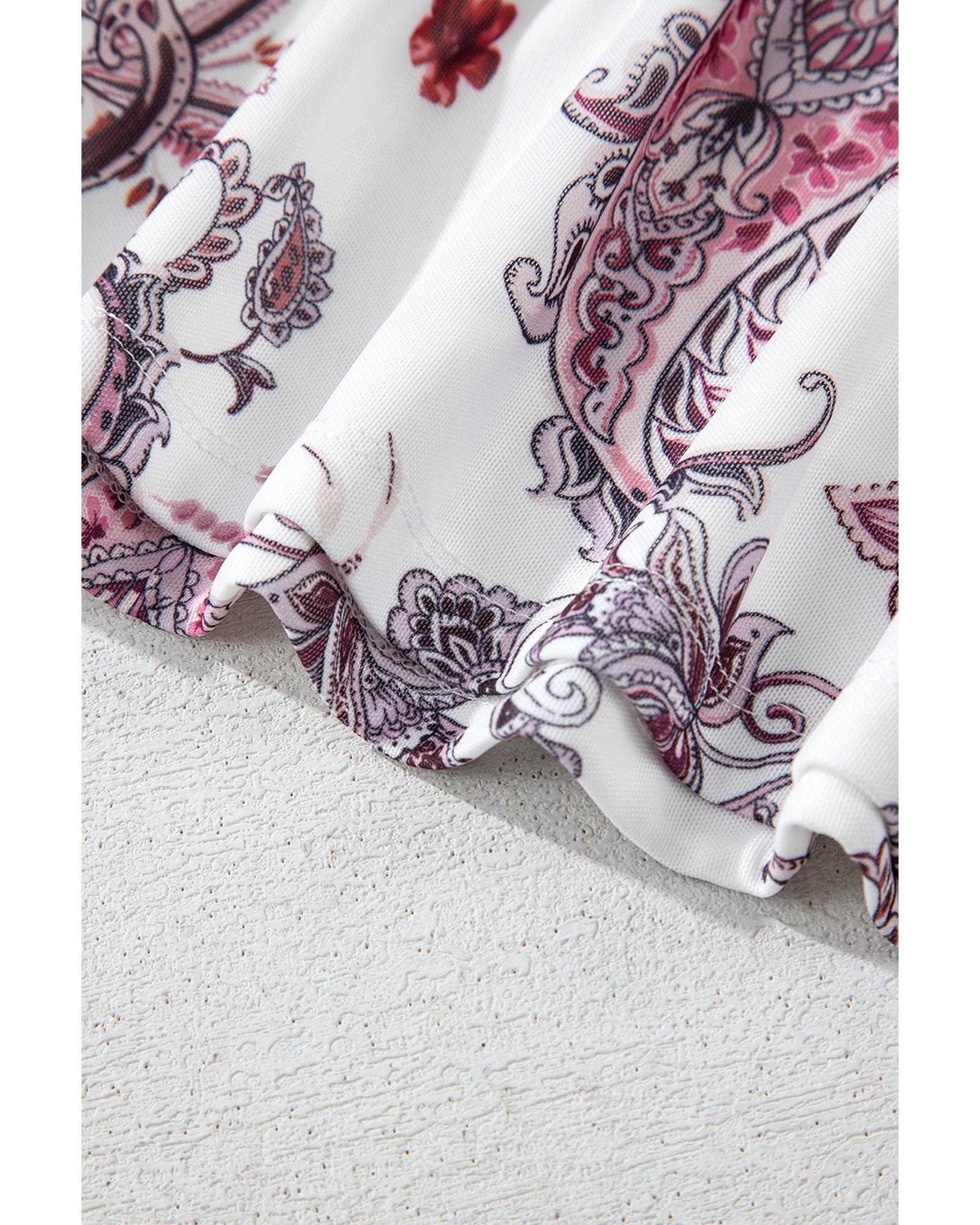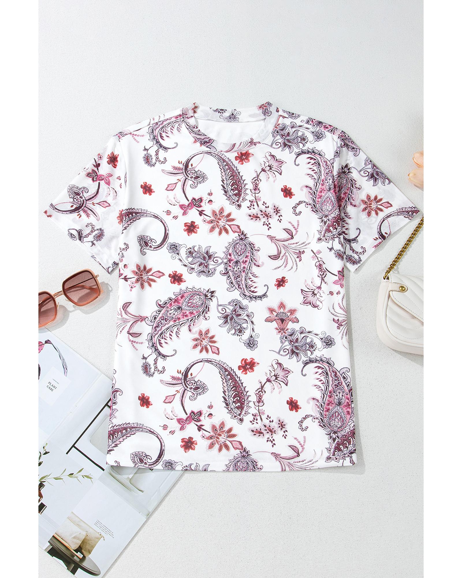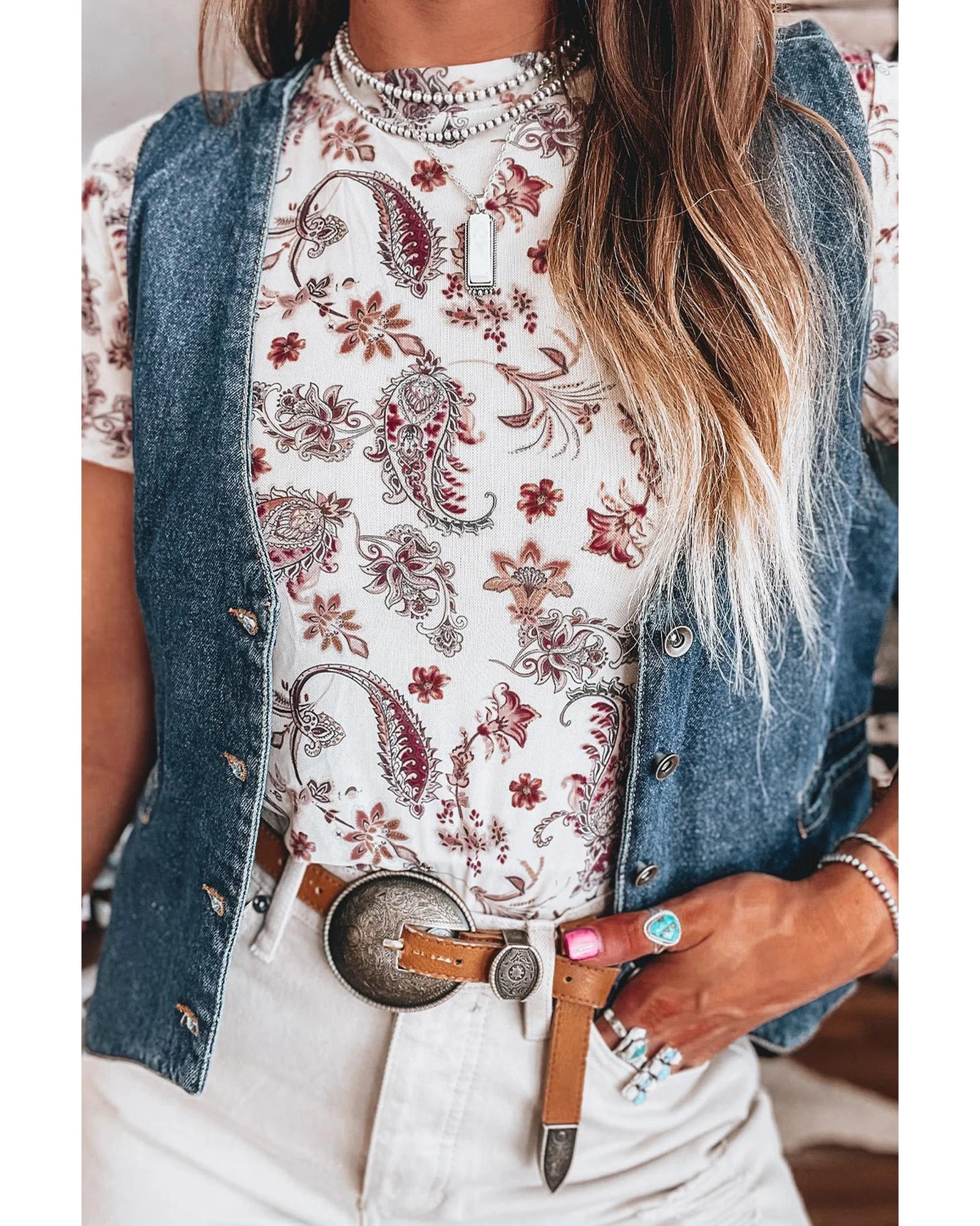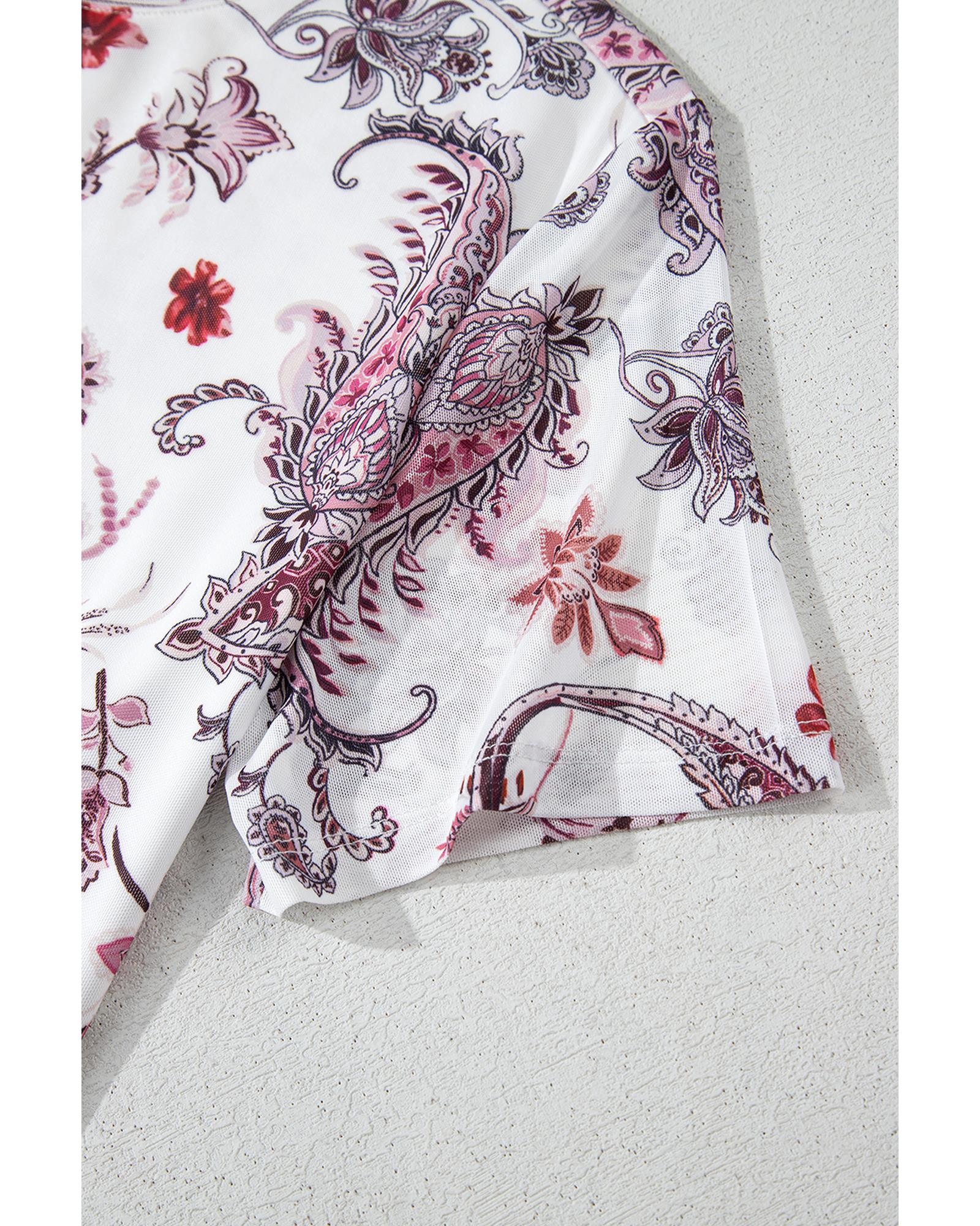 White Vintage Paisley Mock Neck T Shirt – L