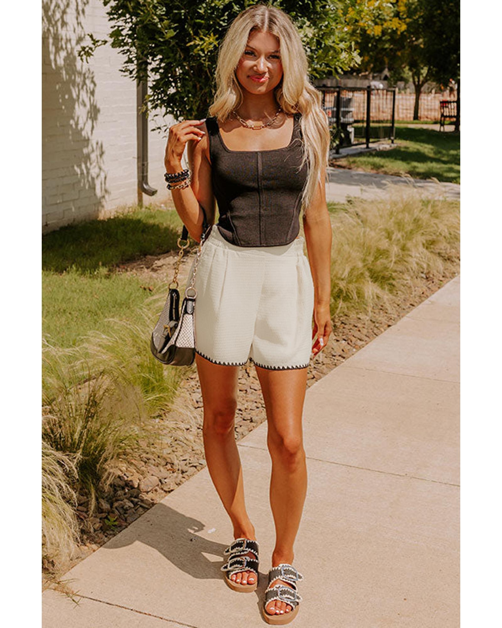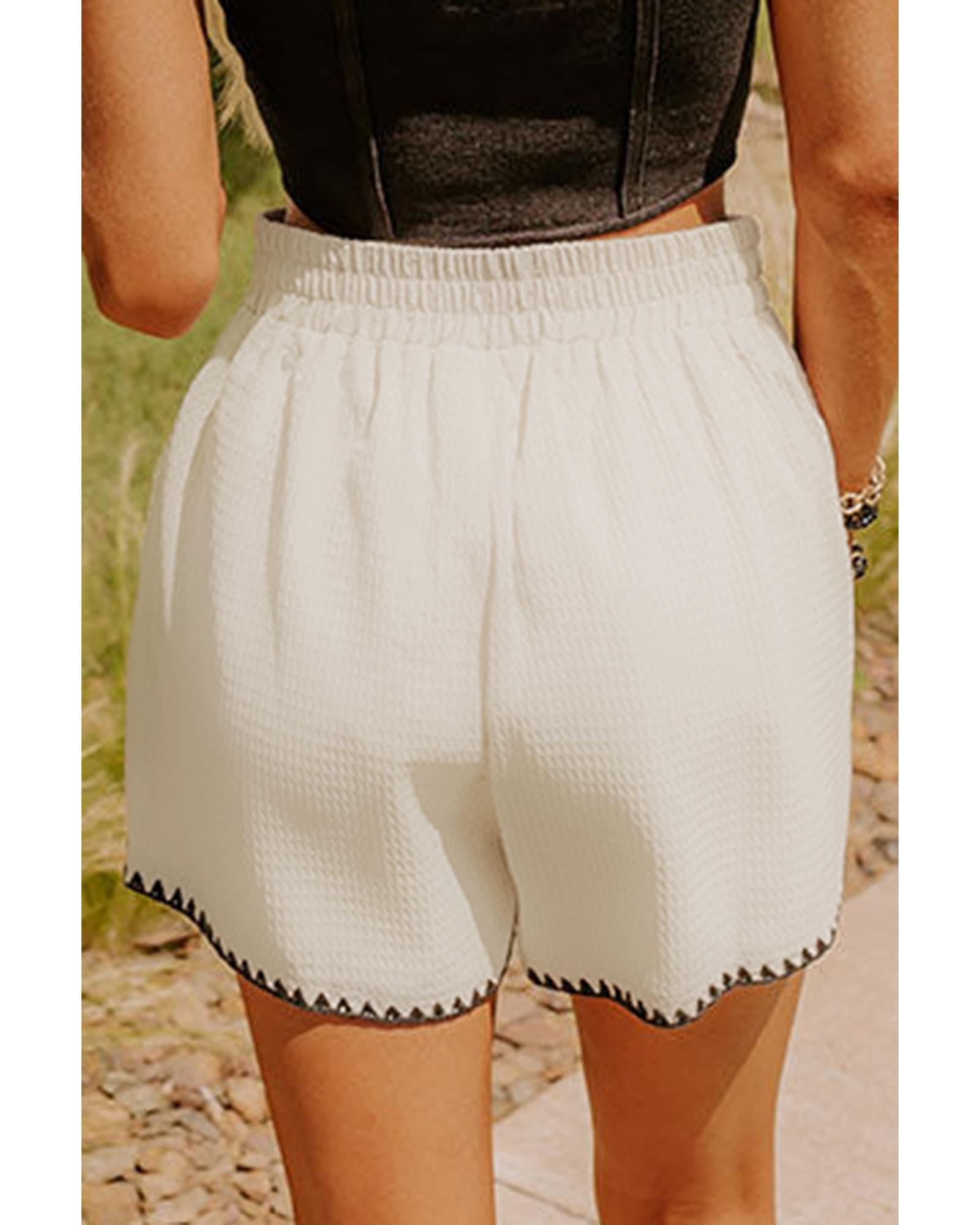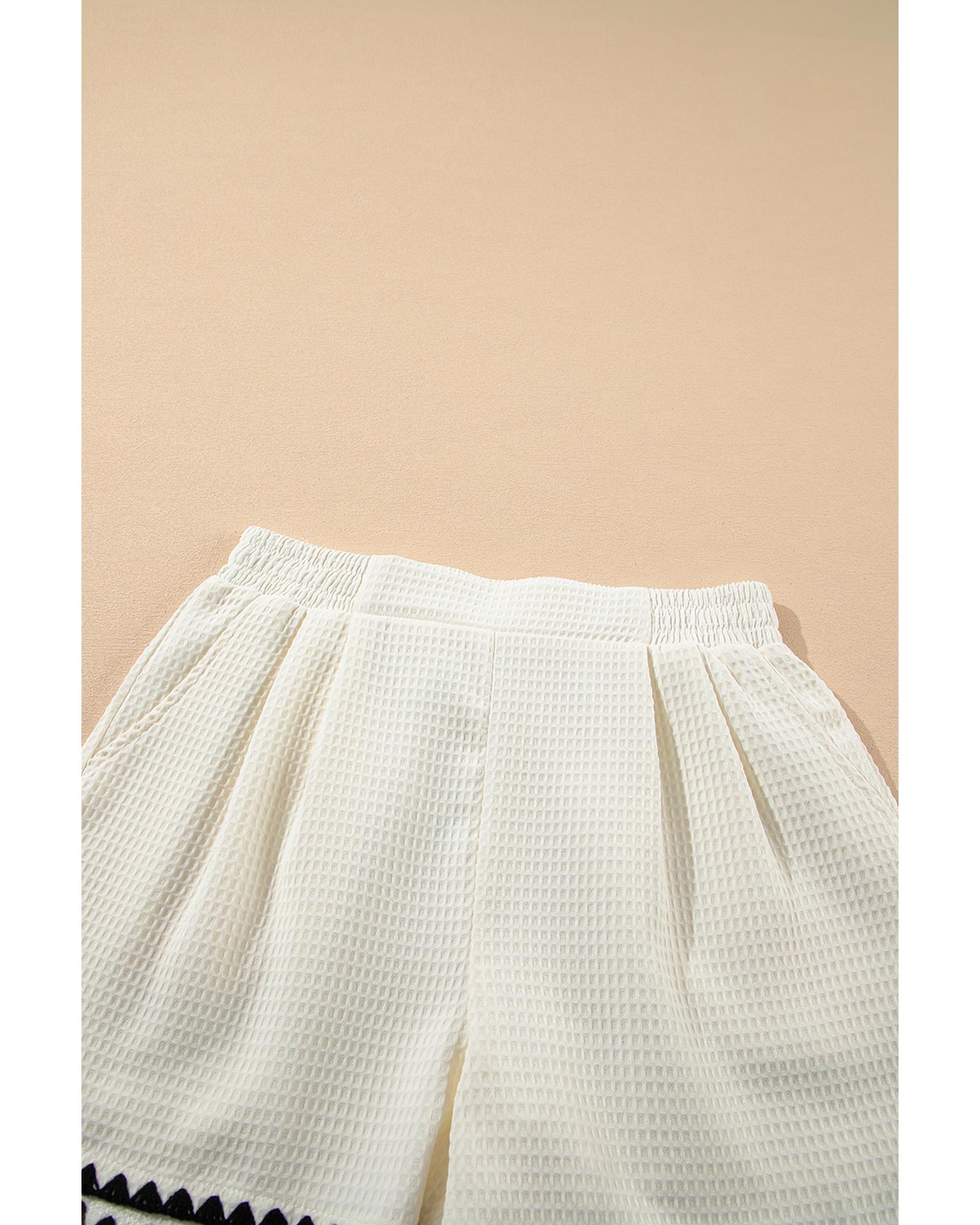 White Waffle Texture Contrast Ricrac Hemline Casual Shorts – S