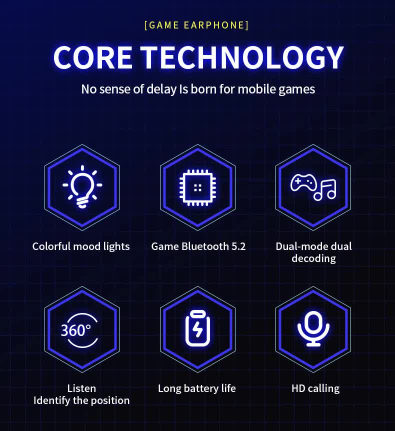Elevate your gaming experience with these cutting-edge True Wireless Gaming Earbuds. Engineered for esports enthusiasts and mobile gamers, these earphones deliver low-latency audio (40ms), exceptional stereo sound, and long-lasting battery life, allowing you to stay focused and immersed in the game.