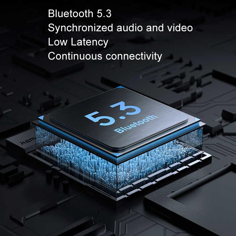 • Bluetooth 5.3 for audio and video synchronization with low latency