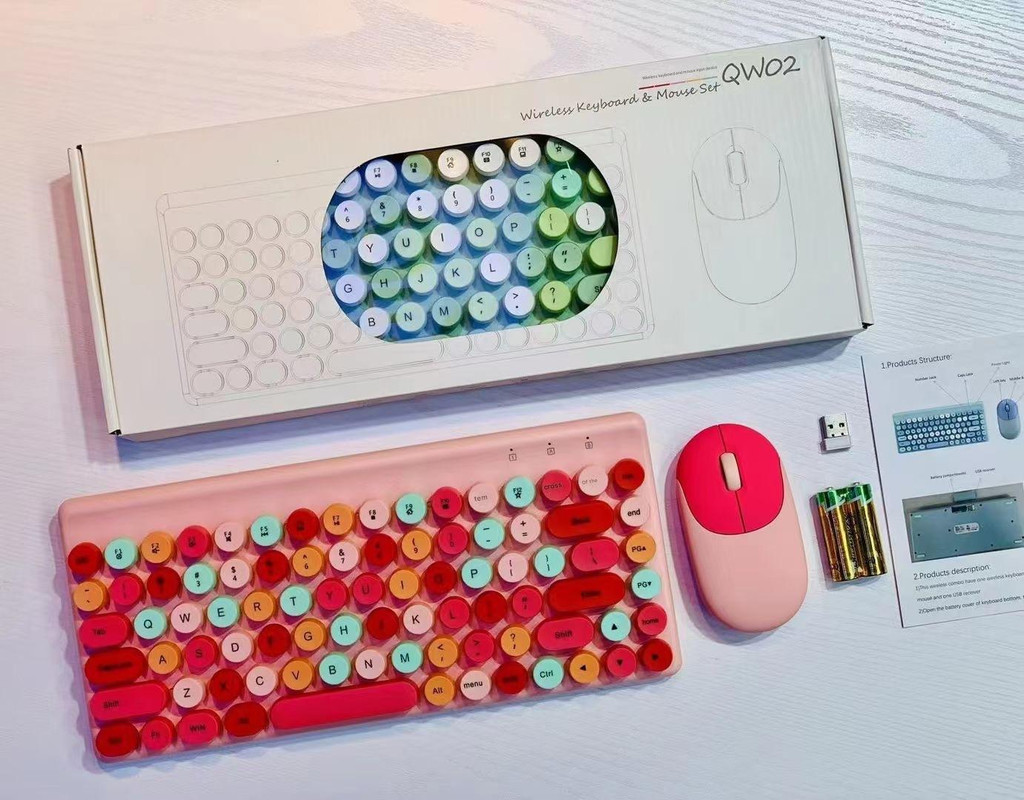 Wireless Keyboard & Mouse Combo – Retro Round Keycaps, 2.4GHz Ergonomic Design(pink)