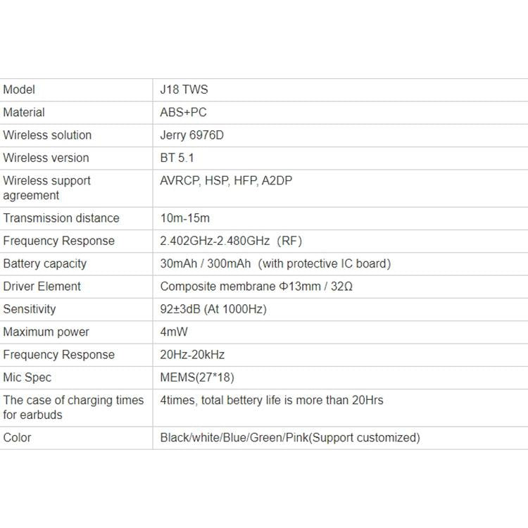 • 1 x TG J18 Tws Wireless Binaural Bluetooth 5.0 Earphone With Charging Box
