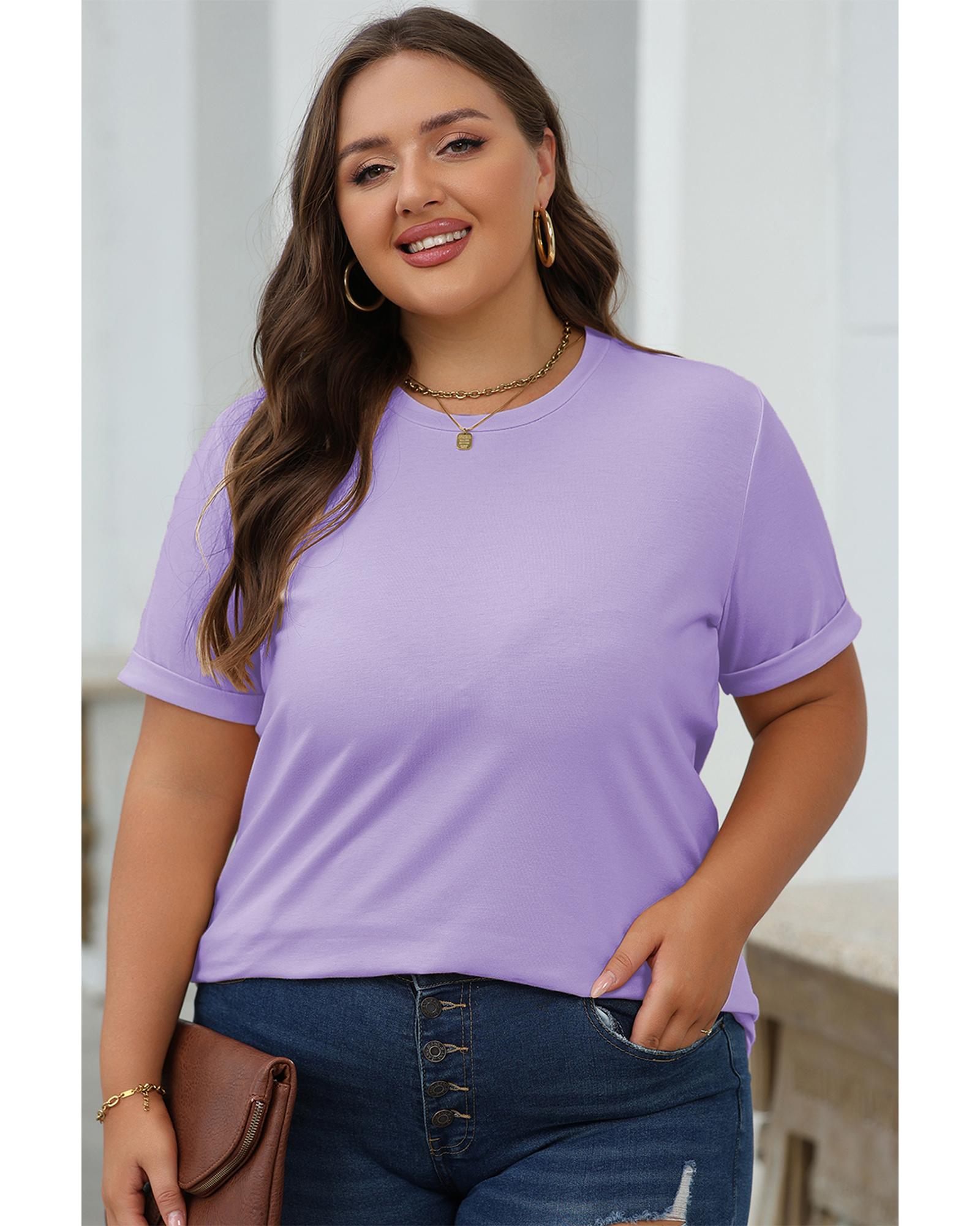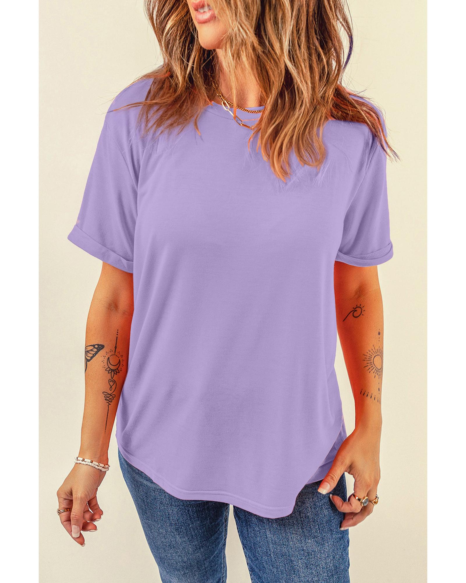 Wisteria Casual Plain Crew Neck Tee – M