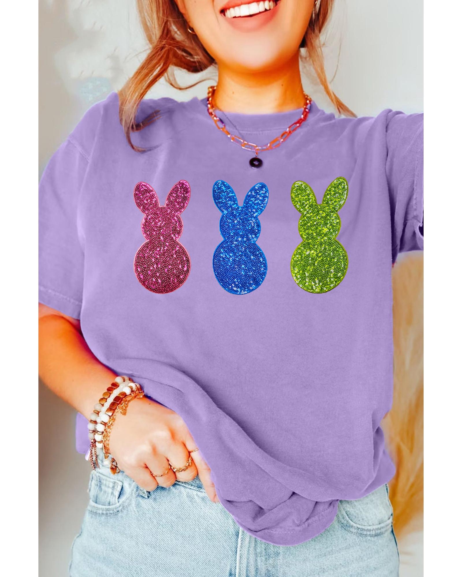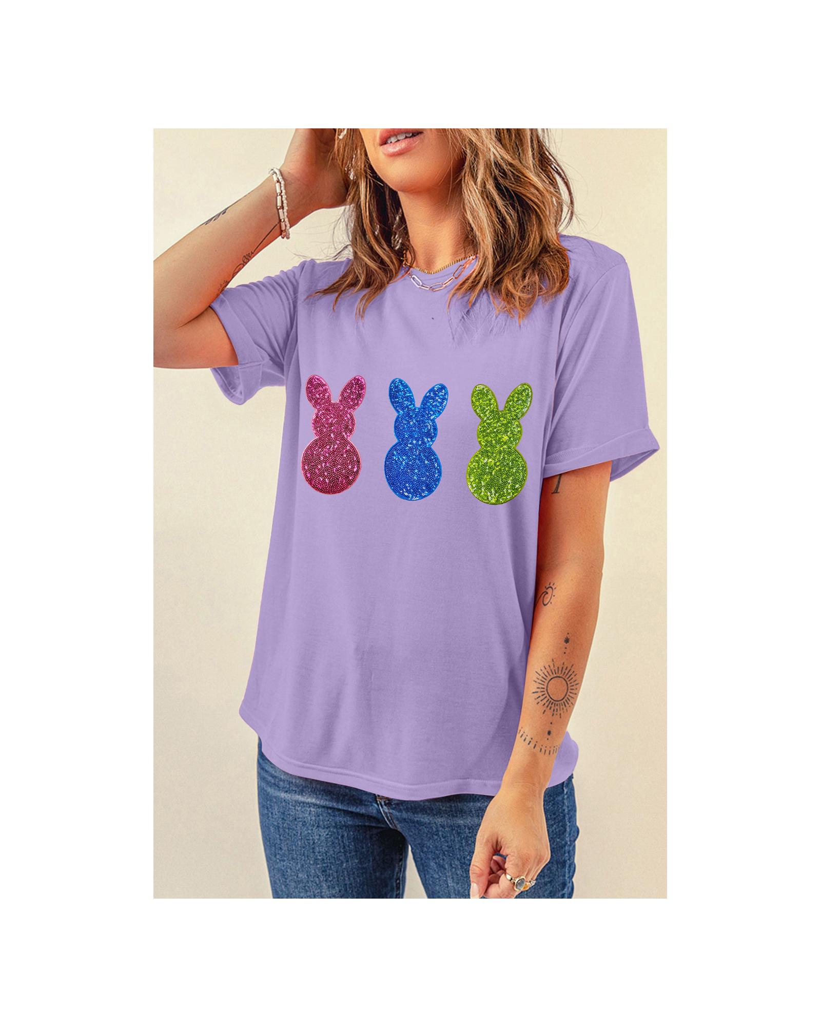 Wisteria Easter Shiny Bunny Graphic Crewneck T Shirt – L