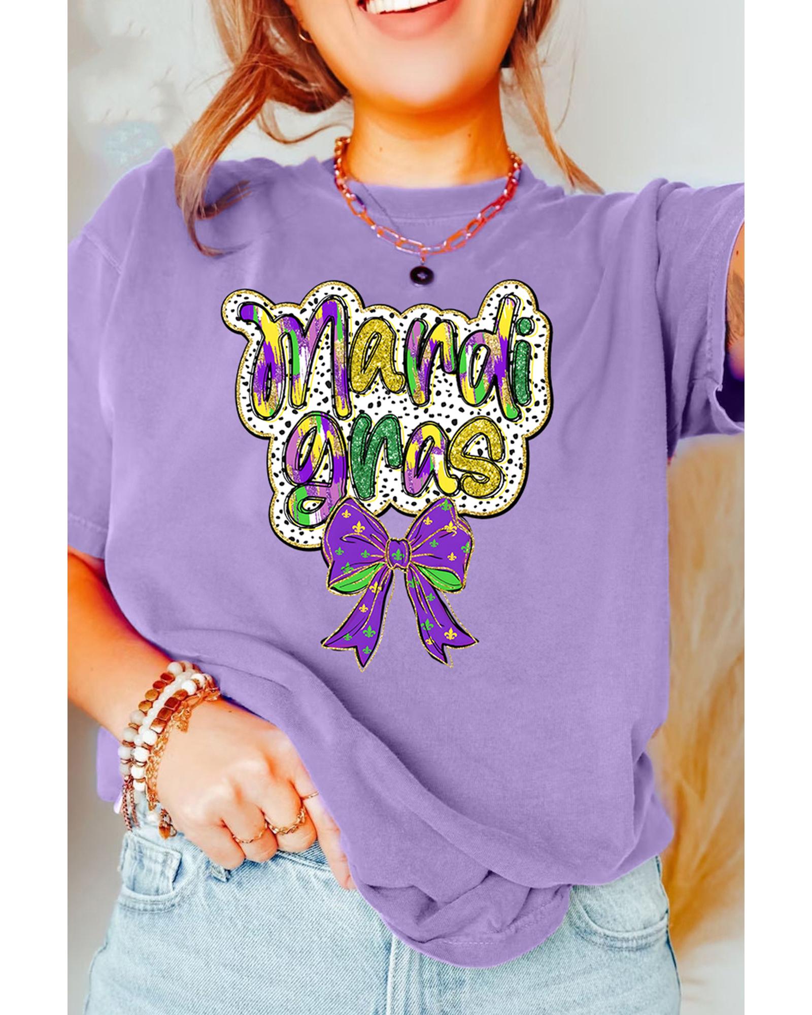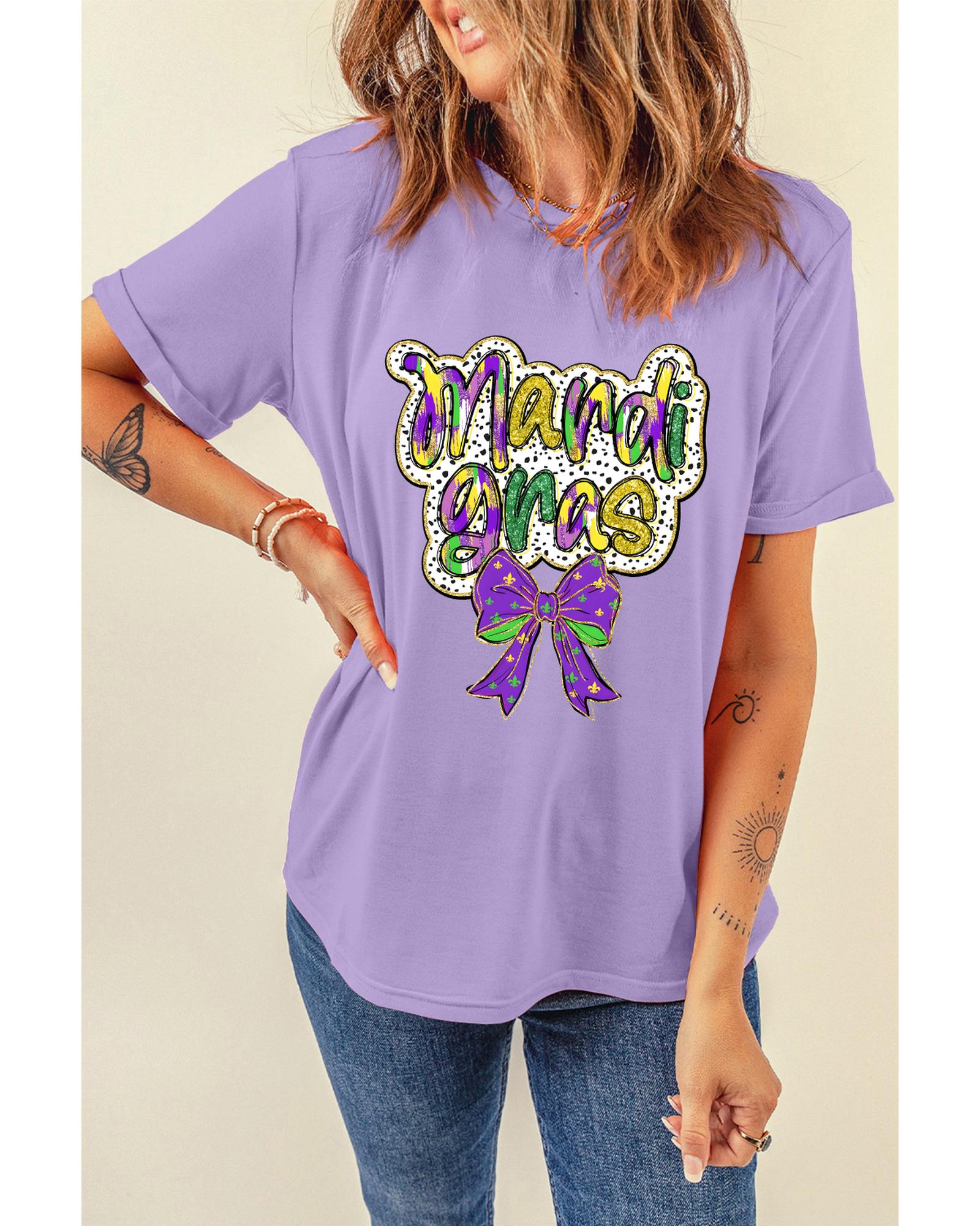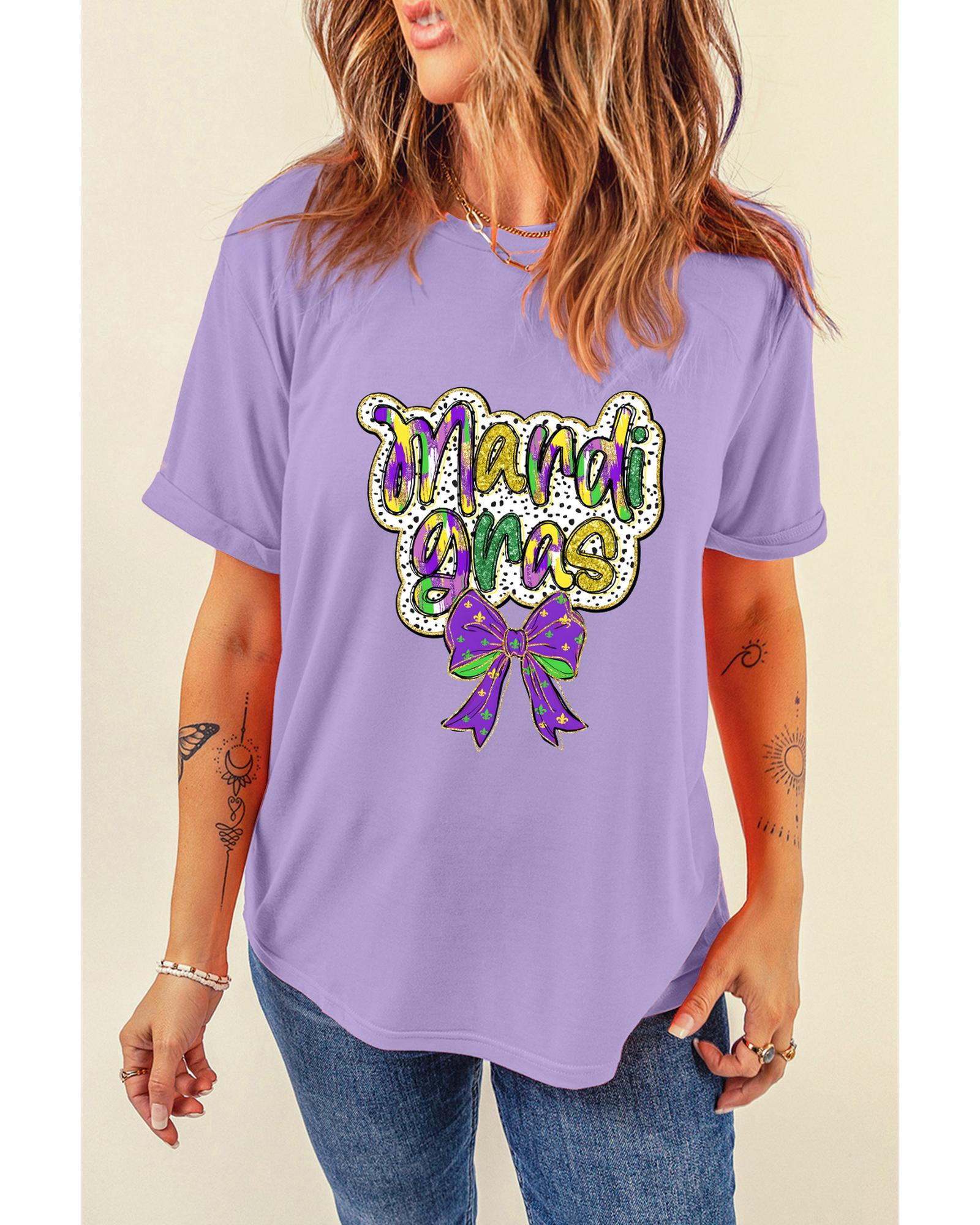 Wisteria mardi gras Bow Printed Crewneck Holiday T Shirt – L