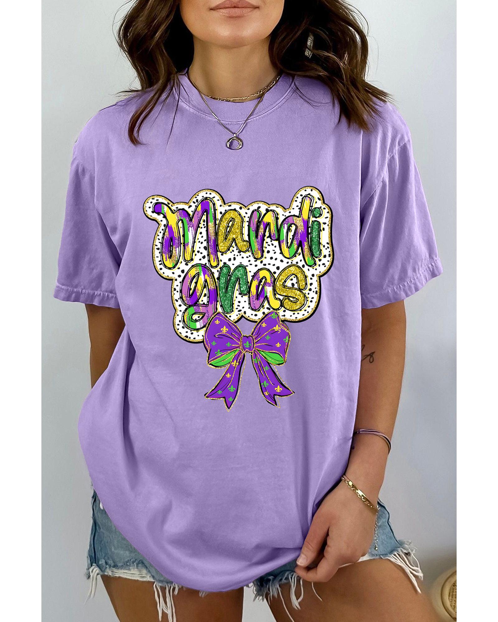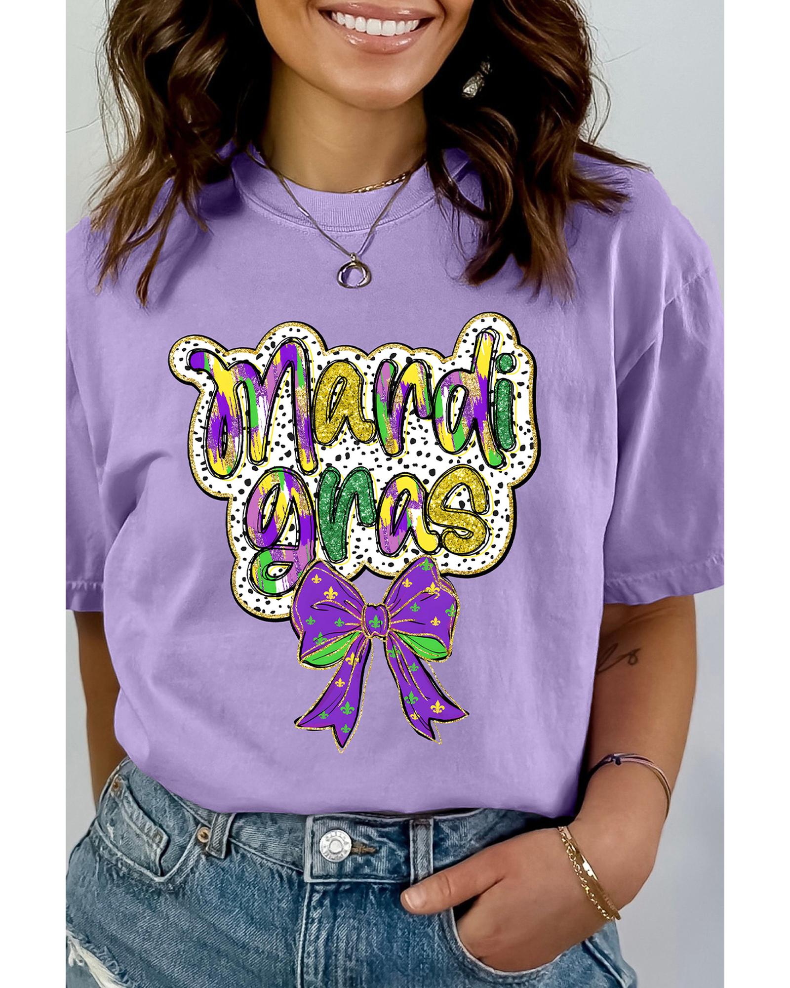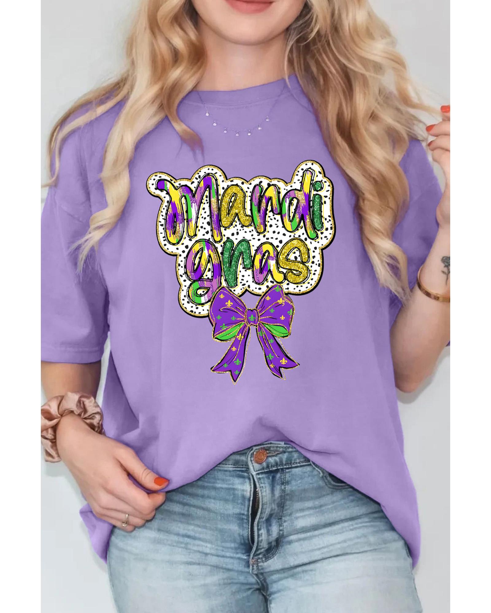 Wisteria mardi gras Bow Printed Crewneck Holiday T Shirt – L